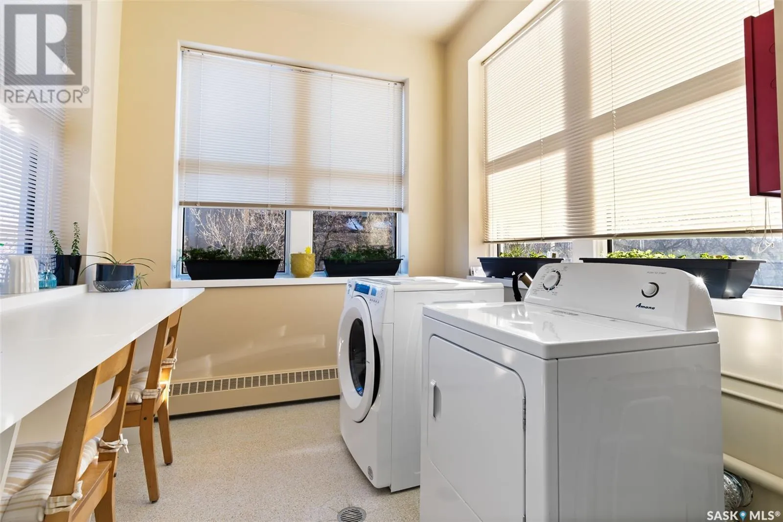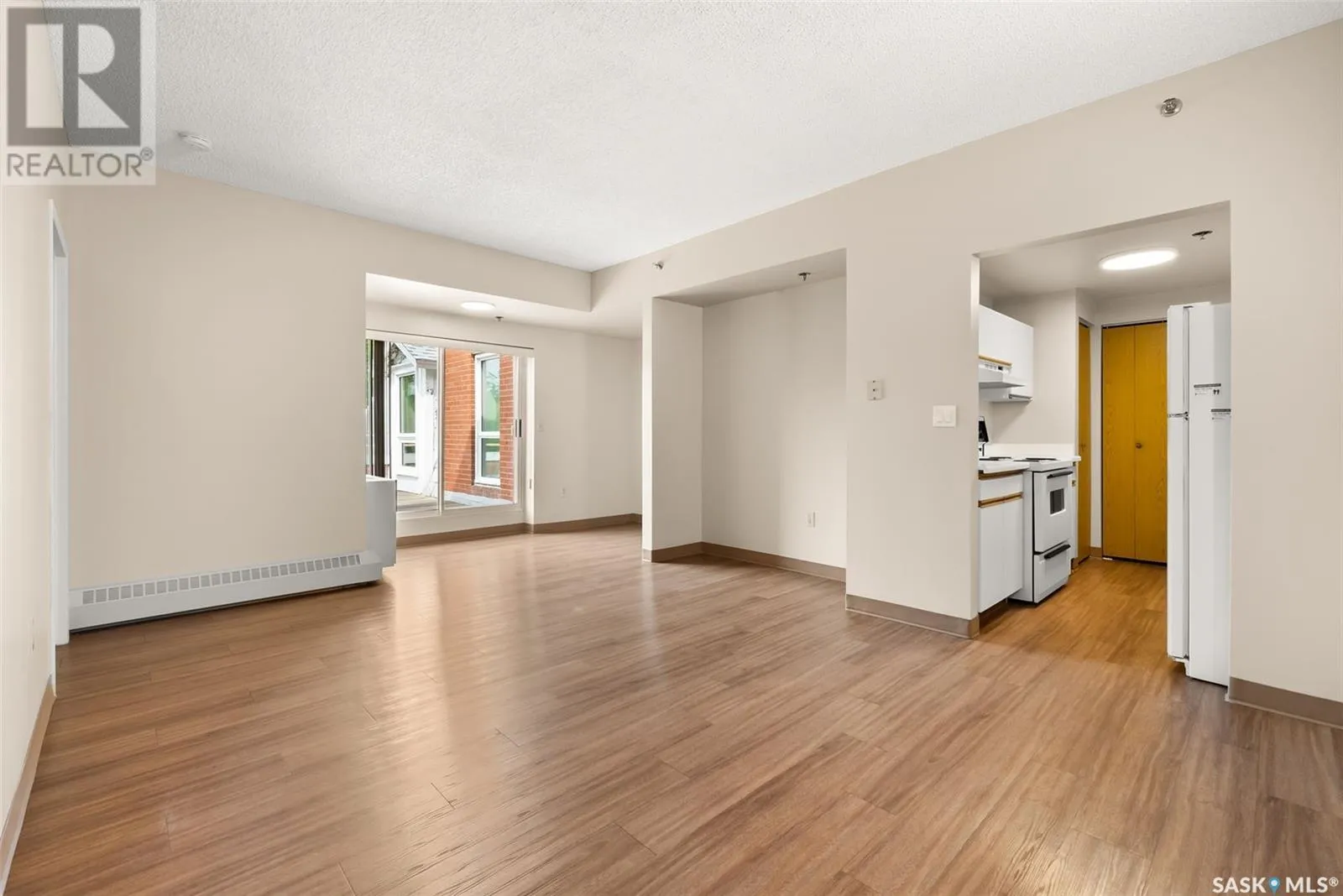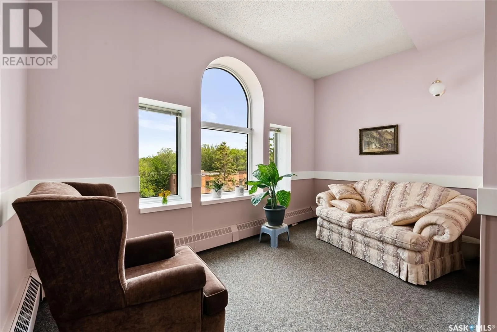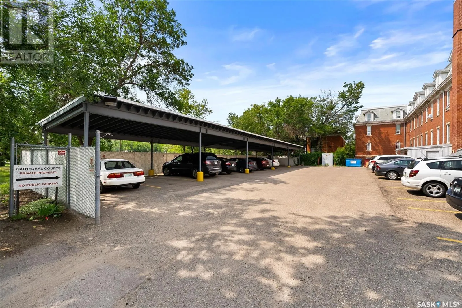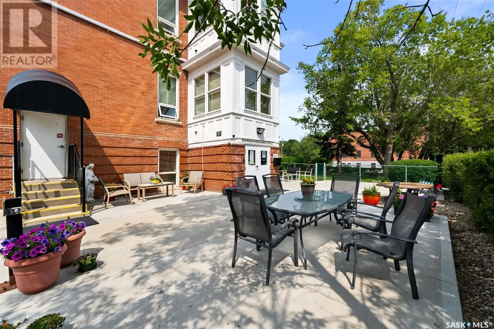 Welcome to Cathedral Courts, a charming and affordable 55+ condo community located in the heart of vibrant Cathedral Village. This beautifully preserved historical building is surrounded by everything you need just steps from your door: locally loved restaurants, cozy coffee shops, bakeries, a full service grocery store, clothing boutiques, and the General Hospital. The Cathedral neighbourhood offers a walkable lifestyle in a community full of character and charm. Inside Cathedral Courts features a welcoming lobby and a host of thoughtfully designed shared spaces. Residents enjoy access to a bright and spacious laundry room, a library and puzzle room, an exercise space, a social lounge with full kitchen, a chapel, and a convenient guest suite for visitors. Outdoor enthusiasts will appreciate the well kept rooftop patio and inviting main floor patio areas, perfect for enjoying fresh air and sunshine with friends. This unit itself offers a neutral, clean decor with large windows that flood the space with natural light. The kitchen includes appliances and a functional layout, while the bedroom feels cozy and comfortable. A bright and clean 4 piece bathroom includes generous storage space. Cathedral Courts offers exceptional value in a secure, well managed building with numerous amenities to support an active and social lifestyle. Condo fees include: heat, water, sewer, garbage, lawn care, snow removal, reserve fund contributions, building insurance, and common area maintenance. The building is fully wheelchair accessible and includes an elevator for added convenience. If youâre seeking comfort, community, and walkable convenience in a sought after Regina neighbourhood, this could be the perfect place to call home. (id:27476)