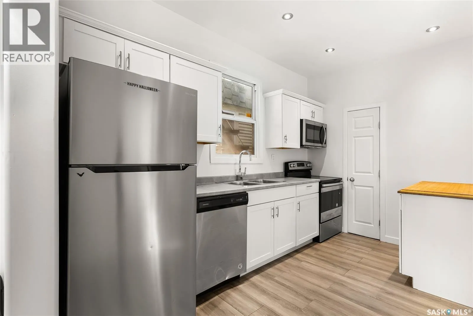 Welcome home to this beautifully renovated 4-bedroom, 3.5-bathroom, nestled in Regina's General Hospital area. Step inside this renovated property, where the open-concept design truly shines with impressive tall ceilings on the main floor, creating an expansive, airy, and effortlessly flowing atmosphere with modern living. Kitchen offers stainless steel appliances and a pantry. Large primary bedroom, features a walk-in closet and a 3-piece ensuite. Second floor main bathroom offers a renovated 4 piece bathroom and lots of storage. Discover a staircase leading to an incredible 3rd floor bonus space. Imagine a cozy reading nook, a productive home office, or a vibrant play area â the possibilities are endless. You'll also have peace of mind with 100-amp electrical panel and repaired basement, featuring a permitted and engineered braced pony wall and steel beam support â ensuring this home is solid and ready for years of cherished memories. Location is everything, and this home truly delivers. You'll be just a short, easy walk to Miller and Balfour High Schools, making school runs a breeze, and mere moments from the General Hospital. Don't miss the chance to make this warm and inviting property your own! Call your agent today. NOTE: Some photos are virtually staged. (id:27476)