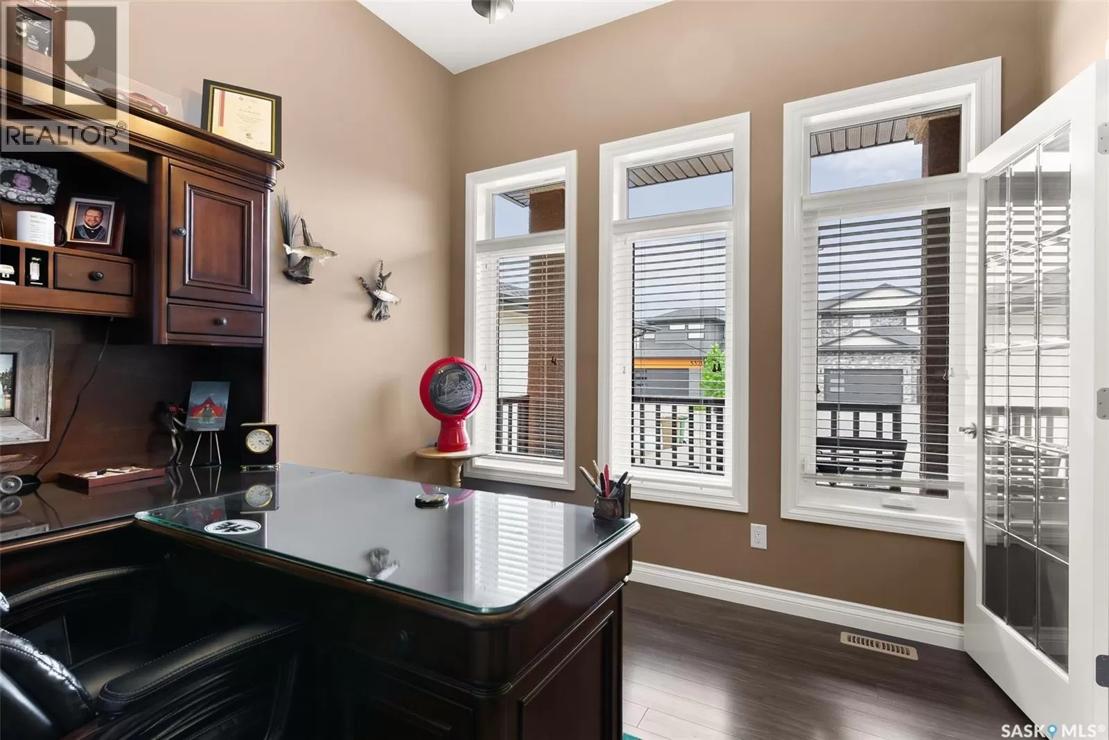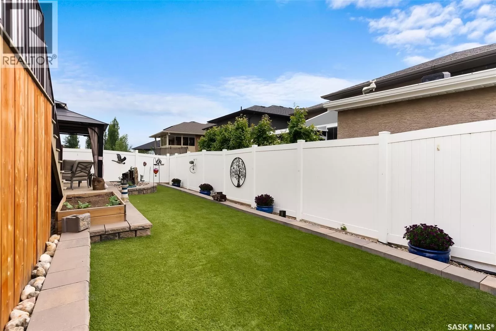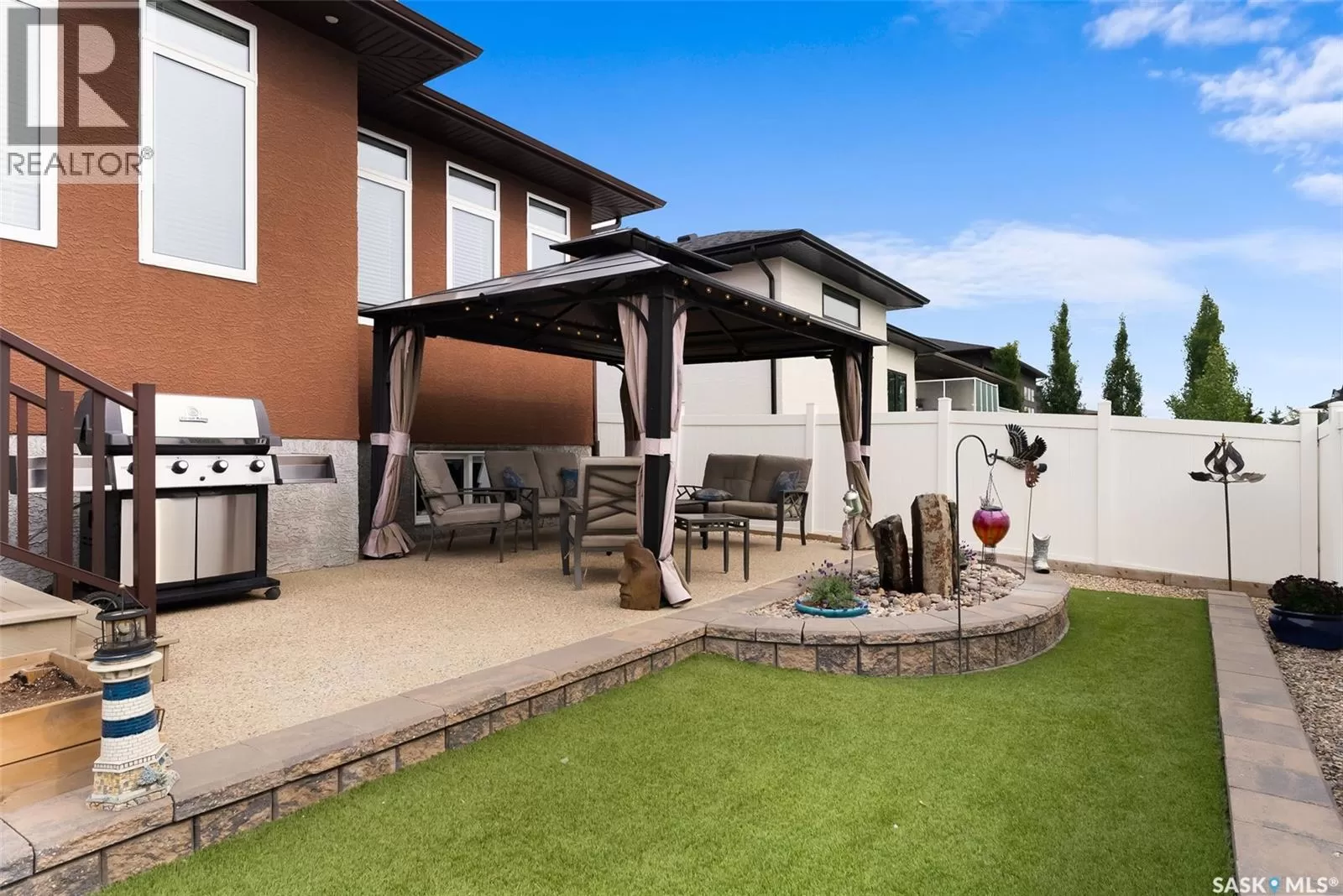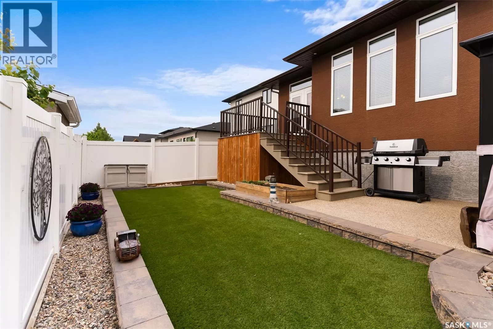 This pristine 1,490 sq/ft custom bungalow in The Greens on Gardiner was expertly crafted by Harmony Builders and showcases quality, comfort, and thoughtful design throughout. Premium upgrades, energy-efficient systems, and an exceptionally functional layout perfect for families or downsizers. Exceptional street appeal with xeriscaped front yard with river rock, stack stone and acrylic stucco exterior, large exposed aggregate driveway to the triple attached heated garage. The open-concept main floor features 9-foot ceilings, and triple-pane windows that flood the space with natural light. The chefâs kitchen is beautifully appointed with rich maple cabinetry, gas range stove, soft-close doors and drawers, crown moulding, under-cabinet lighting, granite countertops, and a large central island with pendant lighting. The bright living room includes a gas fireplace with built-in shelving and tile surround. Spacious dining room with direct access to the backyard and additional light via the piano window. A front-facing office behind glass French doors offers privacy without sacrificing natural light. The spacious primary bedroom features a walk-in closet and luxurious ensuite with dual sinks, and a 5-ft walk-in shower. Completing the main floor is mudroom and spacious designated main floor laundry area with tons of storage. The fully finished basement includes large rec room with two separate living spaces, two additional bedrooms with walk-in closets, and a 4-pc bath. Notice the oversized windows in the basement providing a comfortable feel with the additional natural light to shine through. Navien tankless water heater, high-efficiency furnace, HRV and open web truss floor system. Enjoy the beautifully landscaped, low-maintenance backyard with artificial turf, raised garden beds, gazebo and PVC fencing. The oversized triple garage is heated and finished, with a floor drain, built-in storage, and room for all your tools and toys. Close to all east end amenities! (id:27476)