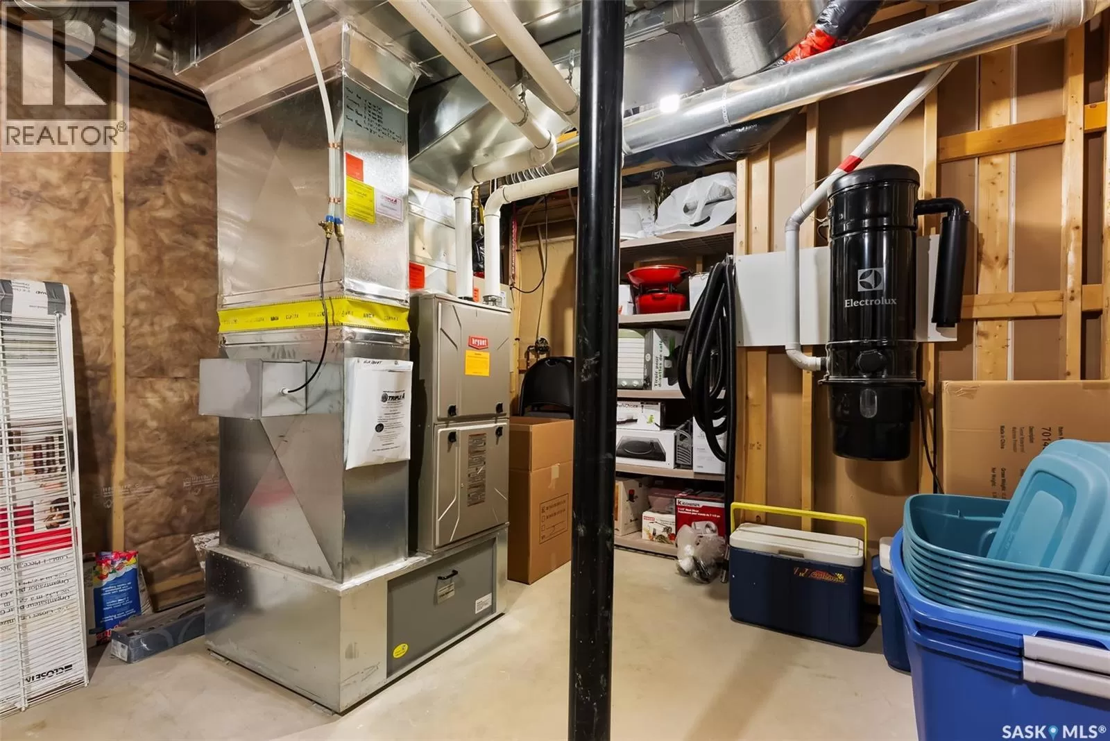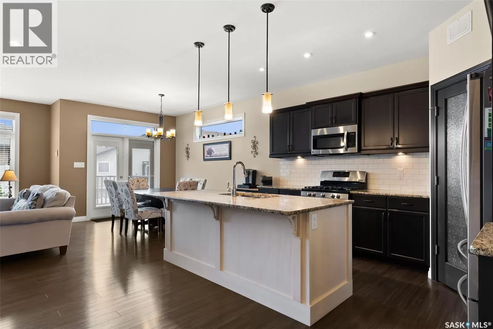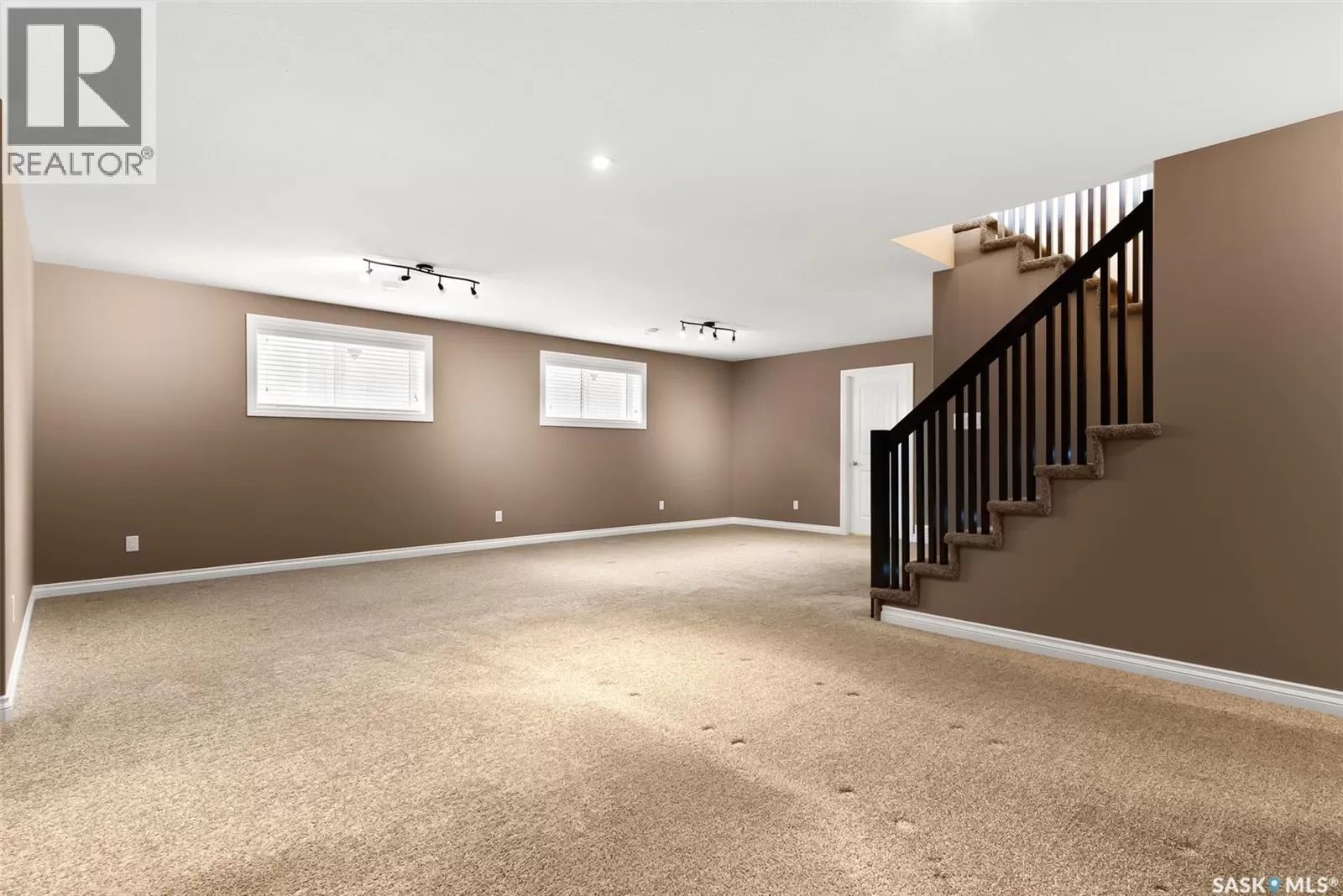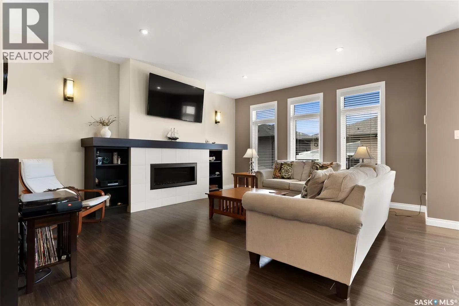 This pristine 1,490 sq/ft custom bungalow in The Greens on Gardiner was expertly crafted by Harmony Builders and showcases quality, comfort, and thoughtful design throughout. Premium upgrades, energy-efficient systems, and an exceptionally functional layout perfect for families or downsizers. Exceptional street appeal with xeriscaped front yard with river rock, stack stone and acrylic stucco exterior, large exposed aggregate driveway to the triple attached heated garage. The open-concept main floor features 9-foot ceilings, and triple-pane windows that flood the space with natural light. The chefâs kitchen is beautifully appointed with rich maple cabinetry, gas range stove, soft-close doors and drawers, crown moulding, under-cabinet lighting, granite countertops, and a large central island with pendant lighting. The bright living room includes a gas fireplace with built-in shelving and tile surround. Spacious dining room with direct access to the backyard and additional light via the piano window. A front-facing office behind glass French doors offers privacy without sacrificing natural light. The spacious primary bedroom features a walk-in closet and luxurious ensuite with dual sinks, and a 5-ft walk-in shower. Completing the main floor is mudroom and spacious designated main floor laundry area with tons of storage. The fully finished basement includes large rec room with two separate living spaces, two additional bedrooms with walk-in closets, and a 4-pc bath. Notice the oversized windows in the basement providing a comfortable feel with the additional natural light to shine through. Navien tankless water heater, high-efficiency furnace, HRV and open web truss floor system. Enjoy the beautifully landscaped, low-maintenance backyard with artificial turf, raised garden beds, gazebo and PVC fencing. The oversized triple garage is heated and finished, with a floor drain, built-in storage, and room for all your tools and toys. Close to all east end amenities! (id:27476)