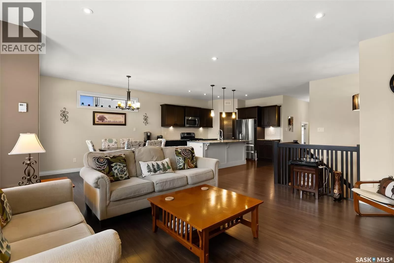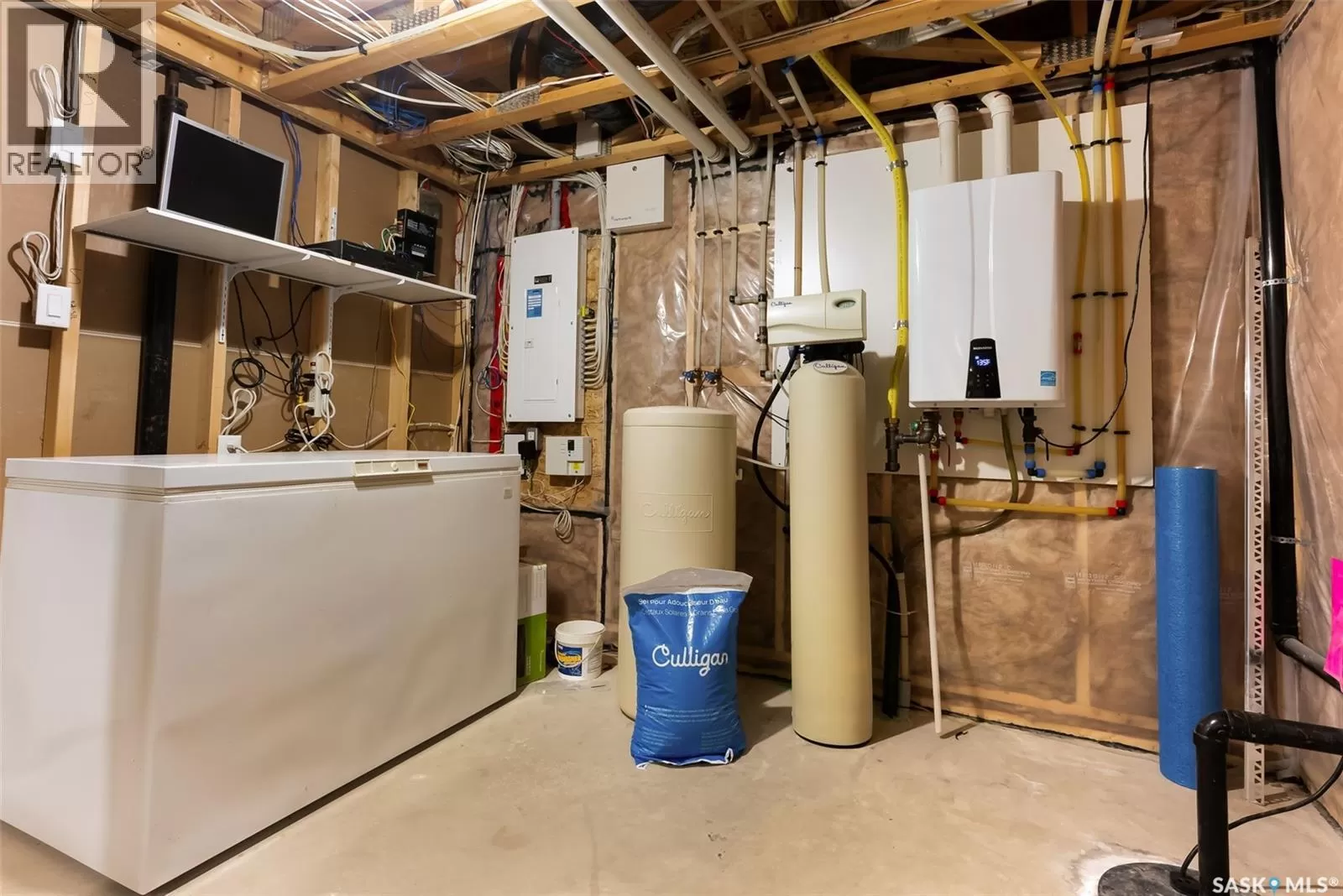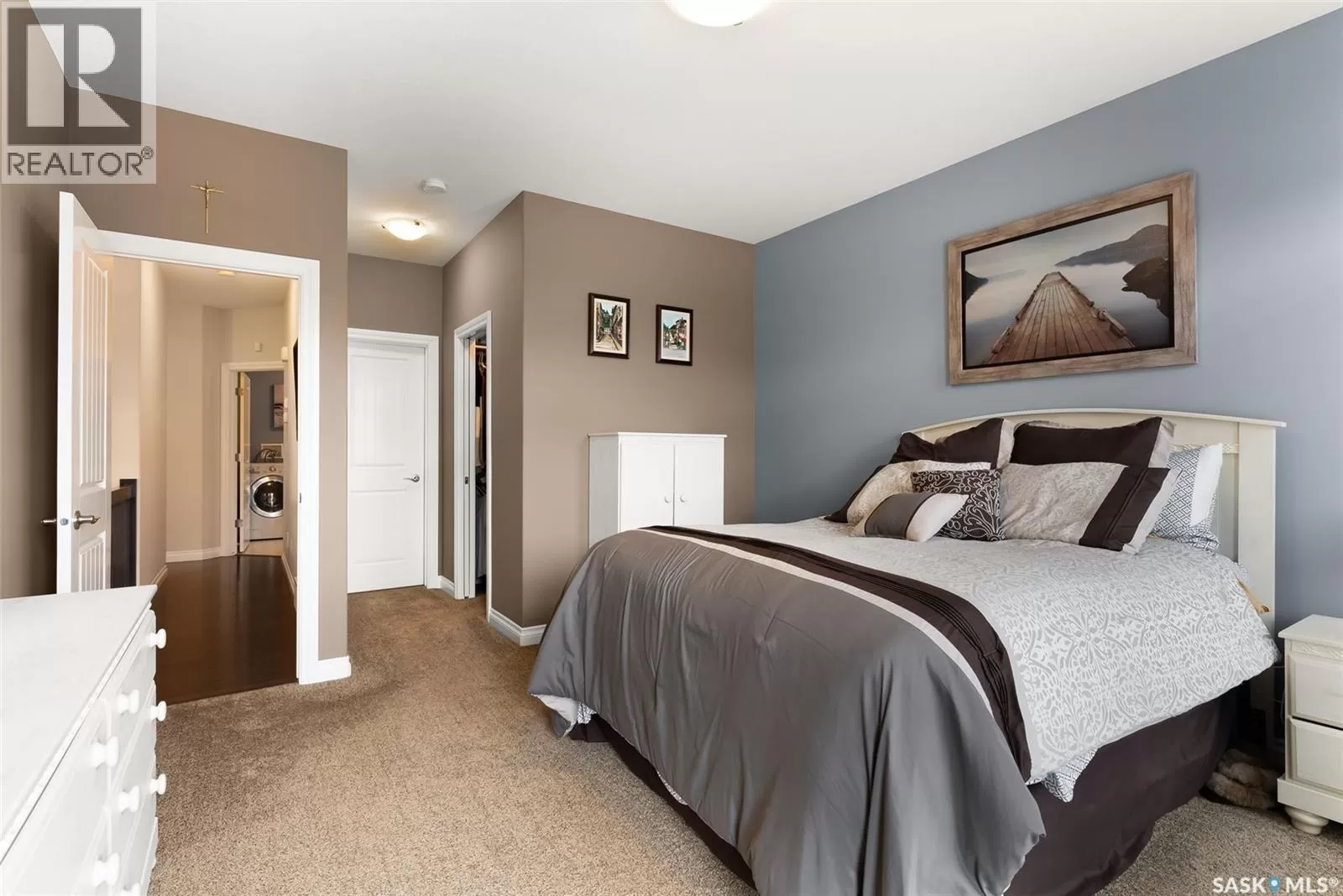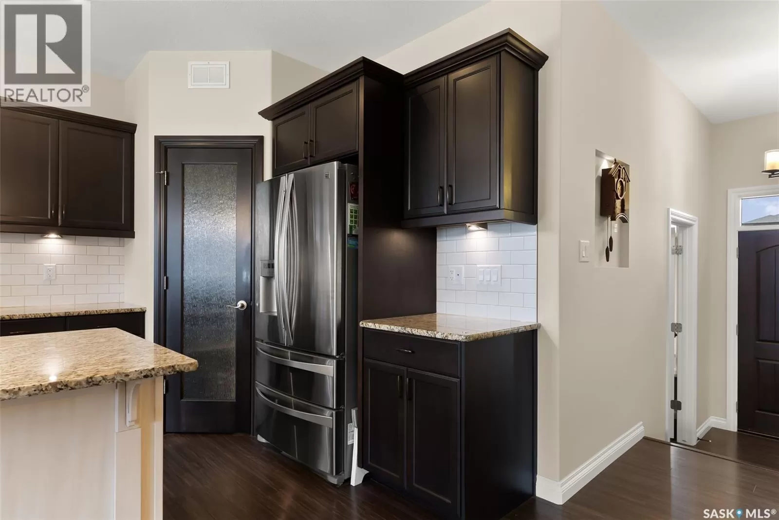 This pristine 1,490 sq/ft custom bungalow in The Greens on Gardiner was expertly crafted by Harmony Builders and showcases quality, comfort, and thoughtful design throughout. Premium upgrades, energy-efficient systems, and an exceptionally functional layout perfect for families or downsizers. Exceptional street appeal with xeriscaped front yard with river rock, stack stone and acrylic stucco exterior, large exposed aggregate driveway to the triple attached heated garage. The open-concept main floor features 9-foot ceilings, and triple-pane windows that flood the space with natural light. The chefâs kitchen is beautifully appointed with rich maple cabinetry, gas range stove, soft-close doors and drawers, crown moulding, under-cabinet lighting, granite countertops, and a large central island with pendant lighting. The bright living room includes a gas fireplace with built-in shelving and tile surround. Spacious dining room with direct access to the backyard and additional light via the piano window. A front-facing office behind glass French doors offers privacy without sacrificing natural light. The spacious primary bedroom features a walk-in closet and luxurious ensuite with dual sinks, and a 5-ft walk-in shower. Completing the main floor is mudroom and spacious designated main floor laundry area with tons of storage. The fully finished basement includes large rec room with two separate living spaces, two additional bedrooms with walk-in closets, and a 4-pc bath. Notice the oversized windows in the basement providing a comfortable feel with the additional natural light to shine through. Navien tankless water heater, high-efficiency furnace, HRV and open web truss floor system. Enjoy the beautifully landscaped, low-maintenance backyard with artificial turf, raised garden beds, gazebo and PVC fencing. The oversized triple garage is heated and finished, with a floor drain, built-in storage, and room for all your tools and toys. Close to all east end amenities! (id:27476)