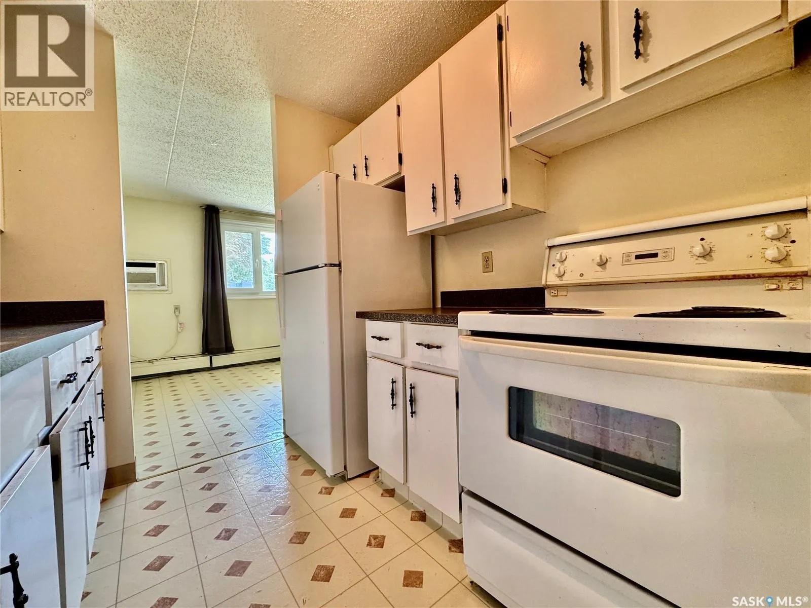 Location, Location, Location! This bright 2-bedroom condo is ideally situated in the desirable Hillsdale subdivisionâright across the street from the University of Regina, and just minutes from SIAST, Wascana Park with its scenic bike trails, bus routes, Ring Road access, restaurants, and all the amenities of Reginaâs vibrant South end. Inside, youâll find a spacious living room and dining area, a functional galley-style kitchen, two generously sized bedrooms, a 4-piece main bathroom, and a large storage area. Condo fees conveniently include water, heat, and all common area maintenance. An assigned parking stall is also included. (id:27476)