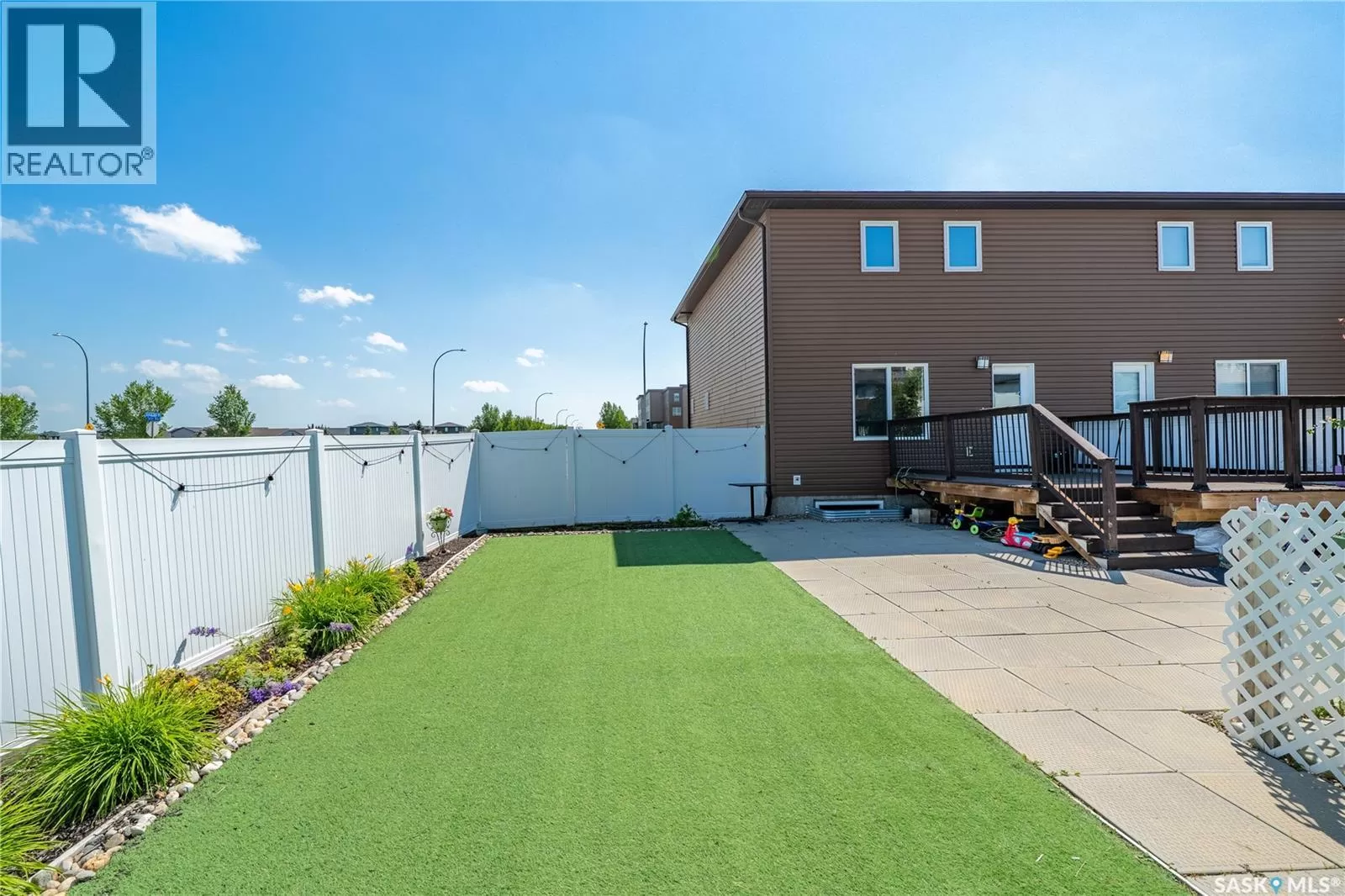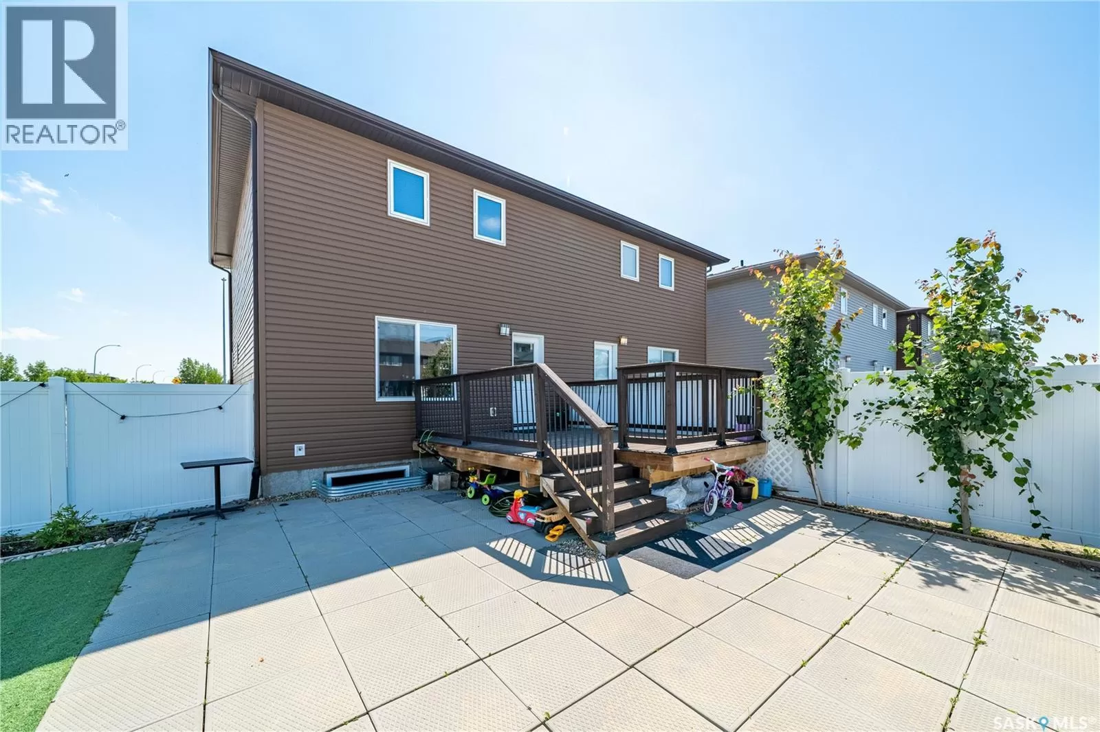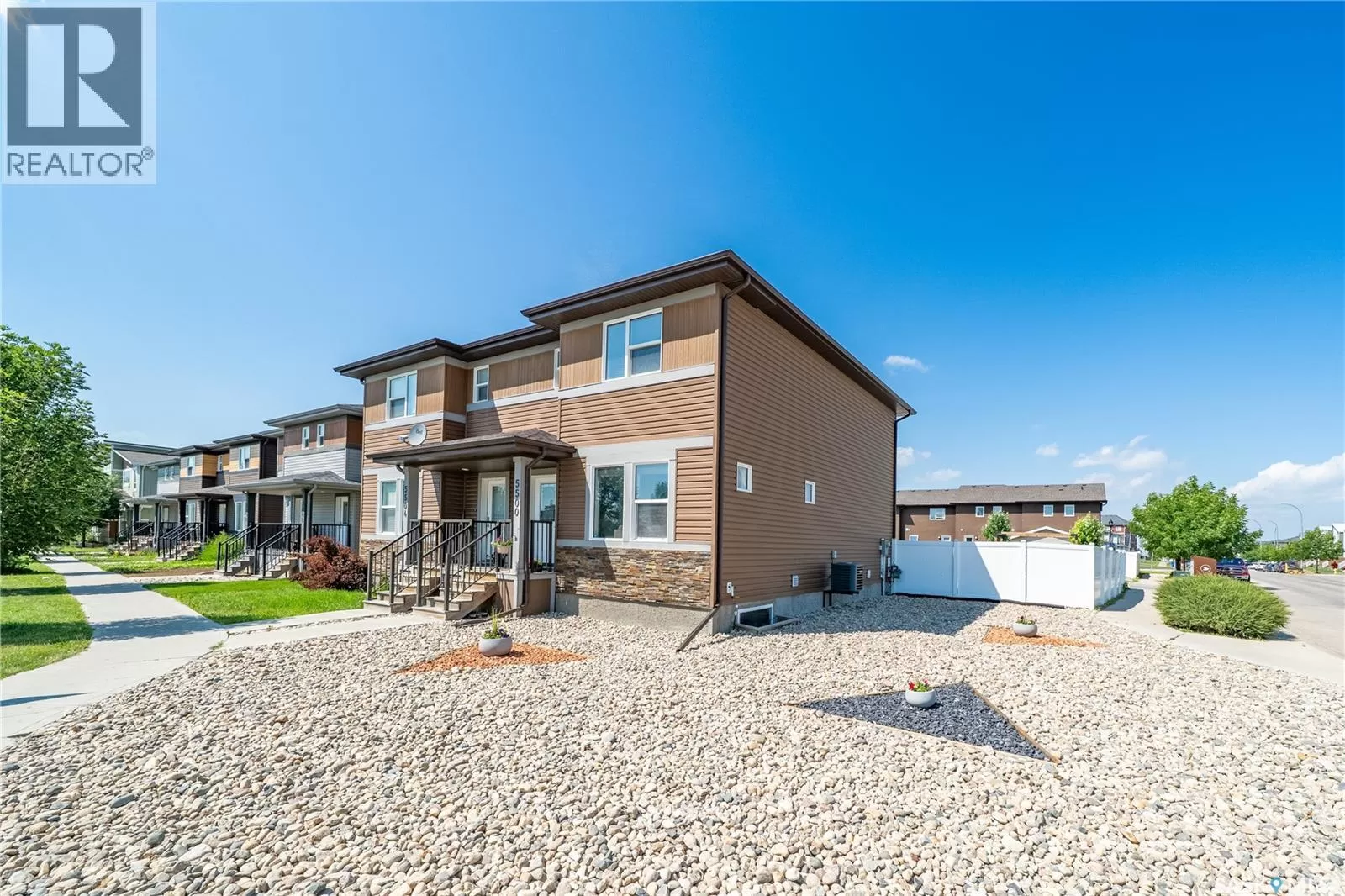 Welcome to 5500 Tutor Way â a standout corner unit and former show home in the highly sought-after Harbour Landing neighborhood, just steps from Havilland Park and close to all south-end amenities. The open-concept main floor offers a bright living room, dining area, and large windows with lots of natural light. The kitchen is a very good size and offers a large center island, gas stove, pantry, and stainless steel appliances. The dining area has a huge window overlooking the professionally done backyard, and there is also a convenient laundry area and 2-piece bath on this level. Upstairs offers three generously sized bedrooms and two bathrooms, including a primary suite with a walk-in closet and 4-piece ensuite, plus another 4-piece bathroom. Off the kitchen is a door leading to the deck and a spacious, fully landscaped, and partially fenced yardâperfect for summer evenings, BBQs, and outdoor fun. The backyard also features a large patio ideal for relaxing and family gatherings, along with a 2-car detached garage pad with alley access. (id:27476)