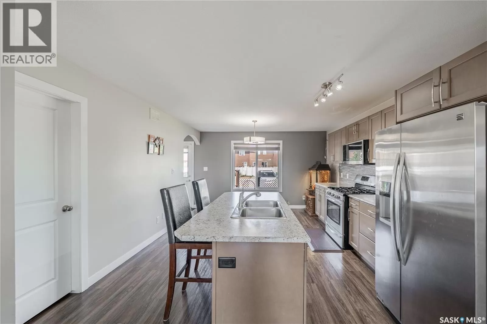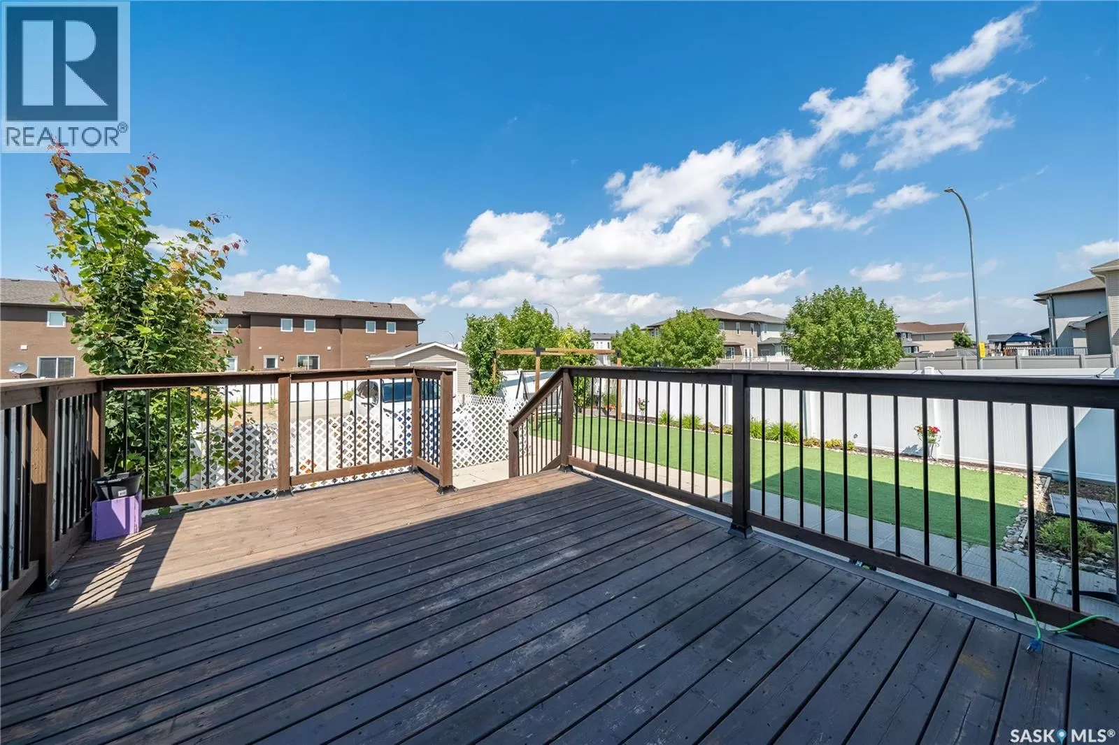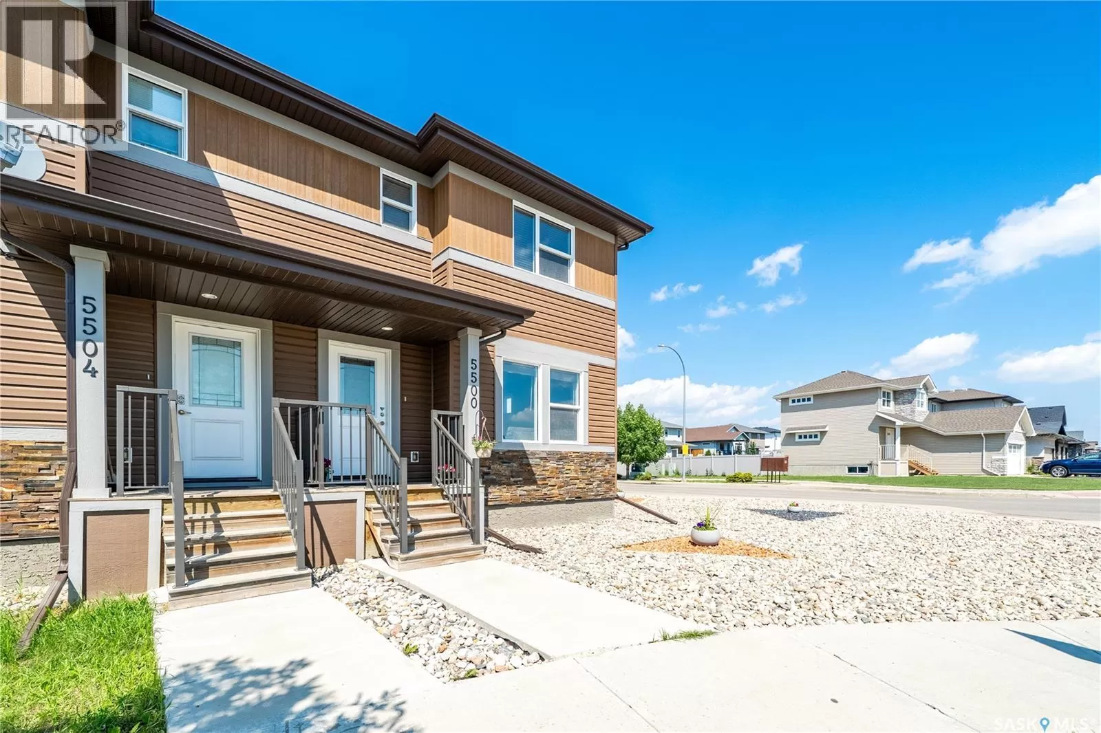 Welcome to 5500 Tutor Way â a standout corner unit and former show home in the highly sought-after Harbour Landing neighborhood, just steps from Havilland Park and close to all south-end amenities. The open-concept main floor offers a bright living room, dining area, and large windows with lots of natural light. The kitchen is a very good size and offers a large center island, gas stove, pantry, and stainless steel appliances. The dining area has a huge window overlooking the professionally done backyard, and there is also a convenient laundry area and 2-piece bath on this level. Upstairs offers three generously sized bedrooms and two bathrooms, including a primary suite with a walk-in closet and 4-piece ensuite, plus another 4-piece bathroom. Off the kitchen is a door leading to the deck and a spacious, fully landscaped, and partially fenced yardâperfect for summer evenings, BBQs, and outdoor fun. The backyard also features a large patio ideal for relaxing and family gatherings, along with a 2-car detached garage pad with alley access. (id:27476)