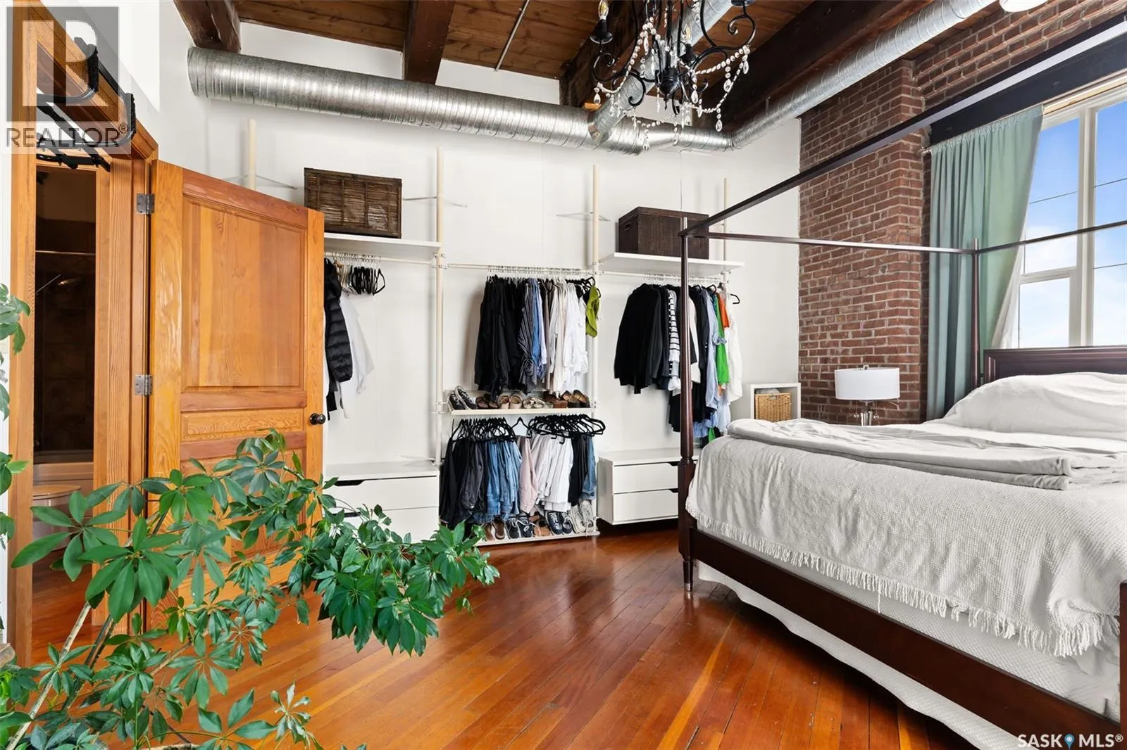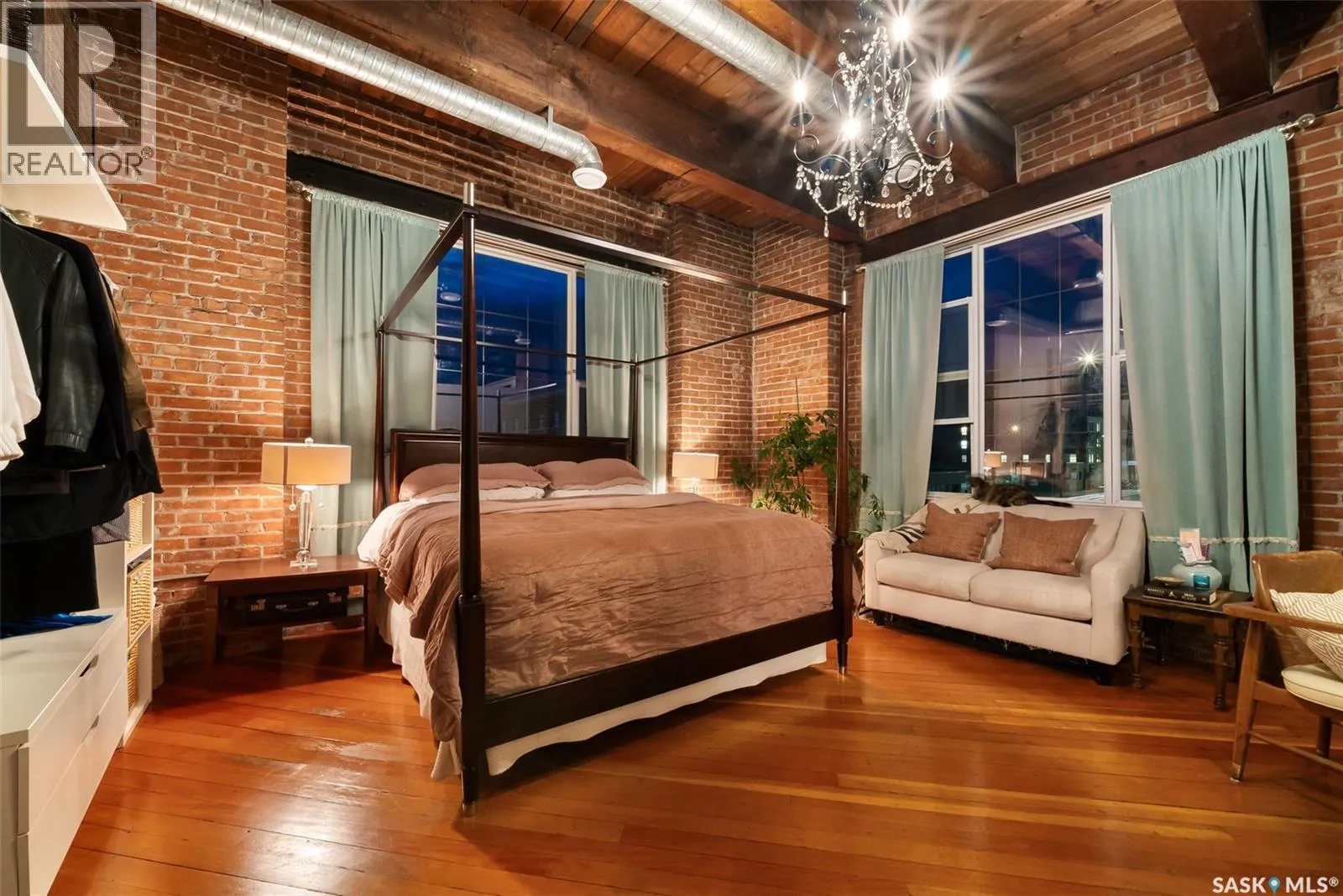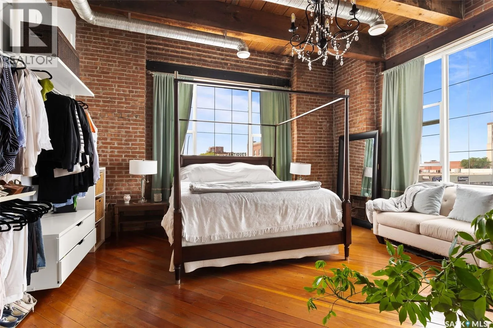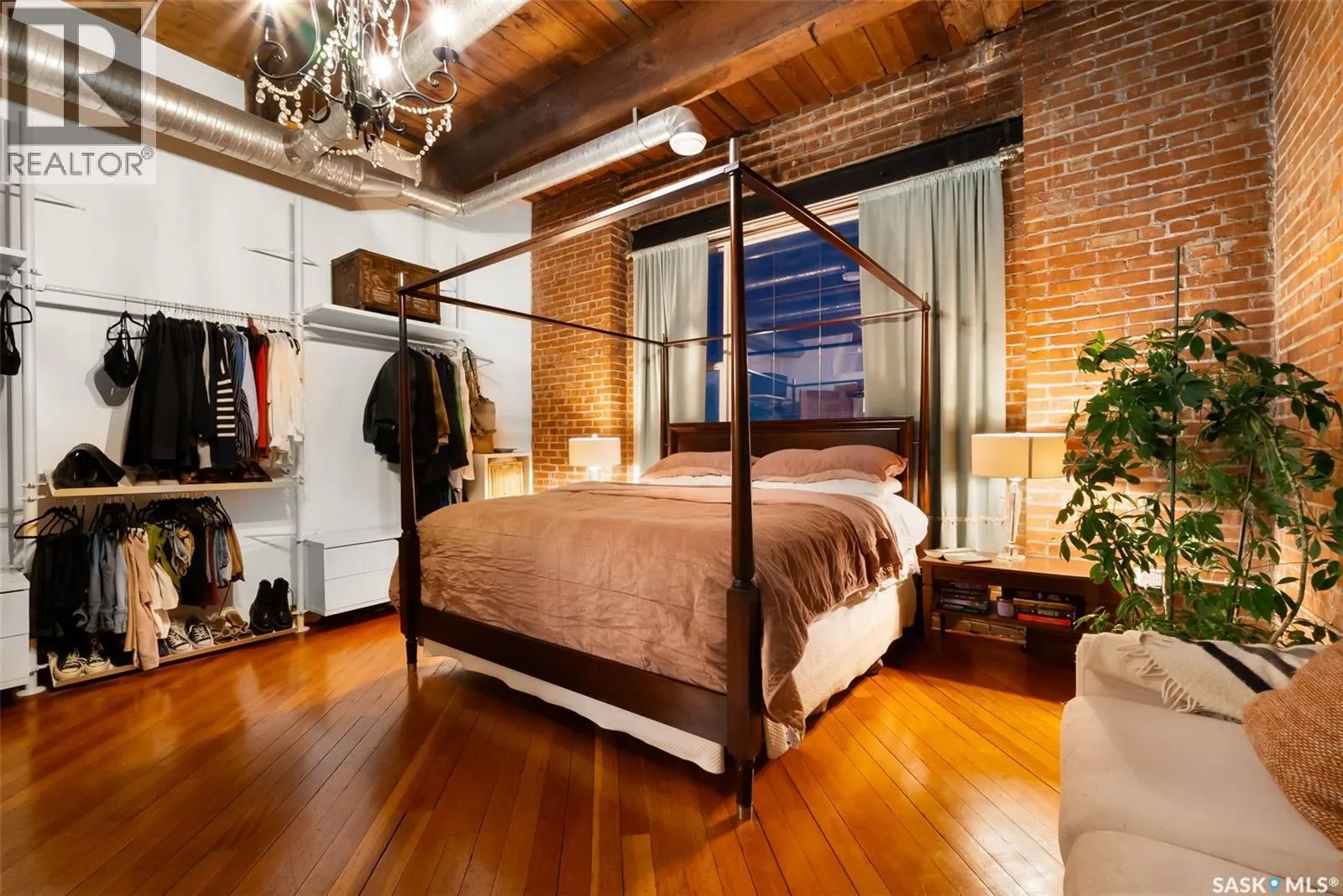 Luxury Loft in the Heart of the Warehouse District Experience urban sophistication in this one-of-a-kind warehouse loft, perfectly blending historic character with modern luxury. Featuring soaring ceilings, rich hardwood floors, striking exposed brick walls, and original wood beams, this home offers a warm yet industrial aesthetic thatâs both timeless and inviting. Flooded with natural light from oversized windowsâcomplete with custom Hunter Douglas blackout blindsâthe open living space is enhanced by bespoke millwork and thoughtful design touches throughout. The chefâs kitchen is a showpiece, equipped with a 36â Wolf gas range and industrial-grade stainless steel appliances. The spa-inspired 4-piece bath boasts a rejuvenating jet tub and a truly unique soapstone pedestal sink, while the generous bedroom is large enough to accommodate a king-size poster bed, a relaxing hang out area, and features a custom closet organizer for ideal storage. Located in the vibrant Warehouse District, youâll be just steps from boutique shopping, trendy coffee shops, and fitness studios, making it the perfect home for both work and play. Additional highlights include low condo fees of just $218.75/month, building is pet friendly with restrictions, and an exceptional blend of architectural charm with modern conveniences. This rare 1 bedroom, 1 bathroom loft is a statement in urban luxuryâideal for the discerning buyer who appreciates design, comfort, and lifestyle. Reach out to your Realtor® today to book your personal tour. (id:27476)