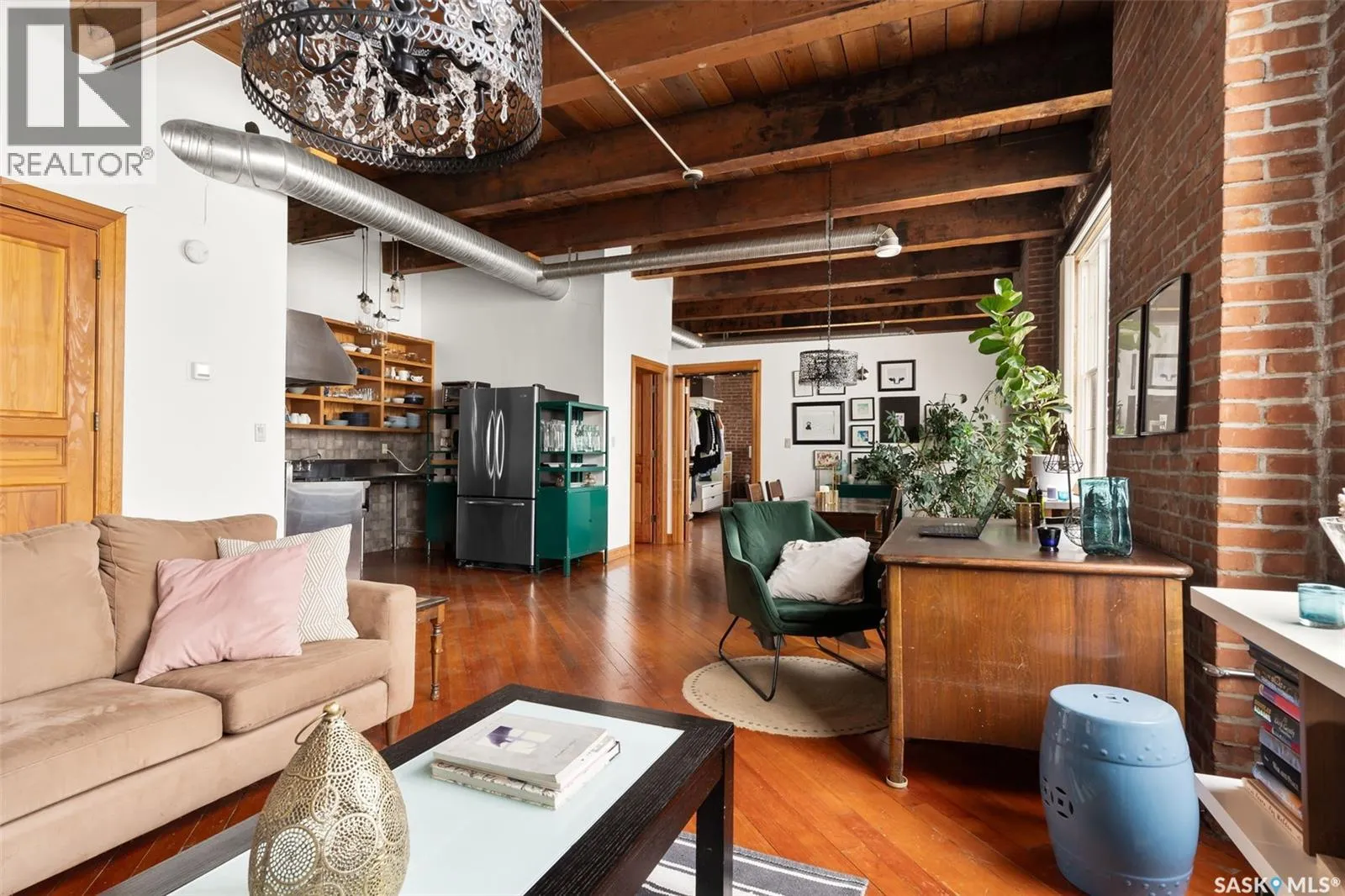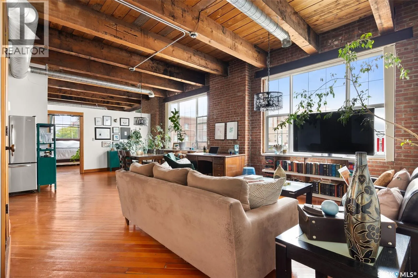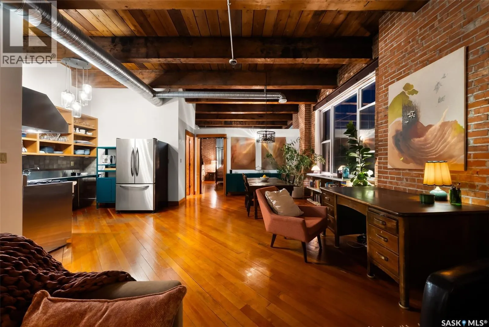 Luxury Loft in the Heart of the Warehouse District Experience urban sophistication in this one-of-a-kind warehouse loft, perfectly blending historic character with modern luxury. Featuring soaring ceilings, rich hardwood floors, striking exposed brick walls, and original wood beams, this home offers a warm yet industrial aesthetic thatâs both timeless and inviting. Flooded with natural light from oversized windowsâcomplete with custom Hunter Douglas blackout blindsâthe open living space is enhanced by bespoke millwork and thoughtful design touches throughout. The chefâs kitchen is a showpiece, equipped with a 36â Wolf gas range and industrial-grade stainless steel appliances. The spa-inspired 4-piece bath boasts a rejuvenating jet tub and a truly unique soapstone pedestal sink, while the generous bedroom is large enough to accommodate a king-size poster bed, a relaxing hang out area, and features a custom closet organizer for ideal storage. Located in the vibrant Warehouse District, youâll be just steps from boutique shopping, trendy coffee shops, and fitness studios, making it the perfect home for both work and play. Additional highlights include low condo fees of just $218.75/month, building is pet friendly with restrictions, and an exceptional blend of architectural charm with modern conveniences. This rare 1 bedroom, 1 bathroom loft is a statement in urban luxuryâideal for the discerning buyer who appreciates design, comfort, and lifestyle. Reach out to your Realtor® today to book your personal tour. (id:27476)