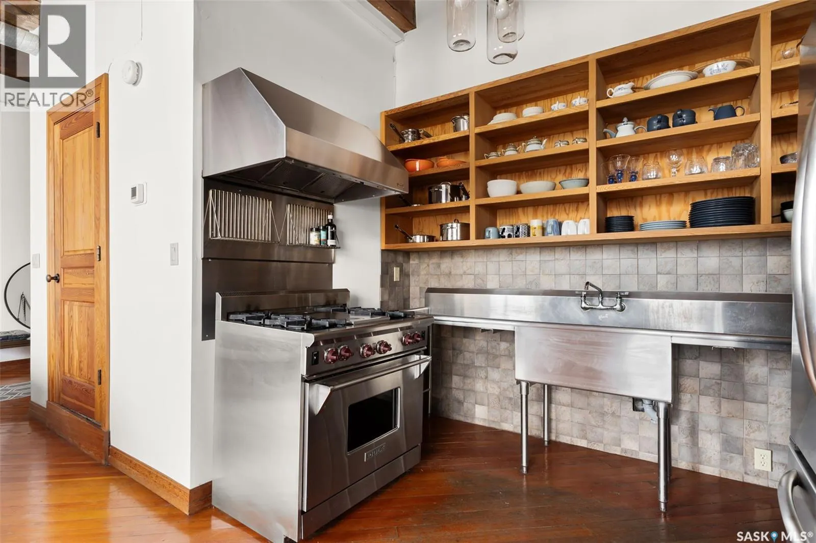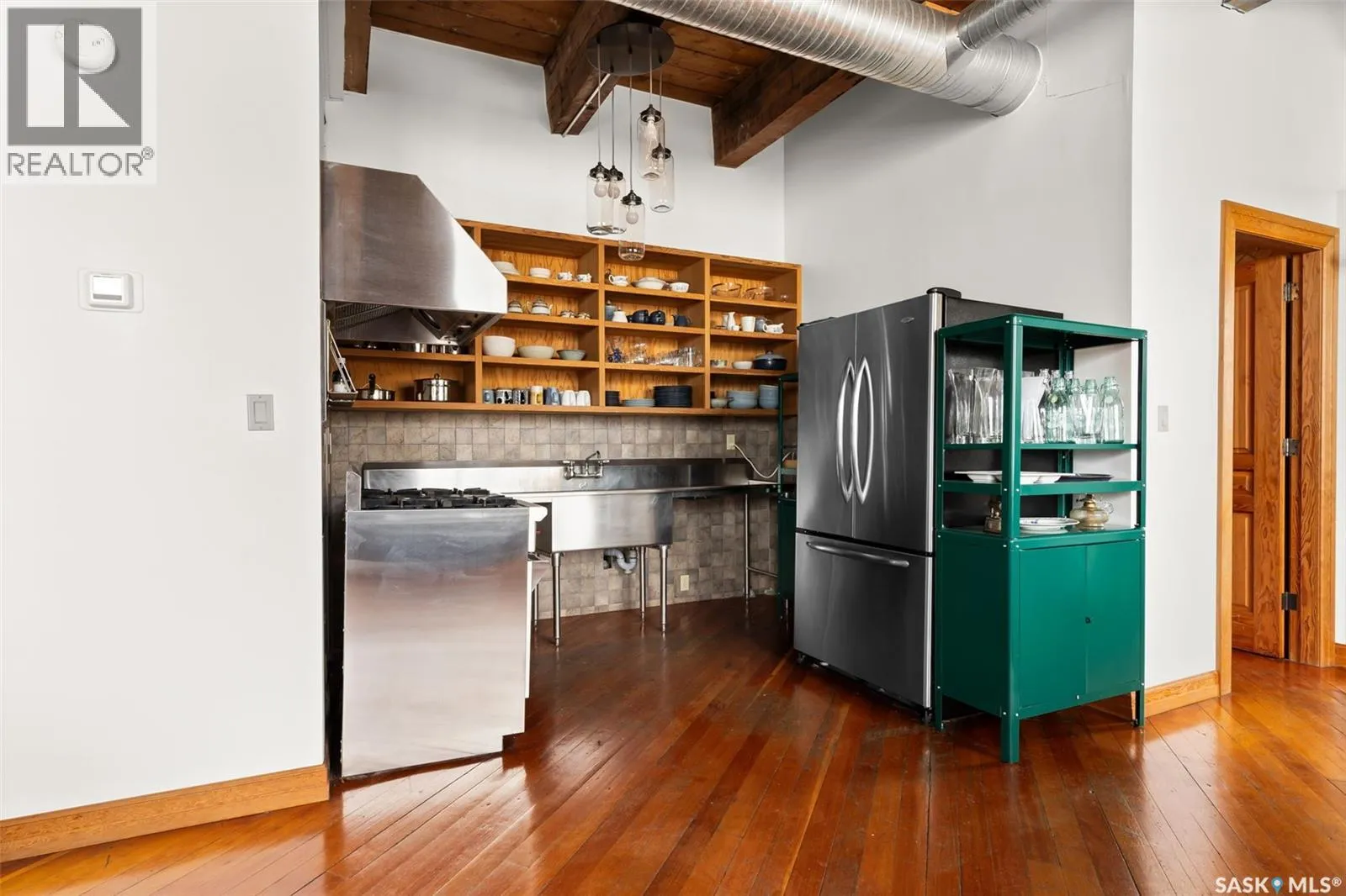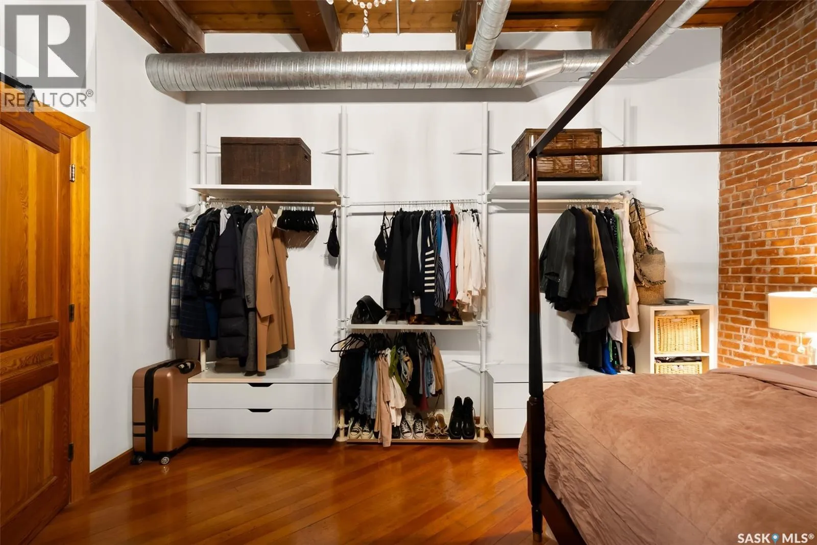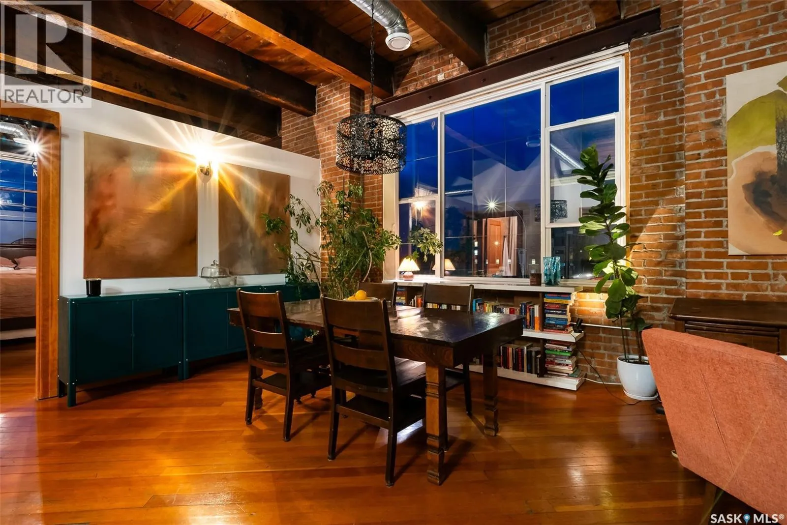 Luxury Loft in the Heart of the Warehouse District Experience urban sophistication in this one-of-a-kind warehouse loft, perfectly blending historic character with modern luxury. Featuring soaring ceilings, rich hardwood floors, striking exposed brick walls, and original wood beams, this home offers a warm yet industrial aesthetic thatâs both timeless and inviting. Flooded with natural light from oversized windowsâcomplete with custom Hunter Douglas blackout blindsâthe open living space is enhanced by bespoke millwork and thoughtful design touches throughout. The chefâs kitchen is a showpiece, equipped with a 36â Wolf gas range and industrial-grade stainless steel appliances. The spa-inspired 4-piece bath boasts a rejuvenating jet tub and a truly unique soapstone pedestal sink, while the generous bedroom is large enough to accommodate a king-size poster bed, a relaxing hang out area, and features a custom closet organizer for ideal storage. Located in the vibrant Warehouse District, youâll be just steps from boutique shopping, trendy coffee shops, and fitness studios, making it the perfect home for both work and play. Additional highlights include low condo fees of just $218.75/month, building is pet friendly with restrictions, and an exceptional blend of architectural charm with modern conveniences. This rare 1 bedroom, 1 bathroom loft is a statement in urban luxuryâideal for the discerning buyer who appreciates design, comfort, and lifestyle. Reach out to your Realtor® today to book your personal tour. (id:27476)