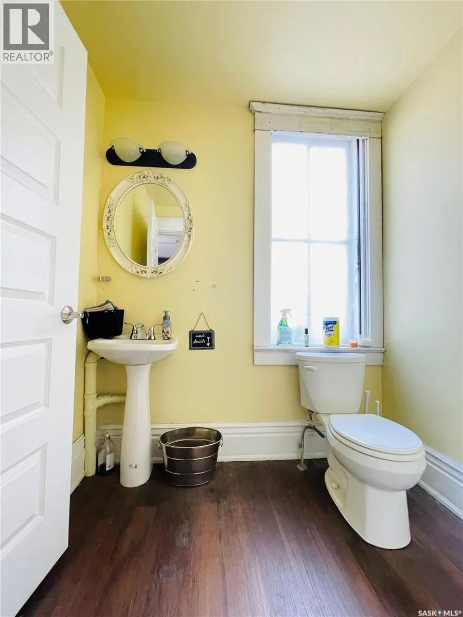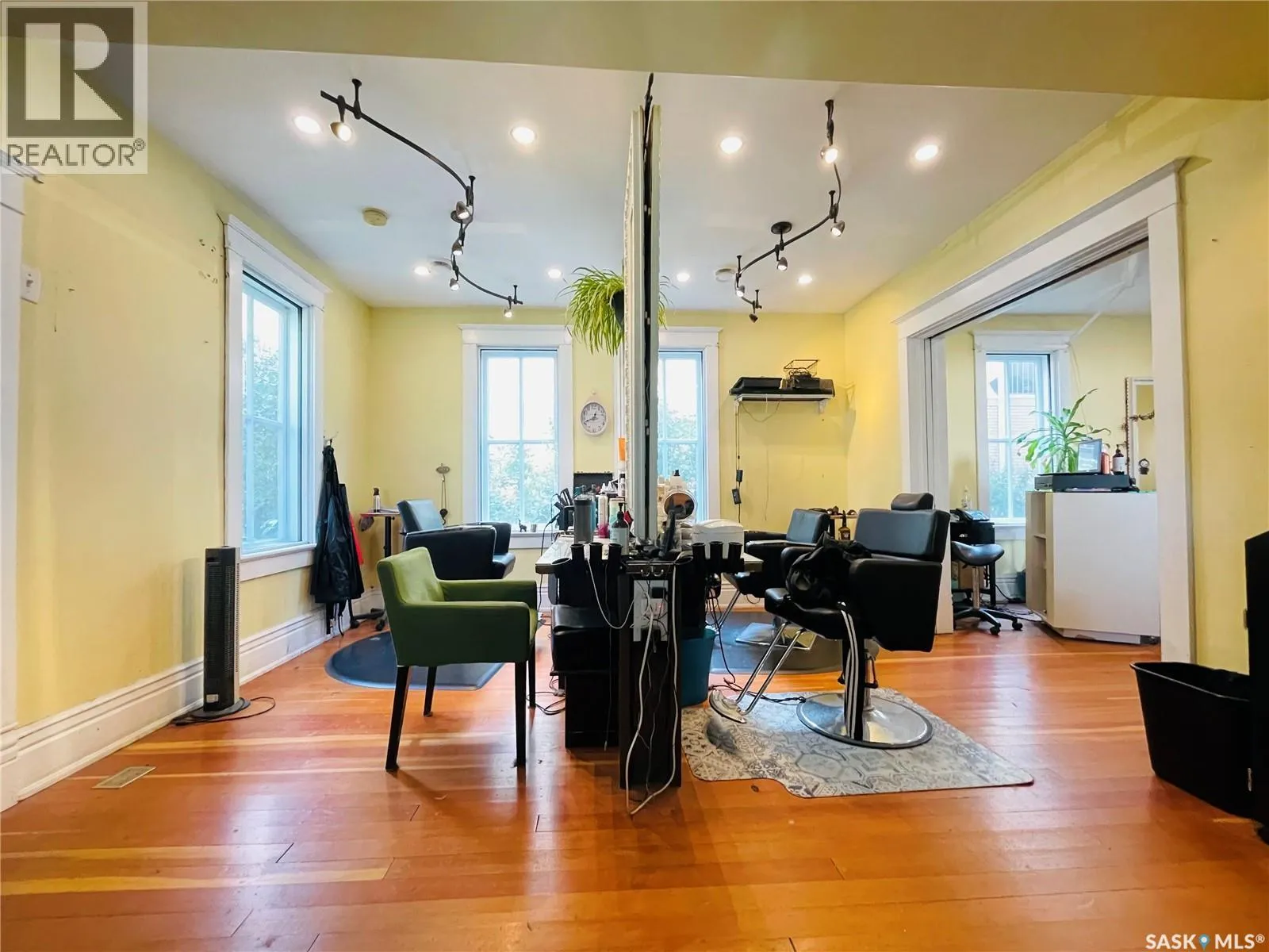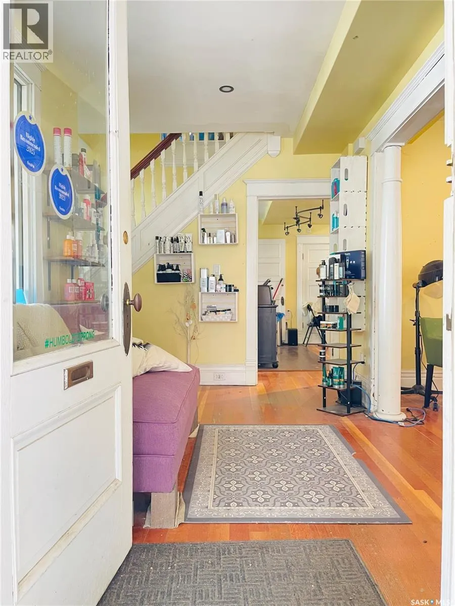 This designated Heritage property located in Transition Area near Downtown Regina and Wascana Park. Currently utilized as a hair salon, the 1,523 square foot, 2 storey home is a fantastic property for a trendy downtown business space. Generous parking at the back as this property sits on apprx 50 ft wide corner lot giving you option to park two rows up to 10 vehicles. Covered front porch provides nice street appeal and highlights the original character. Upon entry you are welcomed into the foyer with original hardwood floors â this space is currently being used as a retail and reception area. Open concept main floor with styling stations, kitchen area that has been turned into a back bar with sinks and a 2 pc power room. 2nd floor has 3 bedrooms currently used as treatment spaces â one with sink and microwave and another with a new shower and sink. Basement houses the laundry area (washer and dryer included) with plenty of storage space, Many updates throughout over the years including: leveling of property, basement spray foam, central air, alarm system, sewer line, electrical wiring, plumbing, support beam added in basement, new windows on the main level, exterior paint scraped and refreshed, all new fireproof insulation and drywall, all new brickwork on outside beams. (id:27476)