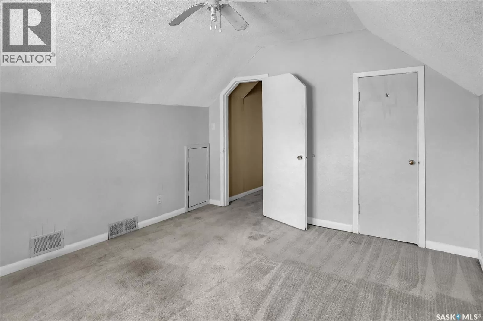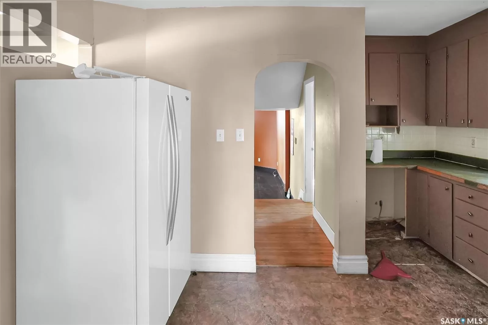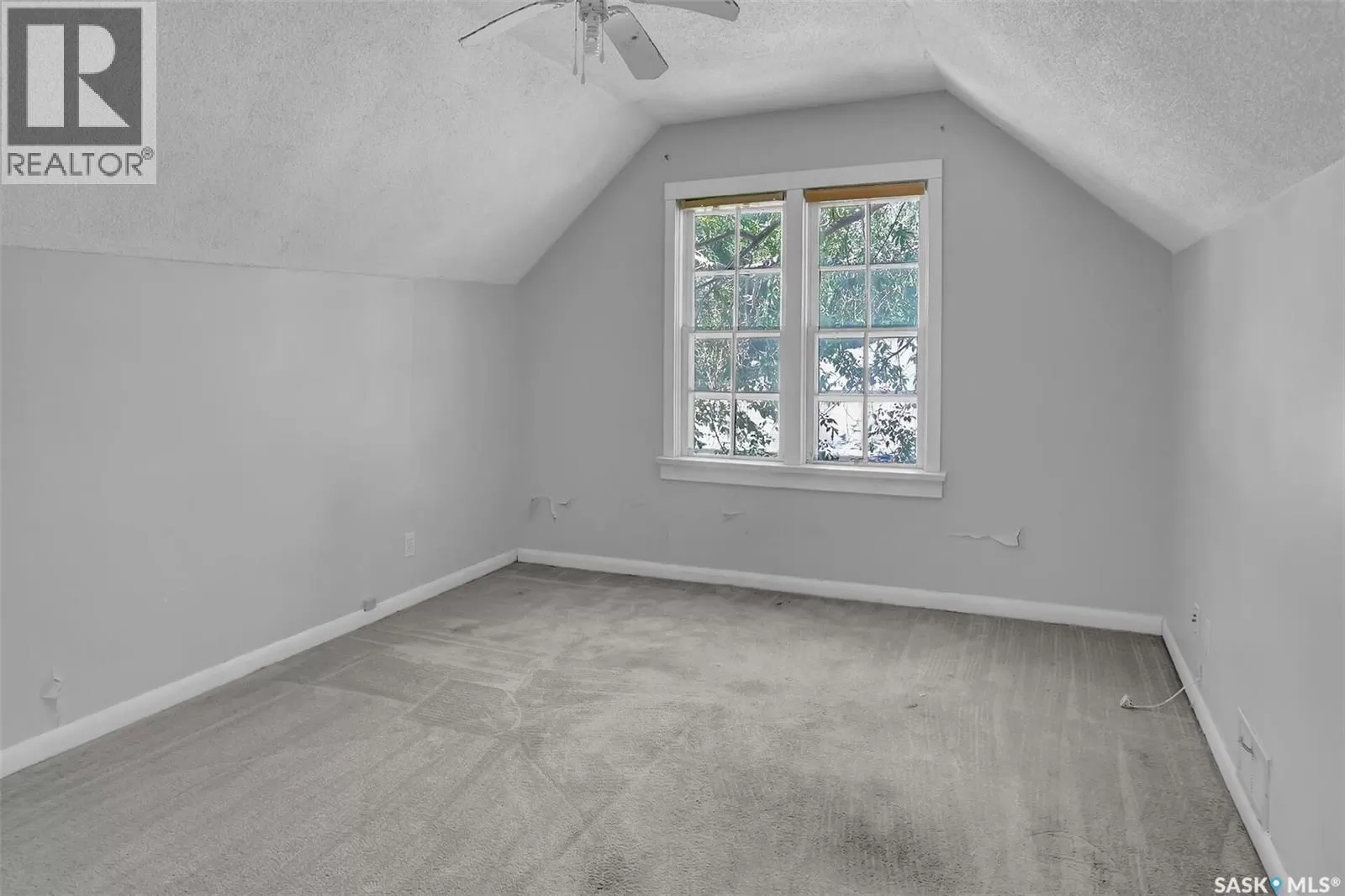 Outstanding Location with Endless Potential! Situated just steps from Candy Cane Park, the IMAX Theatre, Science Centre, Wascana Drive, and the scenic walking paths along Wascana Lake, this 1,636 sq ft 1 ½ storey home sits on a 4,687 sq ft lot in one of Reginaâs most desirable locations. Whether youâre looking for a project home to renovate and add value, or the perfect spot to tear down and build your dream property, the potential here is truly endless. One of the standout features is the large heated double detached garage with additional shop space, ideal for hobbyists, storage, or those needing an extra workroom. The existing home features original hardwood flooring in the living and dining rooms, a cozy kitchen, and a 3-piece bath on the main level. An addition on the main floor offers a spacious primary bedroom with a large walk-in closet, access to a 4-piece bathroom, laundry area, and direct access to the backyard and garage. Upstairs youâll find two additional bedrooms, while the basement provides storage and houses the mechanical room with a high-efficiency furnace. This property is all about location, opportunity, and potentialâdonât miss your chance to create something truly special in the heart of Arnhem Place. (id:27476)