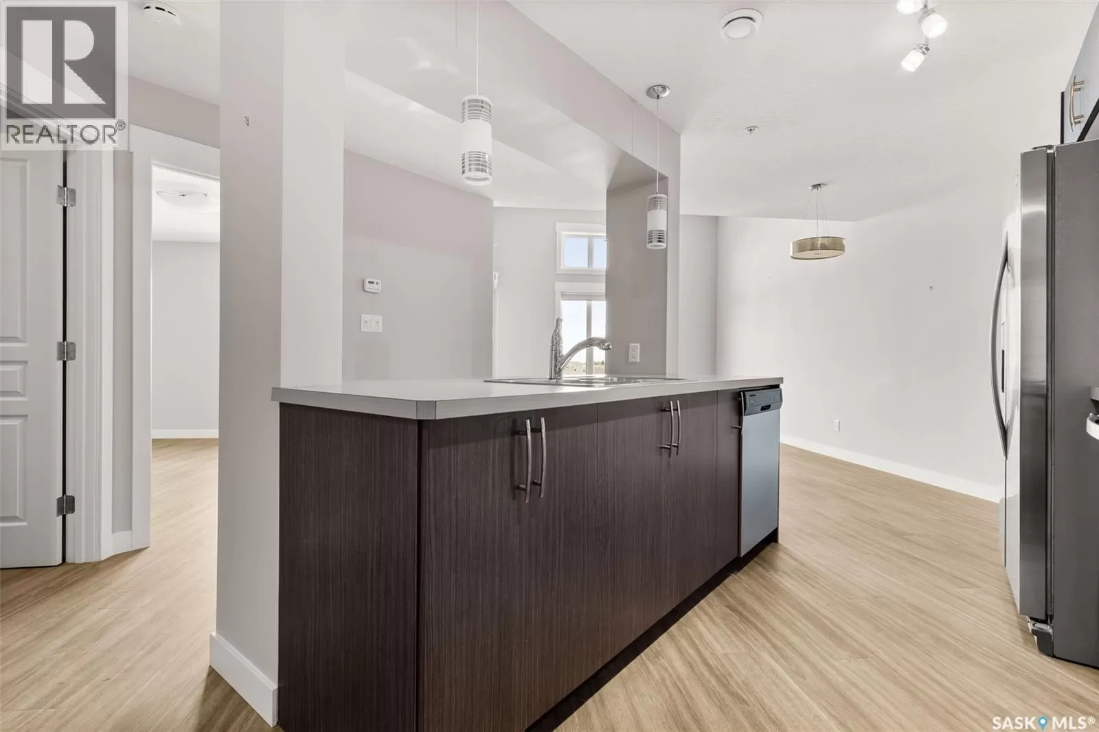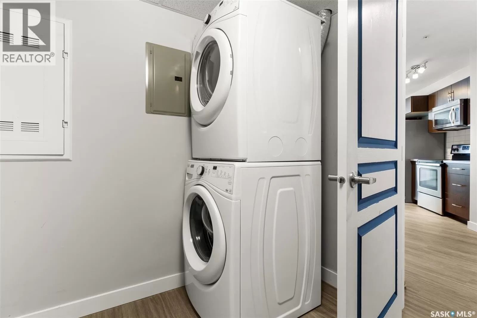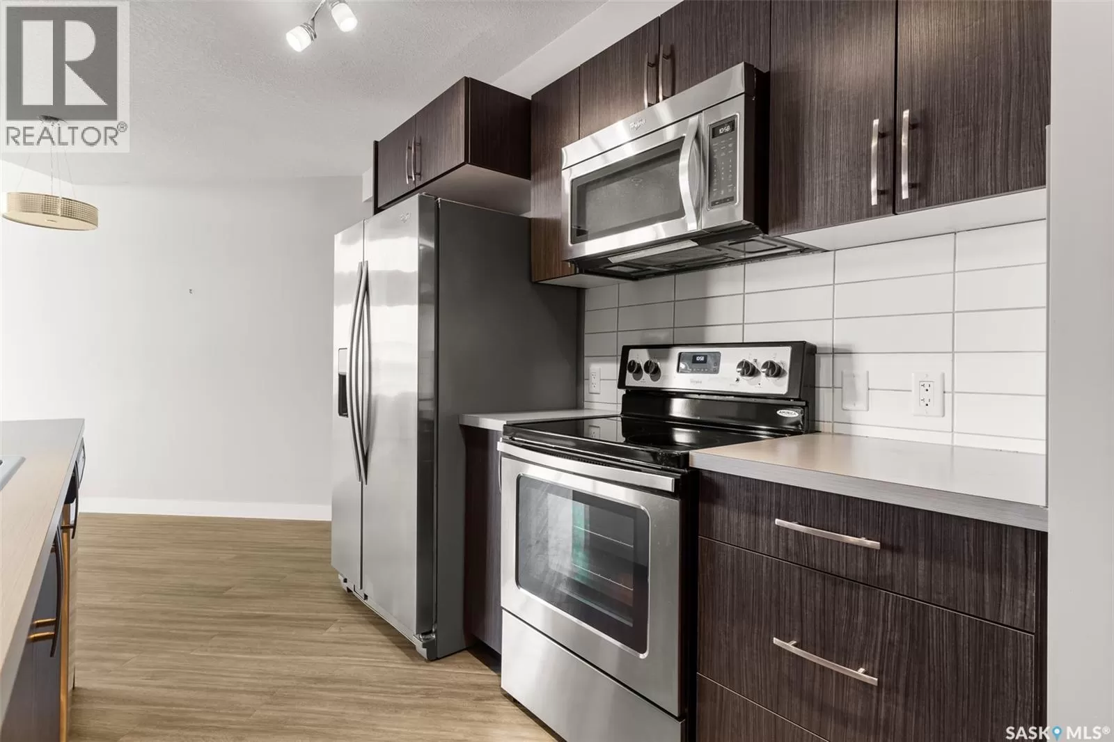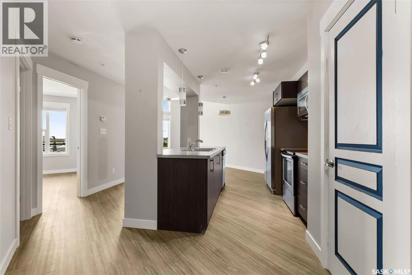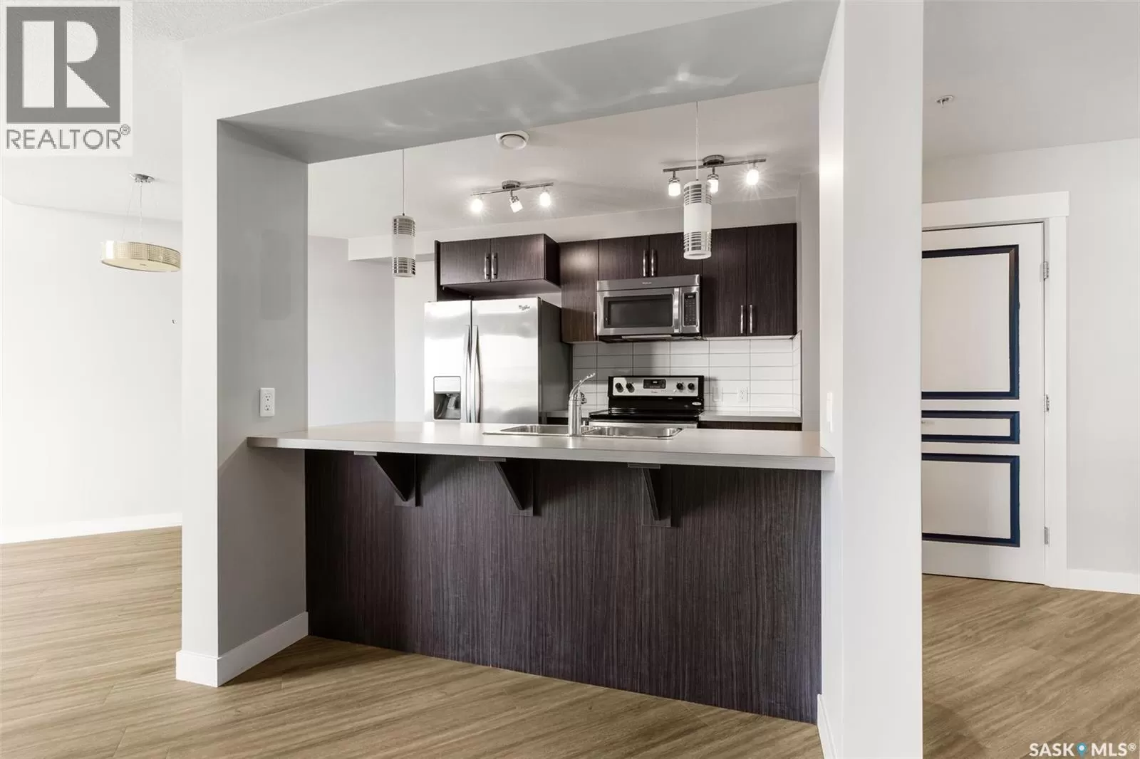 Bright open concept 4TH floor condo in great Harbor Landing location close to parks, schools and all amenities. 732 sq feet, 1 bedroom, 1 bath with multiple features and upgrades including good size living area with engineered hardwood flooring and neutral tones. Custom kitchen with large island, stainless steel appliances and pantry, large storage/laundry room, balcony, 1 heated interior parking space, all appliances included and central air conditioning. Building amenities include a guest suite, car wash/dog wash & bike storage in the parking area, fitness centre, a theatre room and visitor parking and much more. (id:27476)