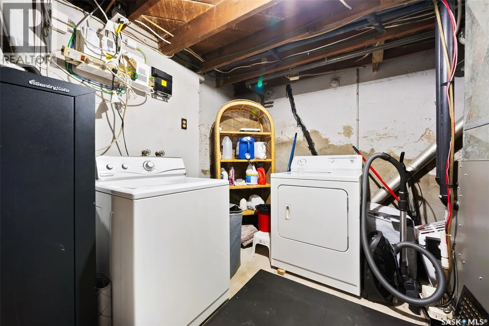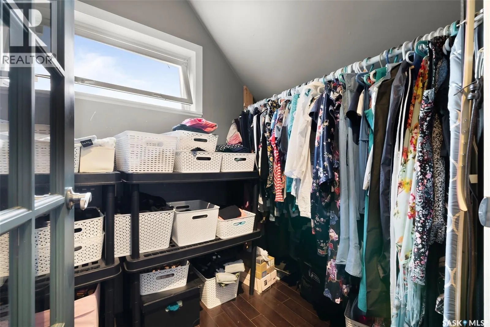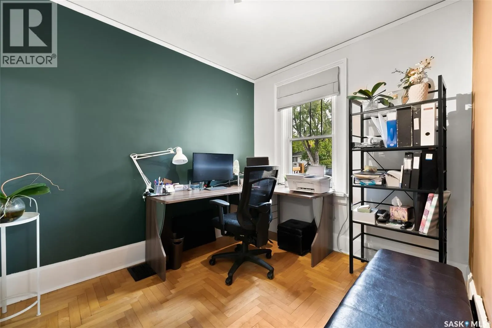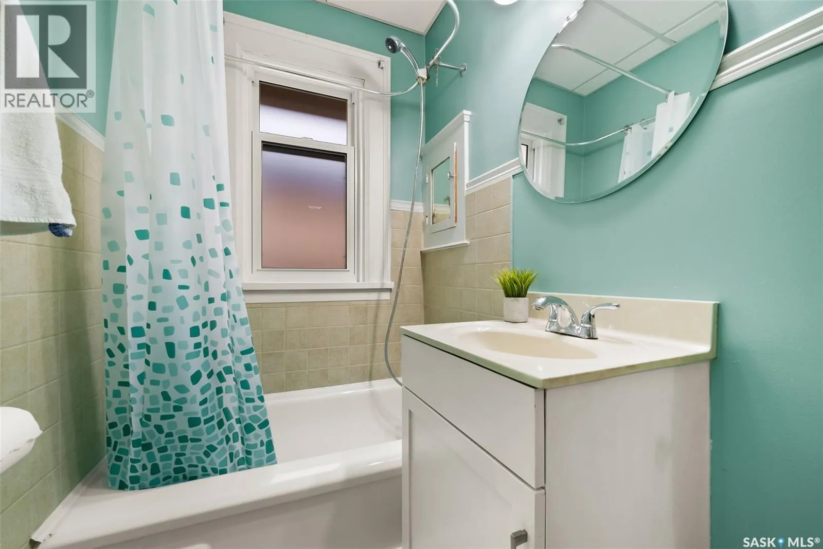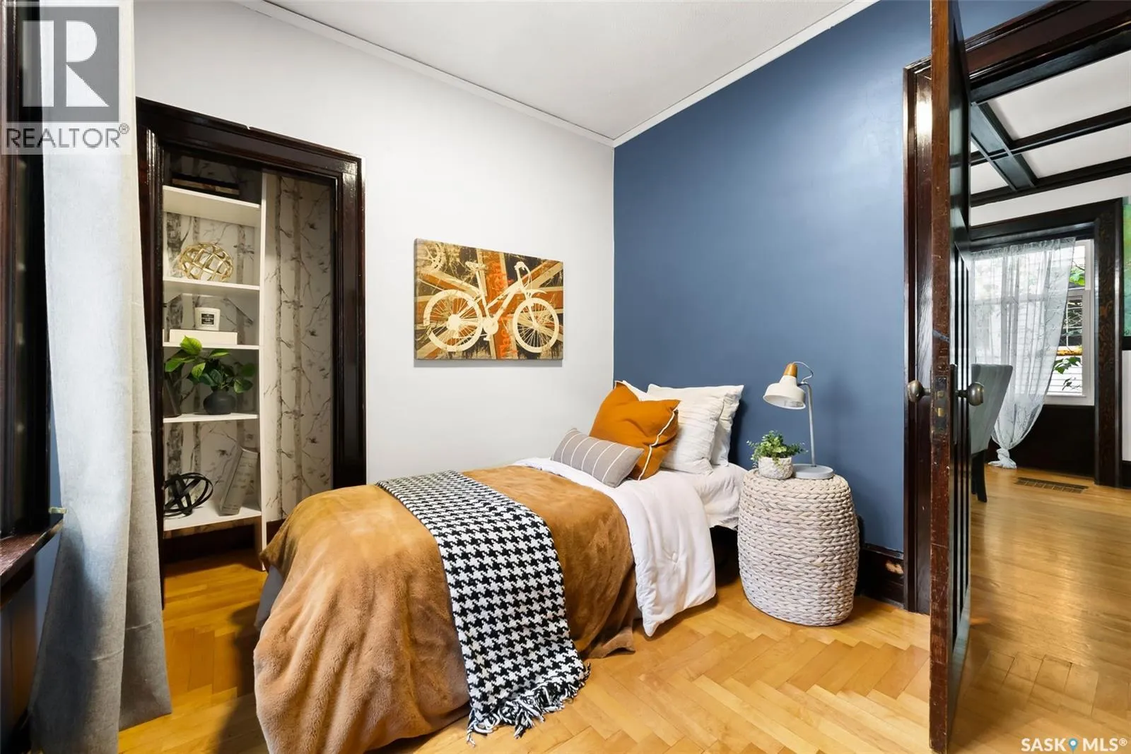 Welcome to 2054 Pasqua Street, a charming 1 ½ storey home located in the heart of Cathedral. This 887 sq ft character home, built in 1922, offers a perfect blend of original charm and modern updates. Step inside to a bright and spacious living room featuring refinished original hardwood floors, beautiful woodwork, a new glass window in the original frame, and a striking antique (non-functional) fireplace with built-in bookshelves. The formal dining room boasts a trayed ceiling and a cozy bay window. The updated kitchen offers maple cabinetry, while the main floor 4-piece bathroom features newer fixtures, a modern vanity, and ceramic tile. Two good-sized bedrooms complete the main floor, one currently used as a home office. Upstairs, youâll find a private master retreat with bamboo flooring, newer windows, spray foam insulation, and a 3-piece ensuite bathroom. The finished basement offers a comfortable family room, cold storage, and a high-efficiency furnace. Enjoy the private backyard oasis with a fire pit area, pergola included, and a new deck built in 2022, perfect for relaxing or entertaining. A single detached garage (used as a shed) plus additional parking complete the exterior. Major upgrades include new shingles in 2024, PVC windows in 2022, new back door in 2020, front step in 2022, refinished hardwoods in 2019, new basement flooring, and updated wiring. Located steps from parks, schools, and Cathedralâs unique shops and restaurants, this home is move-in ready and full of character. (id:27476)