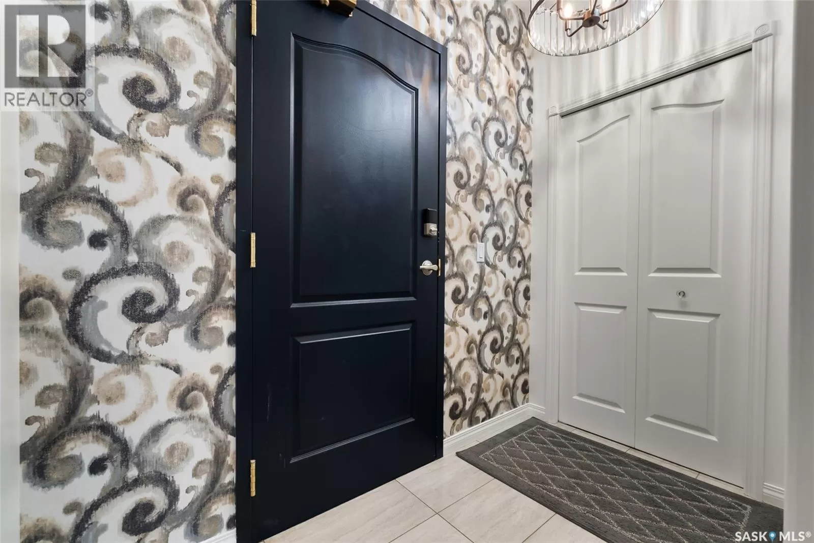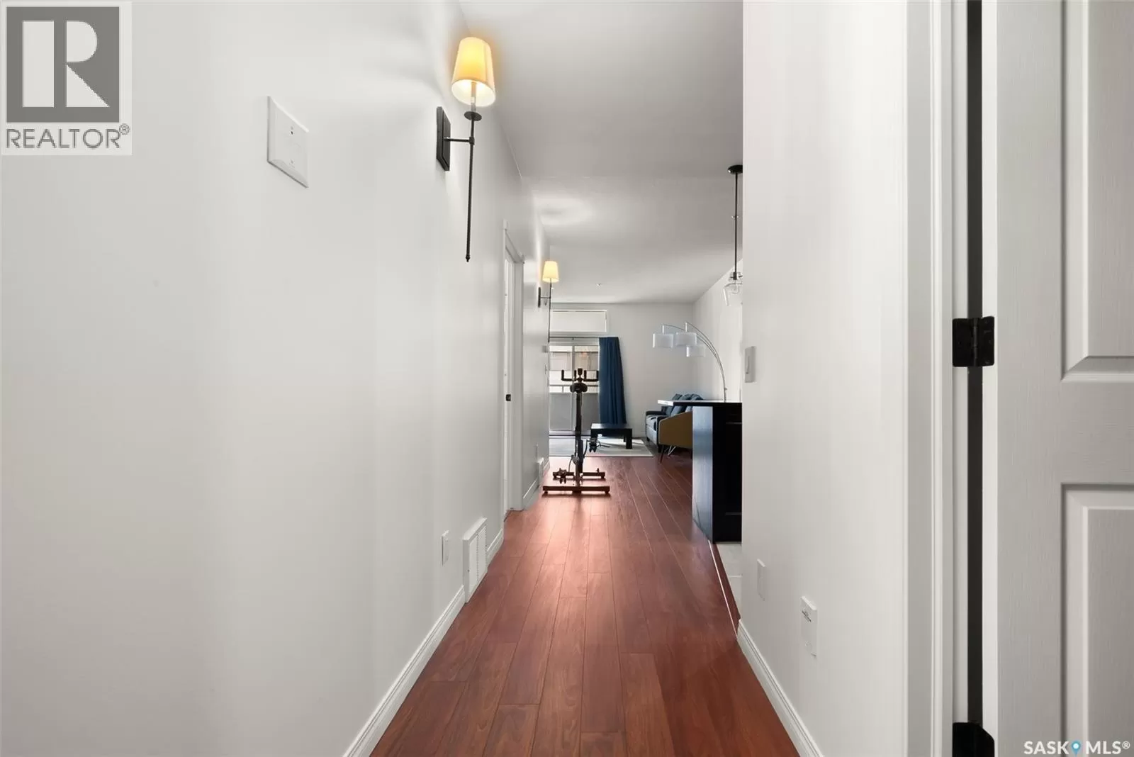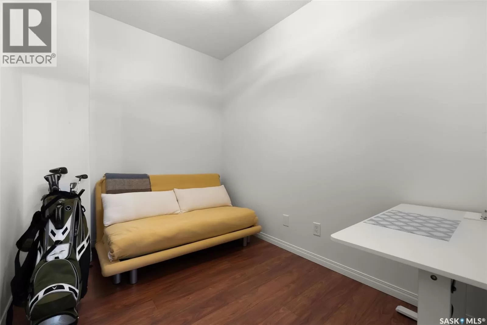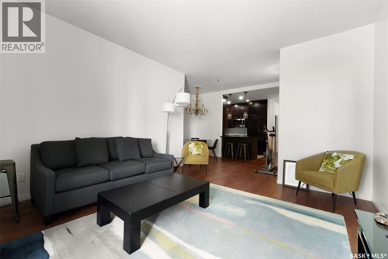 Welcome to the 7th floor of Victoria Place â where refined luxury meets the convenience of downtown Regina. This impeccably designed residence offers the ultimate urban lifestyle, just steps from some of the cityâs finest dining, shopping, and entertainment options. From the moment you enter, you'll be captivated by the high-end finishes and thoughtfully curated details throughout. Soaring 10-foot ceilings and a fresh, modern palette set the tone, complemented by elegant tile and laminate flooring that seamlessly unify the space. The show stopping kitchen, featuring quartz countertops, full-height custom cabinetry, integrated appliances, under cabinet lighting and a distinctive raw-edge sink â combines form and function with striking visual appeal. The spacious open-concept living and dining area is bathed in natural light from the east-facing balcony doors, creating a warm and inviting ambiance. Step outside to enjoy your private balcony â the perfect spot for a morning espresso or an evening escape. Retreat to the beautifully appointed bedroom, featuring an artistic accent wall that adds personality and charm to the serene space. The den provides office space, or whatever your needs require, for flexible versatility. The stylish 4-piece bathroom offers bright, modern tiling and ample storage, while in-suite laundry and a private balcony storage room enhance daily convenience. Constructed with solid concrete, the building ensures exceptional soundproofing and long-lasting quality â providing peace, privacy, and a true sense of sanctuary in the heart of the city. Donât miss this rare opportunity to own a piece of luxury in one of Reginaâs most iconic downtown addresses. Urban sophistication awaits. (id:27476)
