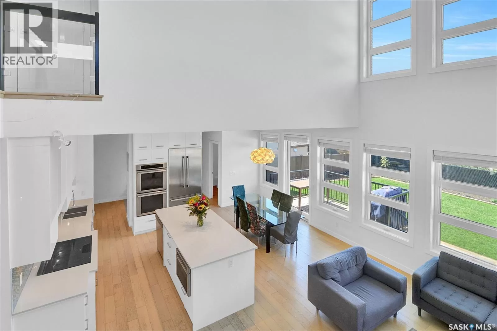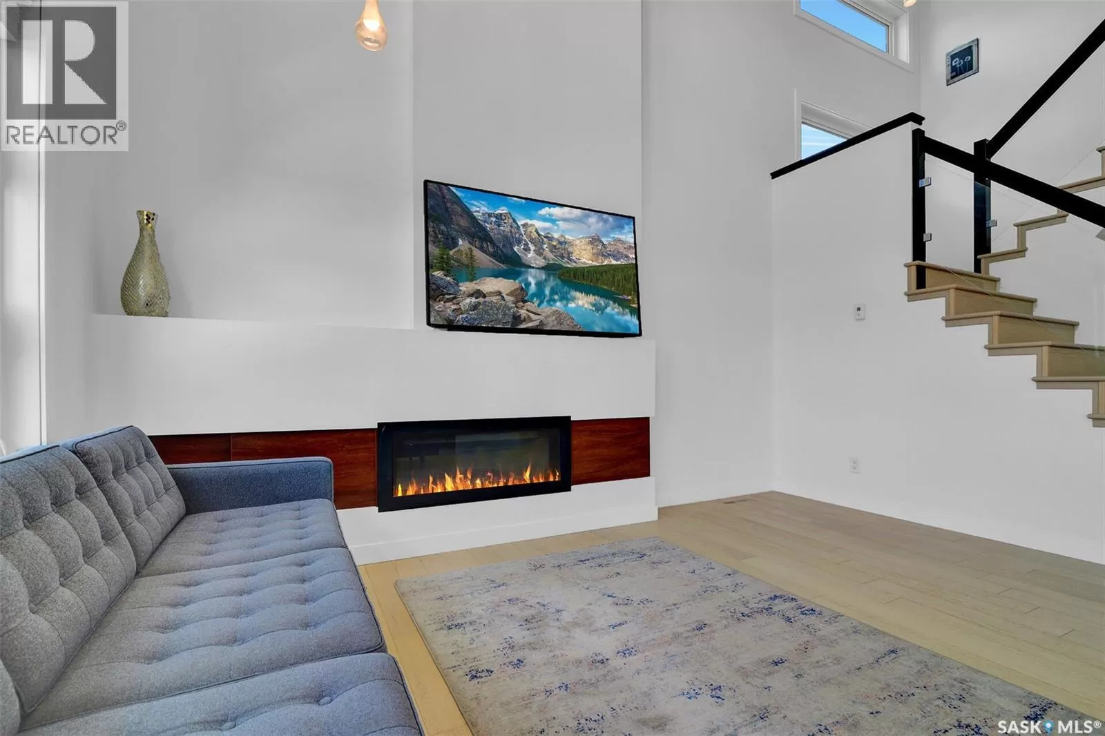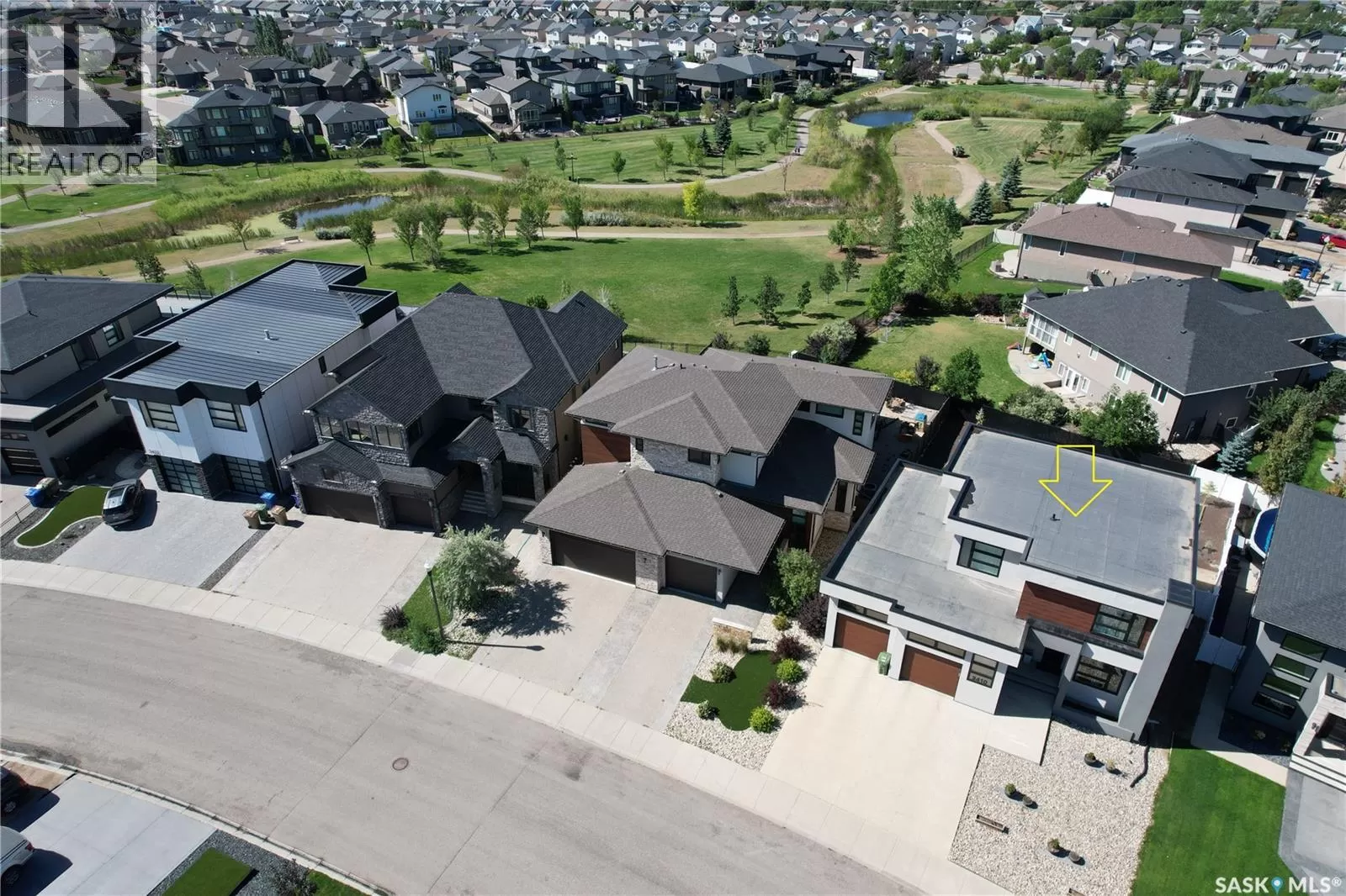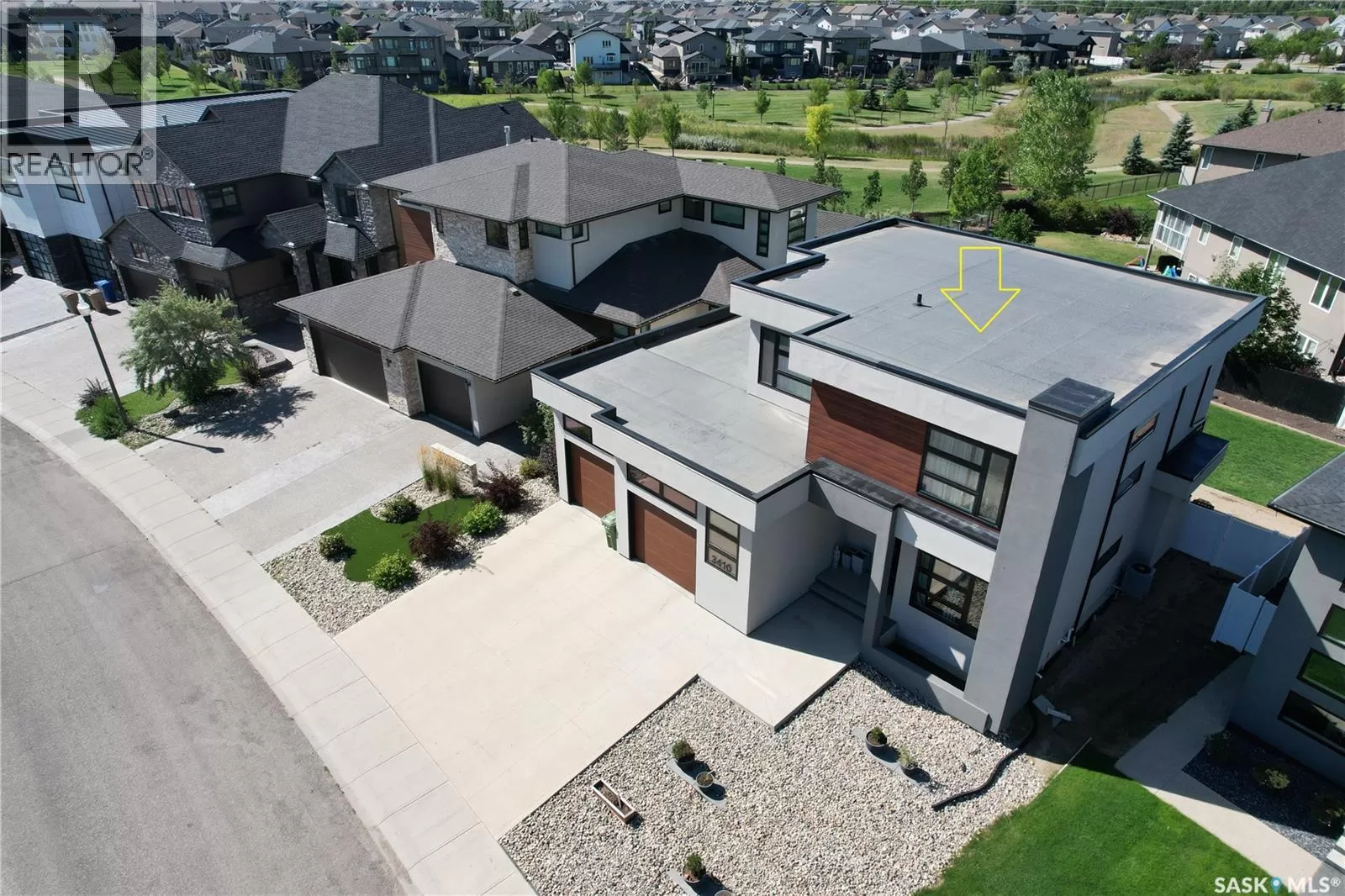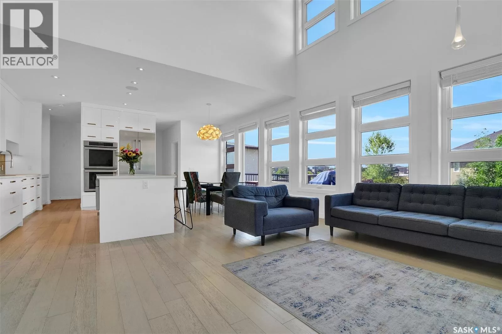 Custom built, steps away to the green space/park, 20âceilling in living room. Gorgeous 1937 sqft two storey home with 4bedrooms and 4bathrooms located in the desirable neighbourhood Greens on Gardiner. Open concept main floor with hardwood flooring throughout, spacious foyer with nice tile flooring, living room features 20â ceiling with abundance windows give lots of natural light, gas fireplace. Kitchen offering beautiful granite countertops, tile back splash, a large eat-in island and abundance white modern cabinets give lots of storage space, high end stainless steel appliances by Thermadore, imported from Germany. A good sized of dinning room with garden doors lead to 2 tiered deck with natural gas BBQ hook up, beautiful yard is landscaped and fenced. Thereâs an office /den and 2pc bath to finish the main floor. The upper floor boasts 2bedrooms and 2 full baths, the larger master bedroom features a huge walk-in closet, gas fireplace, bar fridge, 5pc ensuite with heated tile flooring. The basement is fully developed with 2 additional bedrooms, a large rec com, a bar area and another 3pc bath. The triple attached garage is heated, insulted and drywalled. The back yard could also accommodate a pool you desire. One more bedroom can be added on the 2nd floor, See the last two photos for the illustration of the placement of the bedroom and the access to it. (id:27476)