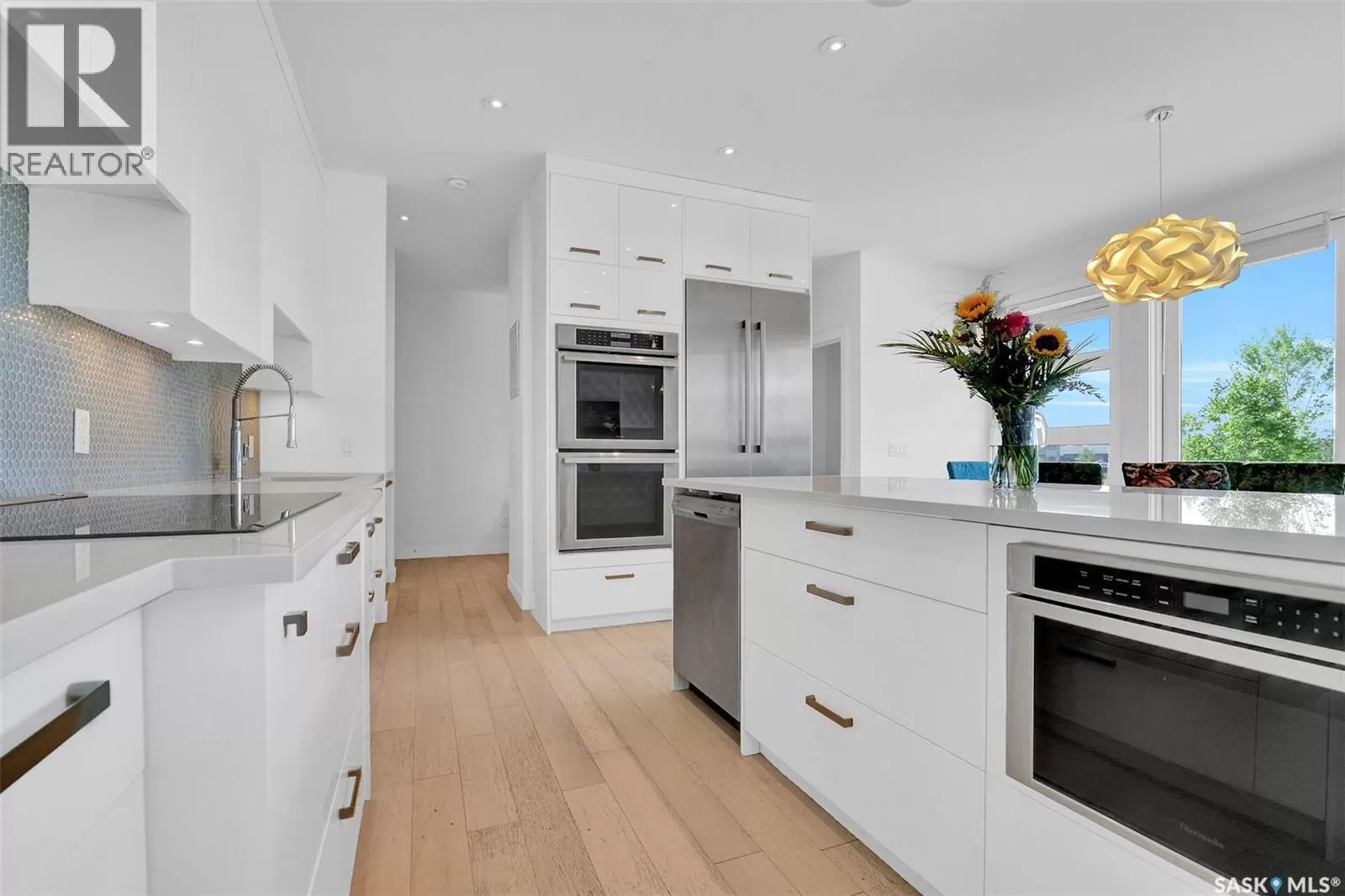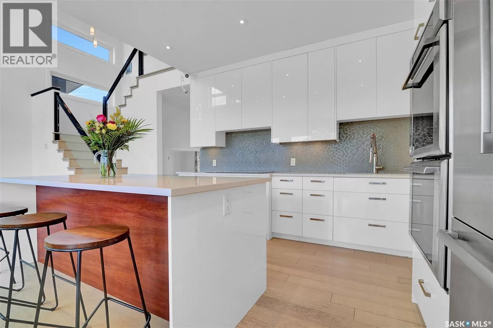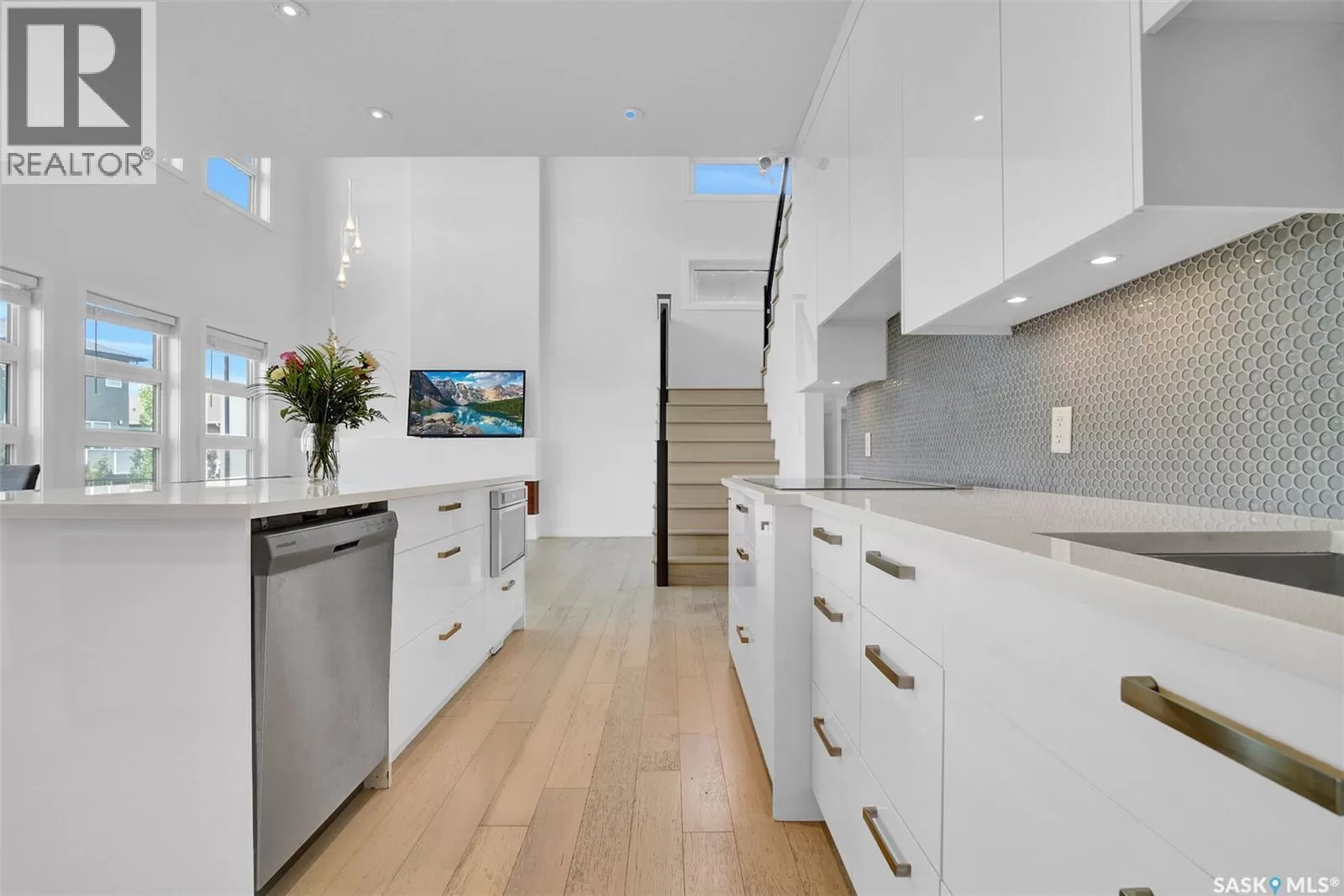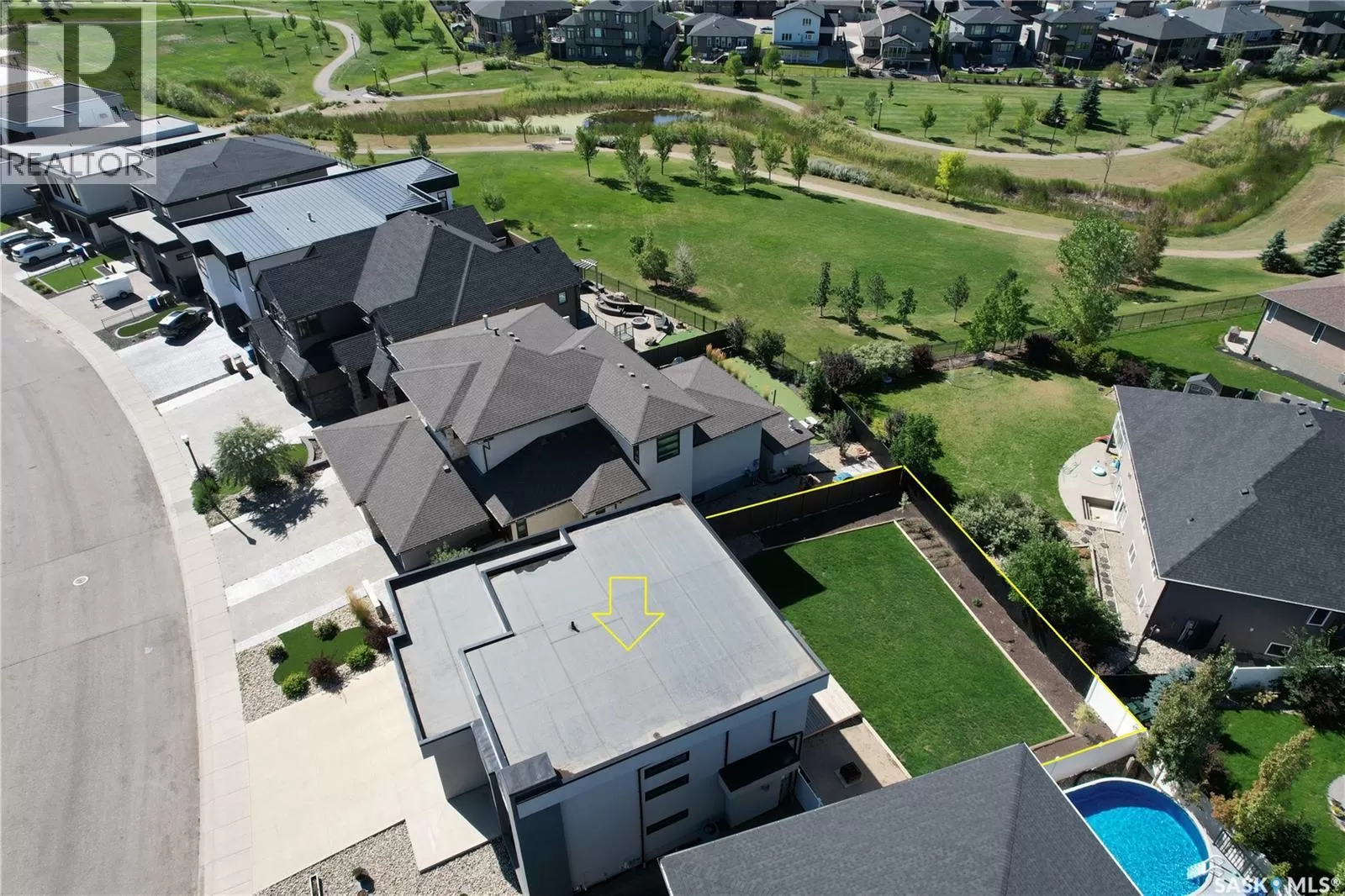 Custom built, steps away to the green space/park, 20âceilling in living room. Gorgeous 1937 sqft two storey home with 4bedrooms and 4bathrooms located in the desirable neighbourhood Greens on Gardiner. Open concept main floor with hardwood flooring throughout, spacious foyer with nice tile flooring, living room features 20â ceiling with abundance windows give lots of natural light, gas fireplace. Kitchen offering beautiful granite countertops, tile back splash, a large eat-in island and abundance white modern cabinets give lots of storage space, high end stainless steel appliances by Thermadore, imported from Germany. A good sized of dinning room with garden doors lead to 2 tiered deck with natural gas BBQ hook up, beautiful yard is landscaped and fenced. Thereâs an office /den and 2pc bath to finish the main floor. The upper floor boasts 2bedrooms and 2 full baths, the larger master bedroom features a huge walk-in closet, gas fireplace, bar fridge, 5pc ensuite with heated tile flooring. The basement is fully developed with 2 additional bedrooms, a large rec com, a bar area and another 3pc bath. The triple attached garage is heated, insulted and drywalled. The back yard could also accommodate a pool you desire. One more bedroom can be added on the 2nd floor, See the last two photos for the illustration of the placement of the bedroom and the access to it. (id:27476)