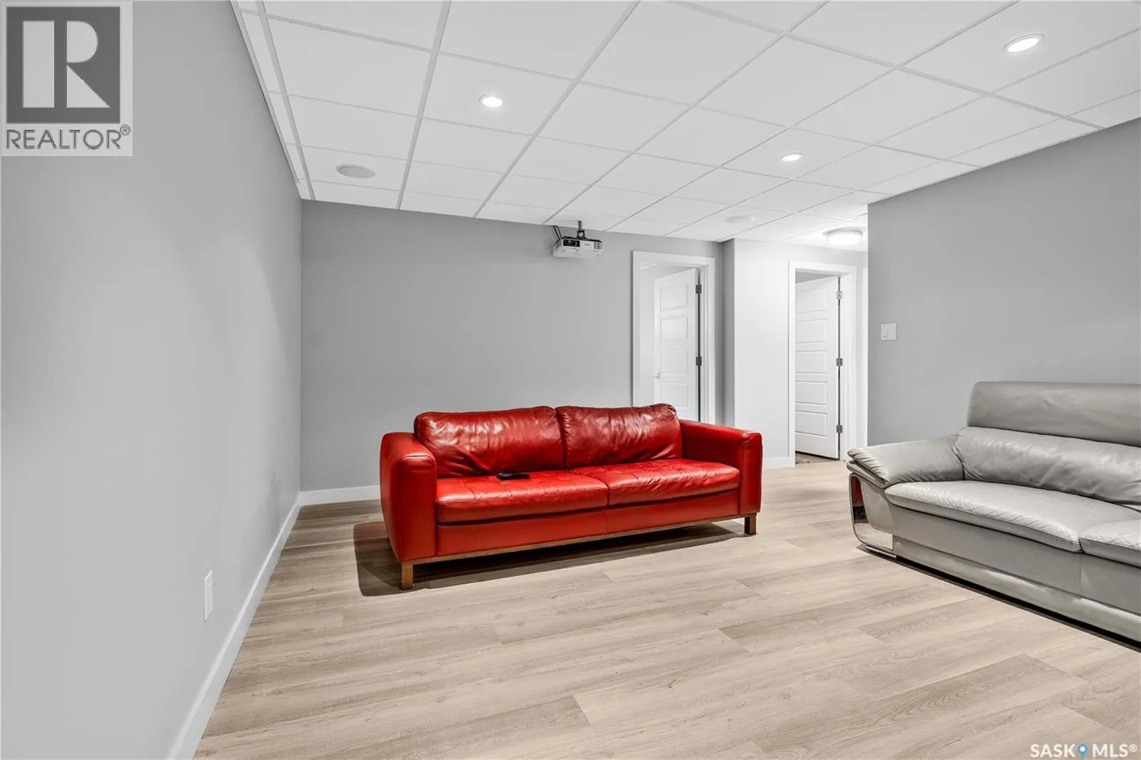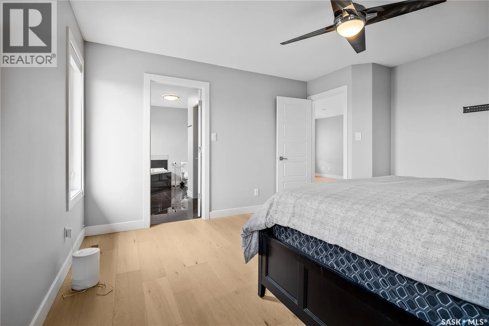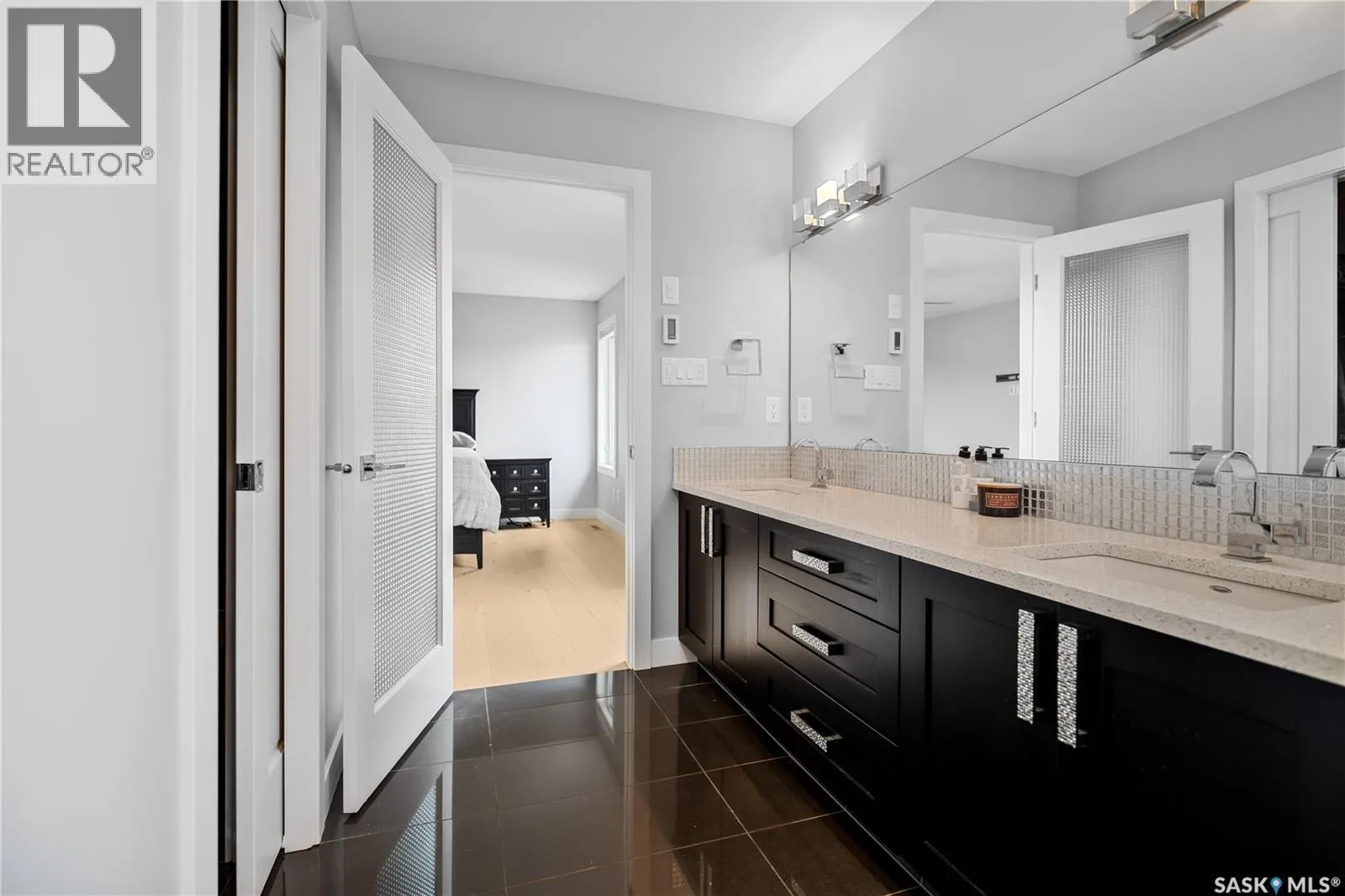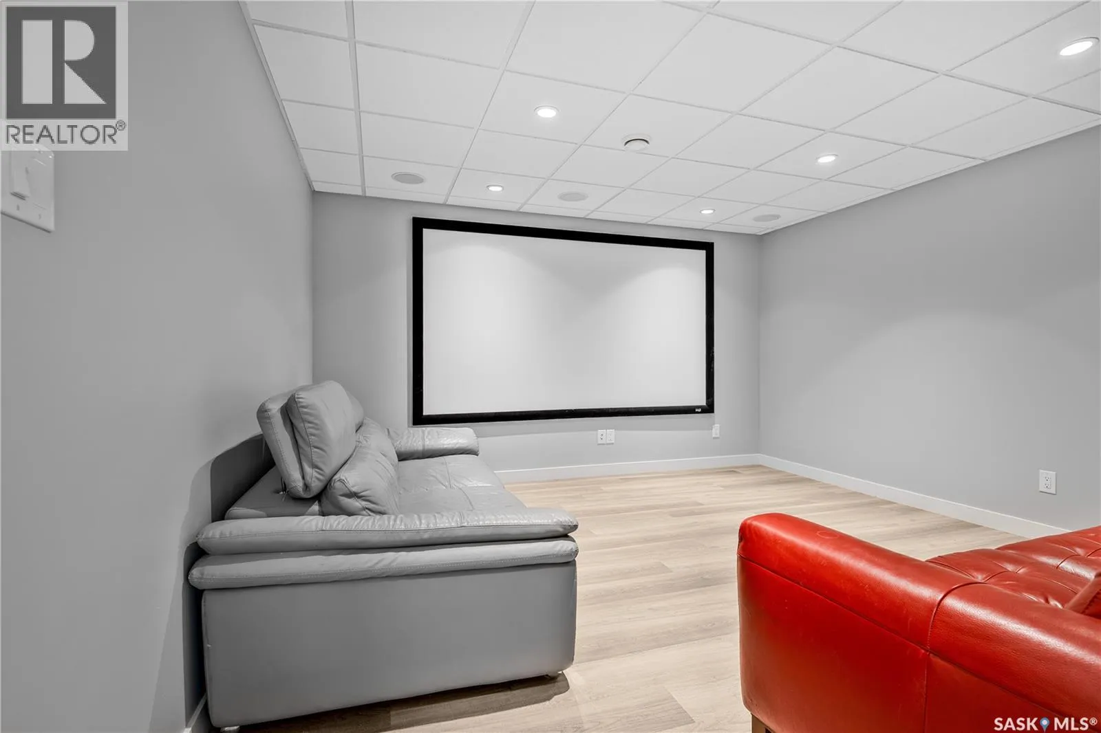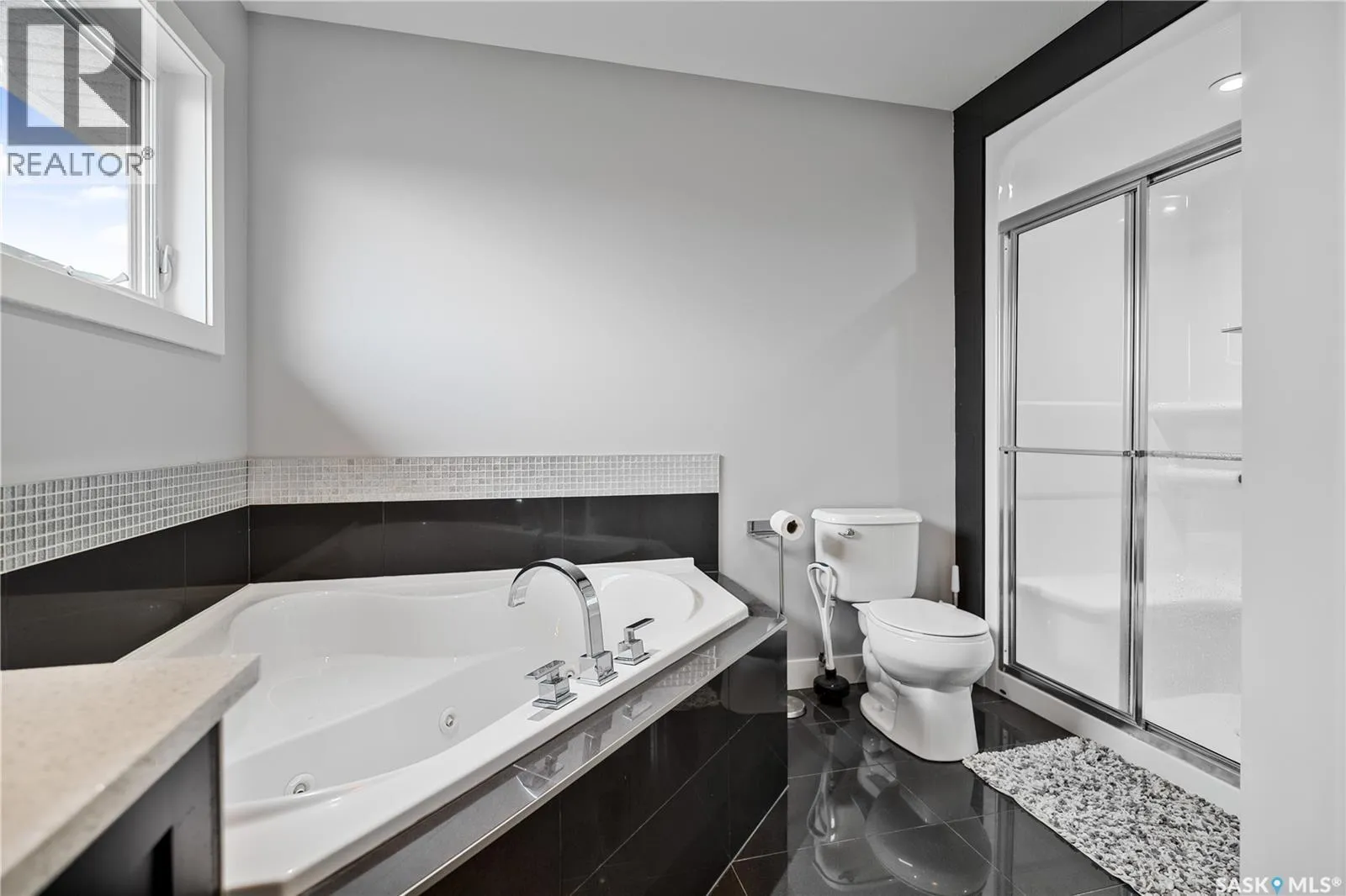 Built by Kratz, the recently updated 5-bedroom, 3.5-bathroom home in the Creeks combines modern finishes with everyday comfort(no carpet throughout). The spacious foyer opens to an inviting main floor with 9â ceilings and engineered hardwood flooring with a gas fireplace. The kitchen features dark maple cabinetry with soft-close drawers, quartz countertops, a granite sink, a glass backsplash, stainless steel appliances, and direct garage-to-pantry access for easy unloading groceries. Tiled bathrooms and laundry complete this main space. The bright and spacious living area flows into a 25 by 14 oversized deck, featuring a glass railing & built-in garden/flower boxes (as is a condition). This space is perfect for entertaining, with professionally installed in-ceiling speakers in the main living area and on the deck. The fence is TREX/PVC, which is low-maintenance & long-lasting, a landscaped yard with vibrant perennials, and a garden shed complete the outdoor area. The open glass and engineered wood staircase leads to a large bonus room on the second floor. The bonus room is pre-wired for surround speakers(speakers not included). The bonus room is ideal for an office, media, or family space. The luxurious primary suite offers a walk-in closet and spa-style ensuite with heated flooring, dual sinks, a jetted tub, and an oversized shower. There are two more spacious bedrooms and a full bath to complete this level. The builder-developed basement boasts a spacious Theatre rec room with a built-in projector screen ideal for family movie nights or entertaining guests, 2 additional bedrooms, a walk-in/ storage, and a ¾ bath completes the basement. The partially heated triple-garage with one one-bay partition wall has a rear overhead door to the yard; this can serve as a good space for a home business. Additional features include Central air conditioning, a central vacuum, motion light sensors & dimmers. Book your view with your agent. As per the Sellerâs direction, all offers will be presented on 09/23/2025 3:00PM. (id:27476)