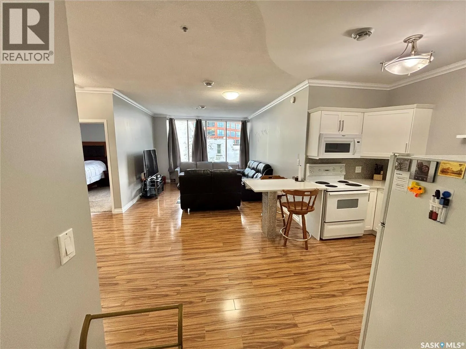 Welcome to unit #503 at The Hamilton! This beautifully updated 2 bed 2 bath condo is a fantastic opportunity for someone looking to live close to the action. Walking distance to everything Reginaâs downtown has to offer, including plenty of restaurants, shopping, businesses, and office buildings. As you enter the unit, you are greeted by a bright, open concept kitchen and living room with huge windows providing tons of natural light throughout the condo! In-suite laundry along with 2 bedrooms, including a large primary bedroom with a walk-in closet, and a 4-piece ensuite cap off this fantastic condo! Outside of your unit, youâll find a communal rooftop patio with hot tubs and gazebos, a large communal amenities room, gym facilities, and heated parkade parking! All part of what makes this condo such a great opportunity to call home! Call to book your private showing today! (id:27476)