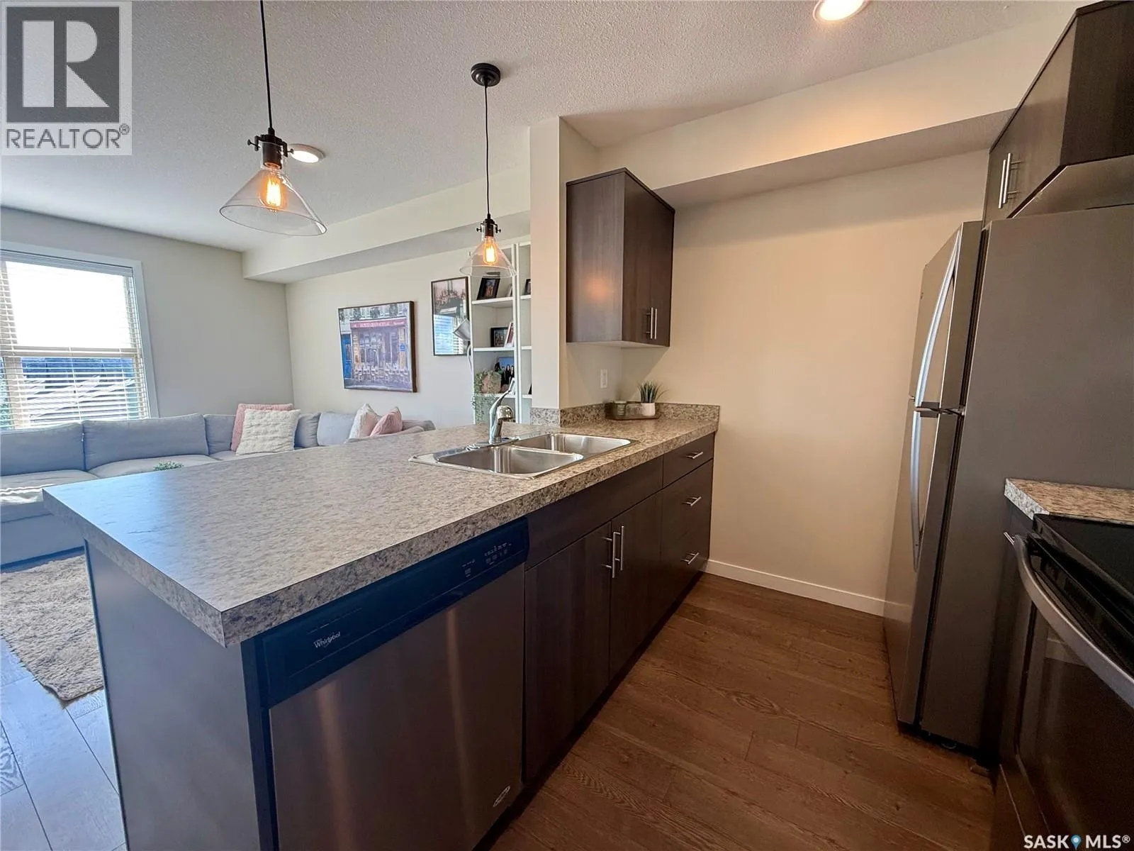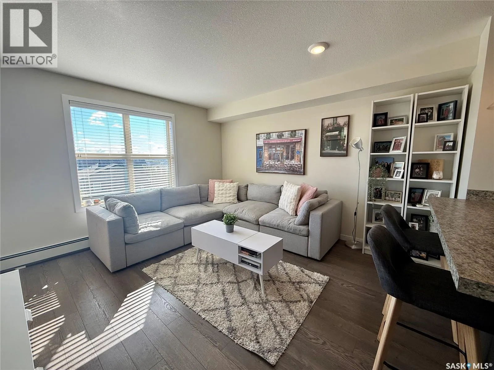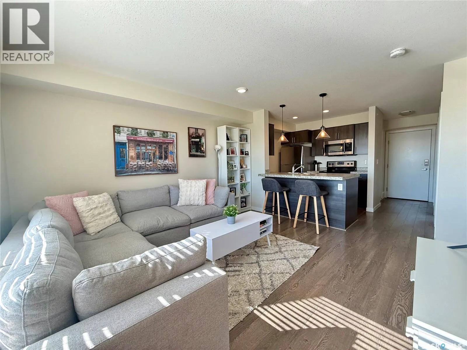 Welcome to this charming 1 bedroom 1 bath condo with versatile den â perfect for a home office, gym, playroom, or extra storage. Beautifully maintained, this modern and inviting home offers everything you need and more. There is a fully equipped kitchen with stove, fridge, built-in dishwasher, and microwave for added convenience. The living room has big bright windows, with direct access to your private balcony â ideal for enjoying the outdoors anytime. The spacious bedroom has lots of closet space, while the in-suite laundry adds everyday ease to your routine. The home also includes a designated parking stall located conveniently by the main front doors. Residents of this well kept complex enjoy access to a community BBQ hut, dog wash station in the parkade, and many visitor parking stalls. Situated in the highly sought after neighbourhood of Harbour Landing, youâre just minutes from shopping, dining, parks, and all essential amenities. This is a fantastic condo youâll want to see and maybe itâll be a place to call home! (id:27476)