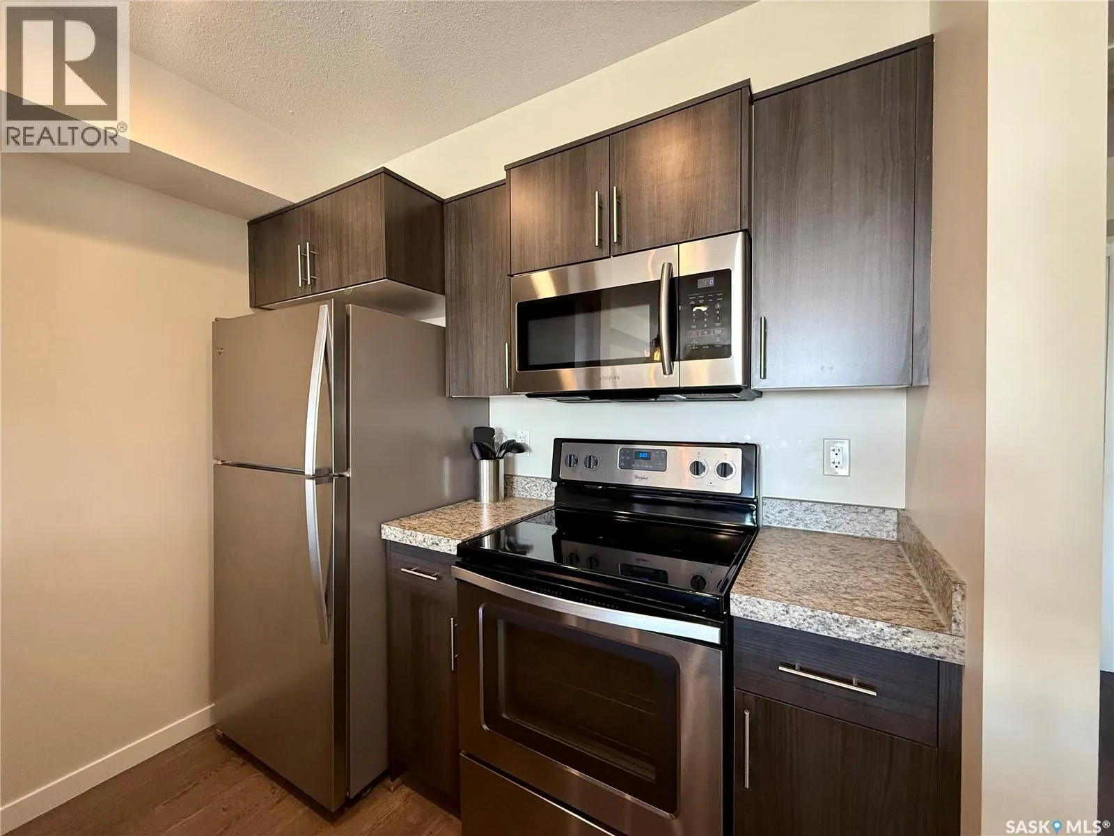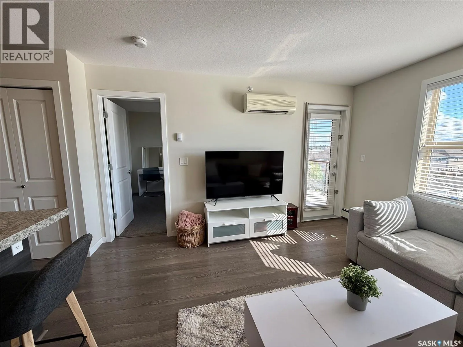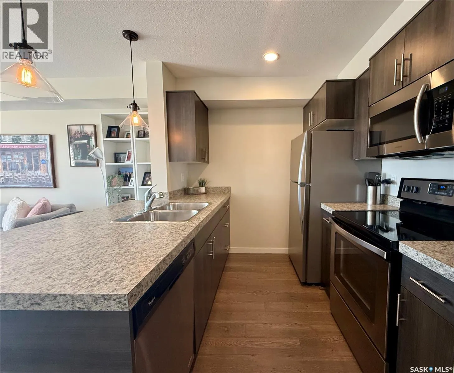 Welcome to this charming 1 bedroom 1 bath condo with versatile den â perfect for a home office, gym, playroom, or extra storage. Beautifully maintained, this modern and inviting home offers everything you need and more. There is a fully equipped kitchen with stove, fridge, built-in dishwasher, and microwave for added convenience. The living room has big bright windows, with direct access to your private balcony â ideal for enjoying the outdoors anytime. The spacious bedroom has lots of closet space, while the in-suite laundry adds everyday ease to your routine. The home also includes a designated parking stall located conveniently by the main front doors. Residents of this well kept complex enjoy access to a community BBQ hut, dog wash station in the parkade, and many visitor parking stalls. Situated in the highly sought after neighbourhood of Harbour Landing, youâre just minutes from shopping, dining, parks, and all essential amenities. This is a fantastic condo youâll want to see and maybe itâll be a place to call home! (id:27476)