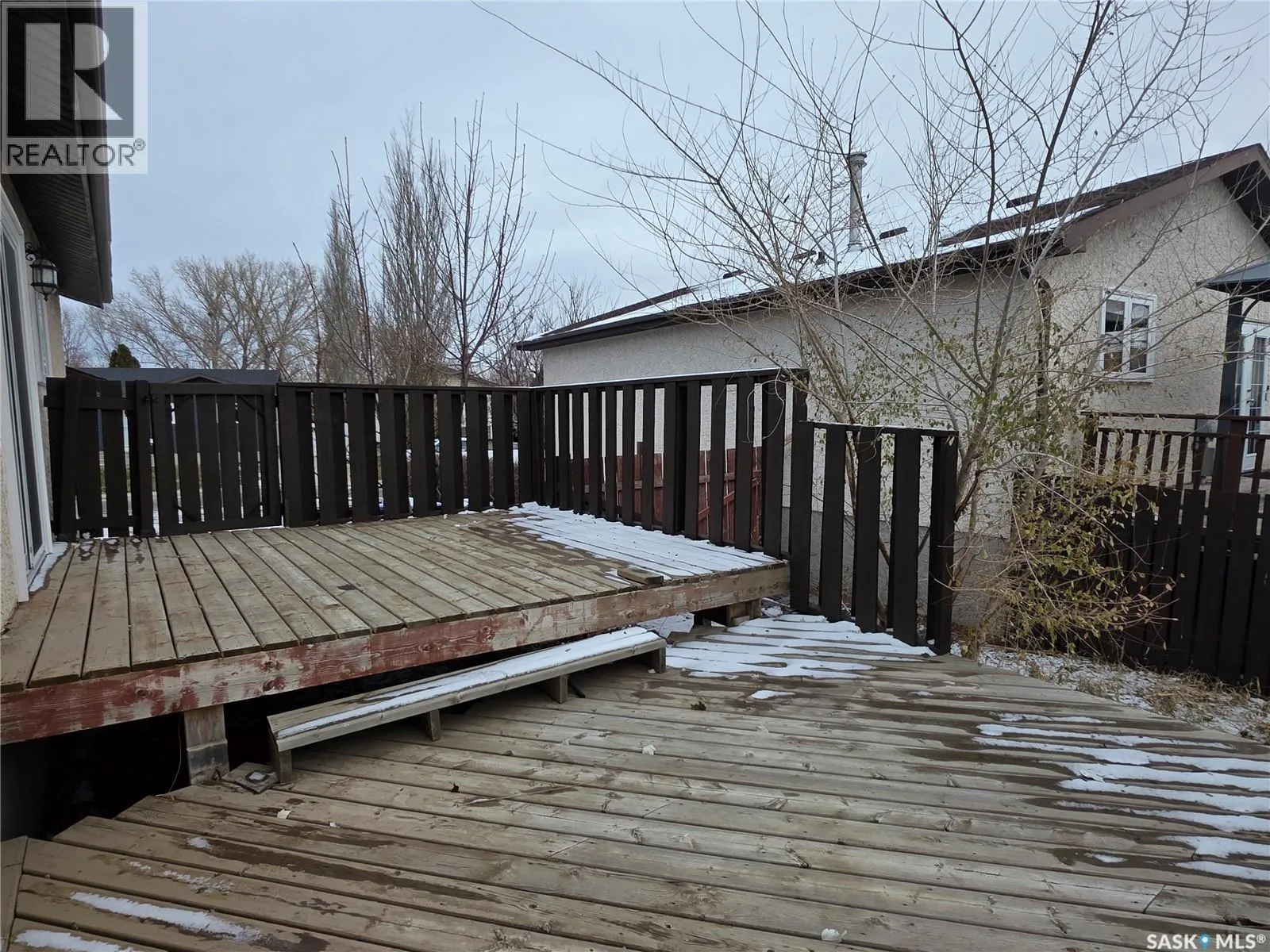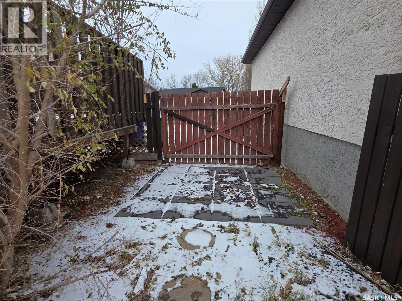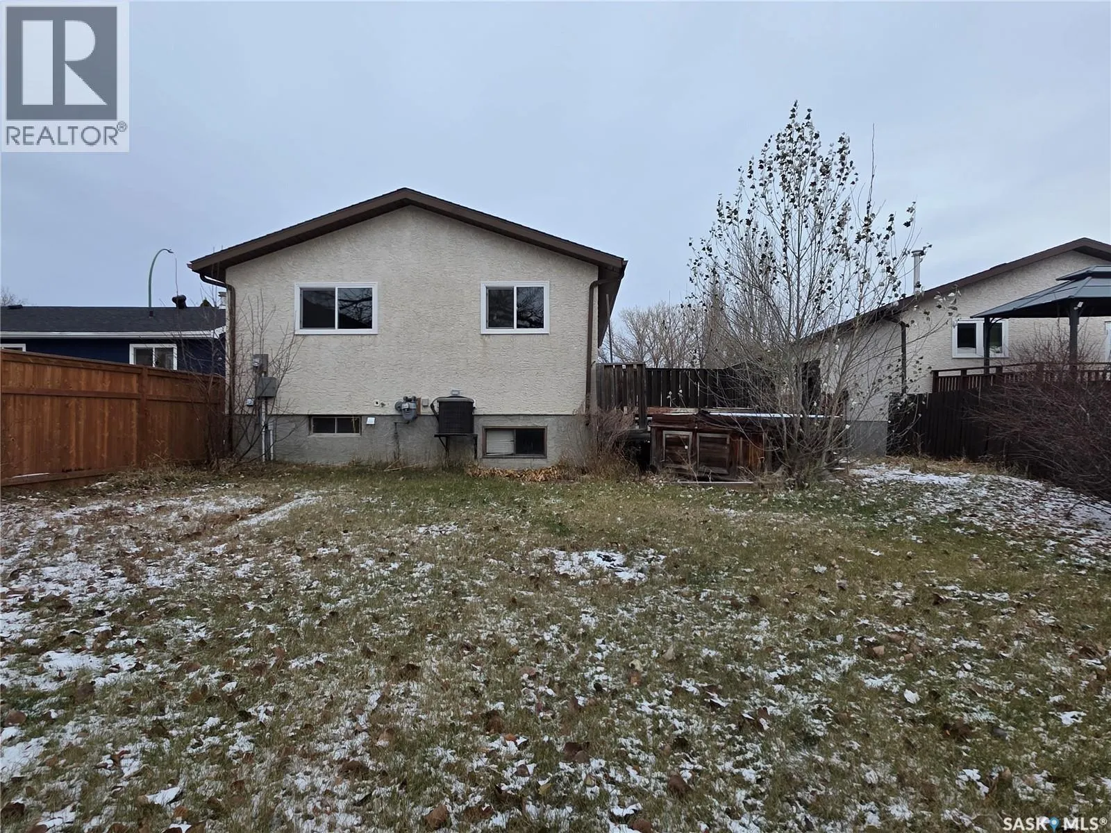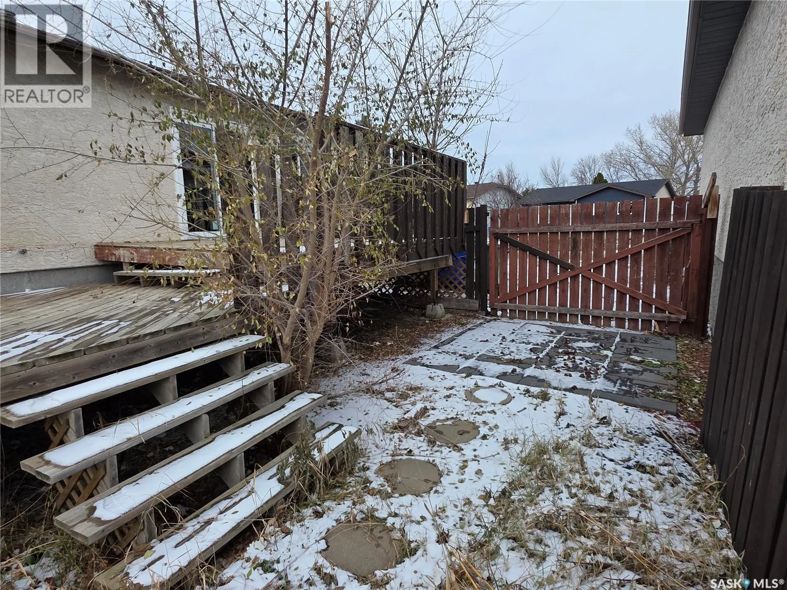 Starter home with major glow-up potentialâyour Pinterest board called, time to bring your ideas to life! This 2 bedroom, 1 bathroom bi-level offers 899 sqft of potential and is ready for a new family to make it their own. With a little paint, new flooring, and your personal touch, this house can easily become your home. The bright front-facing living room is filled with natural light and flows into the kitchen and eat-in dining space. Patio doors lead to a double-tiered side deckâperfect for BBQ nights and watching the kids play. The kitchen comes complete with fridge, stove, and dishwasher. Two bedrooms and a full bath finish off the main floor. The basement is already framed for a future rec room, den, bathroom, and utility/laundry area, giving you a head start on creating extra living space. Practical updates include newer shingles, updated windows on the main level, and central A/C for summer comfort. Step outside to a fully fenced backyard where kids and pets can play safely, plus enjoy cherry and plum trees right in your own yard! A front gravel driveway provides plenty of off-street parking for you and your guests. All of this is located in the family-friendly neighborhood of Rochdale Park in NW Regina, walking distance to the NW Leisure Centre, Doug Wickenheiser Arena, parks, and tons of nearby amenities. (id:27476)