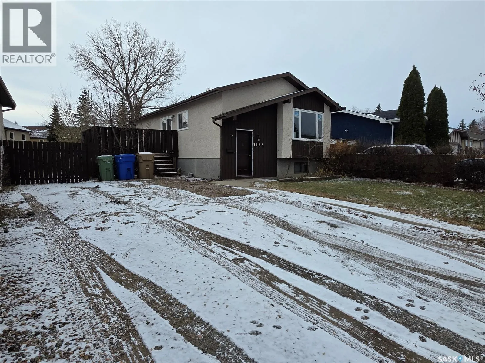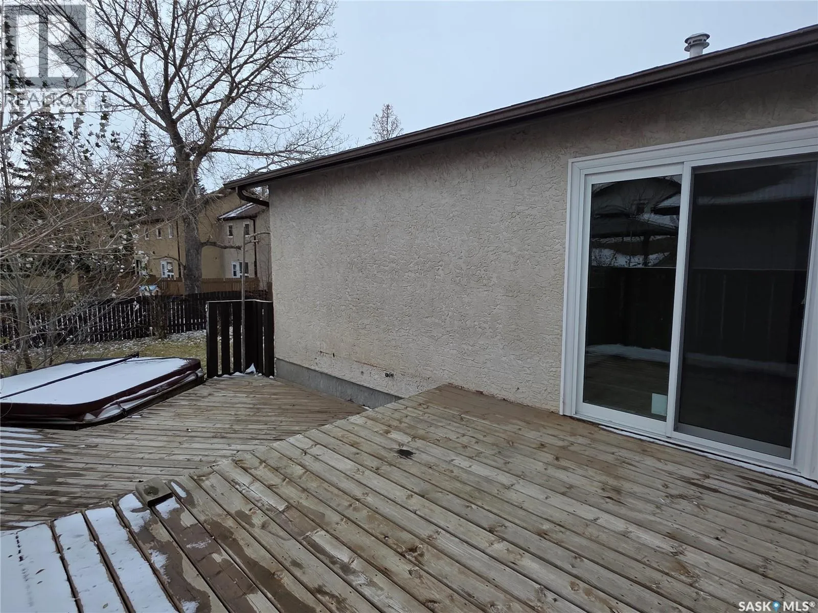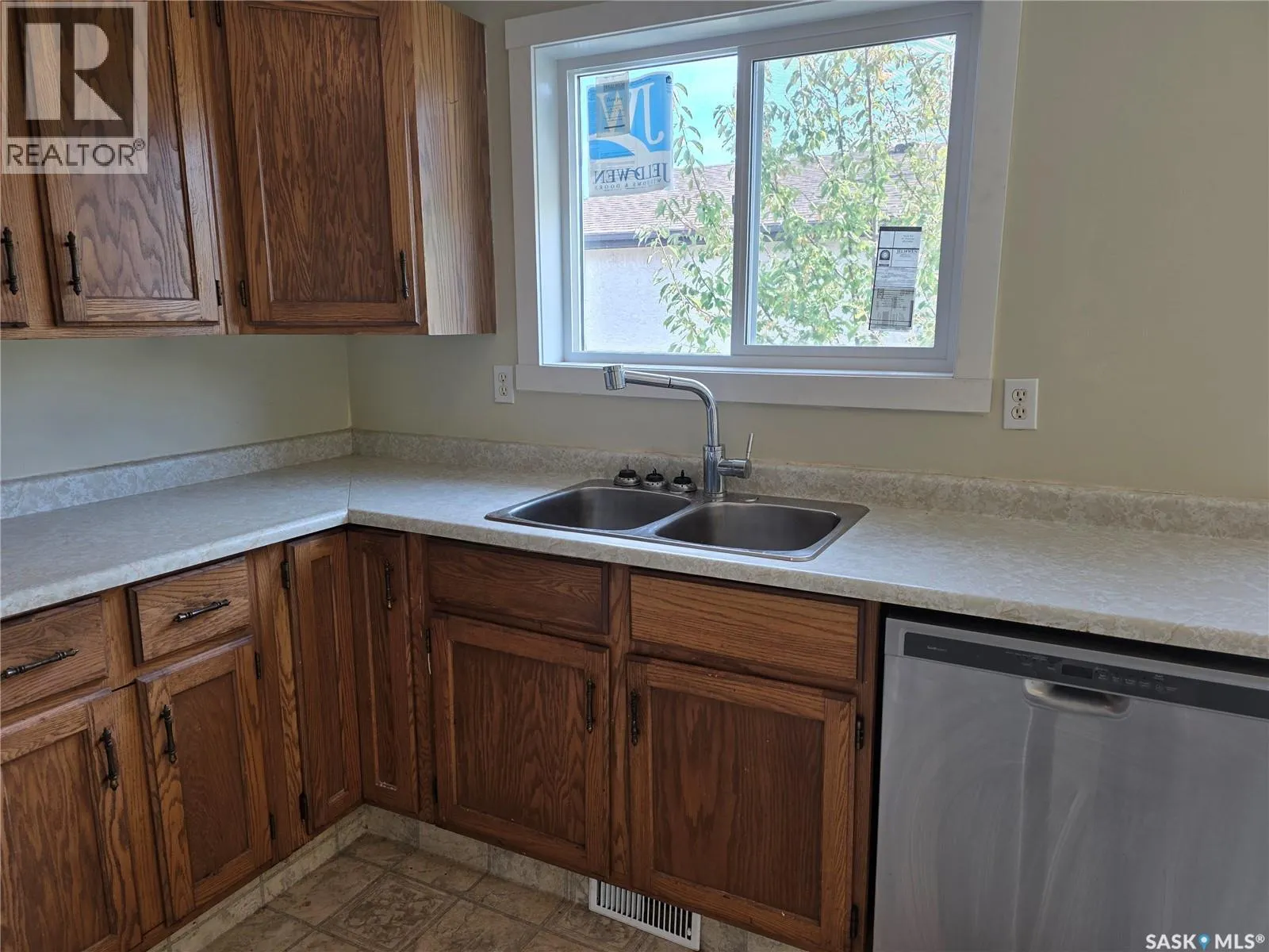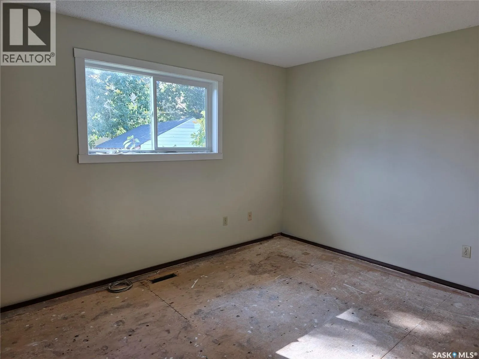 Starter home with major glow-up potentialâyour Pinterest board called, time to bring your ideas to life! This 2 bedroom, 1 bathroom bi-level offers 899 sqft of potential and is ready for a new family to make it their own. With a little paint, new flooring, and your personal touch, this house can easily become your home. The bright front-facing living room is filled with natural light and flows into the kitchen and eat-in dining space. Patio doors lead to a double-tiered side deckâperfect for BBQ nights and watching the kids play. The kitchen comes complete with fridge, stove, and dishwasher. Two bedrooms and a full bath finish off the main floor. The basement is already framed for a future rec room, den, bathroom, and utility/laundry area, giving you a head start on creating extra living space. Practical updates include newer shingles, updated windows on the main level, and central A/C for summer comfort. Step outside to a fully fenced backyard where kids and pets can play safely, plus enjoy cherry and plum trees right in your own yard! A front gravel driveway provides plenty of off-street parking for you and your guests. All of this is located in the family-friendly neighborhood of Rochdale Park in NW Regina, walking distance to the NW Leisure Centre, Doug Wickenheiser Arena, parks, and tons of nearby amenities. (id:27476)
