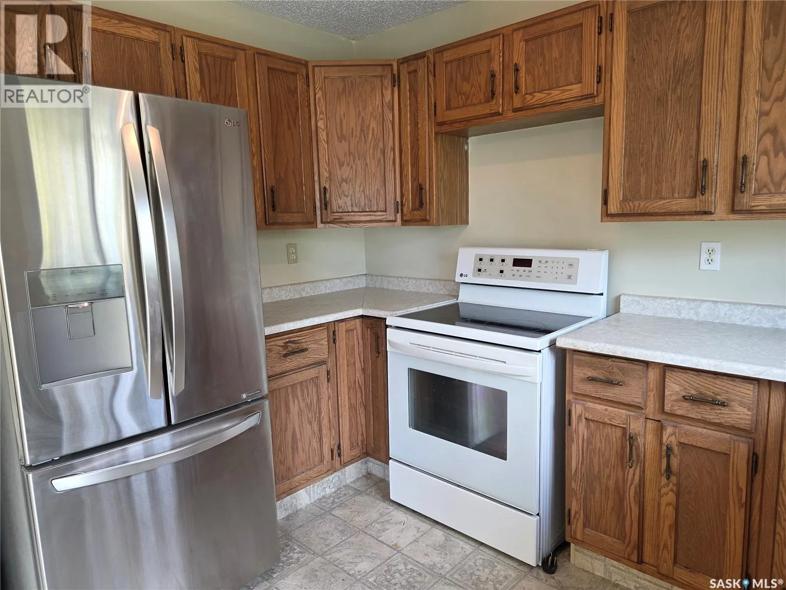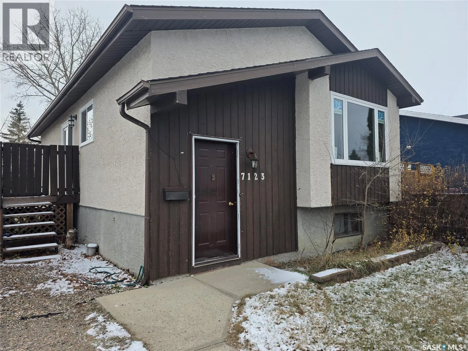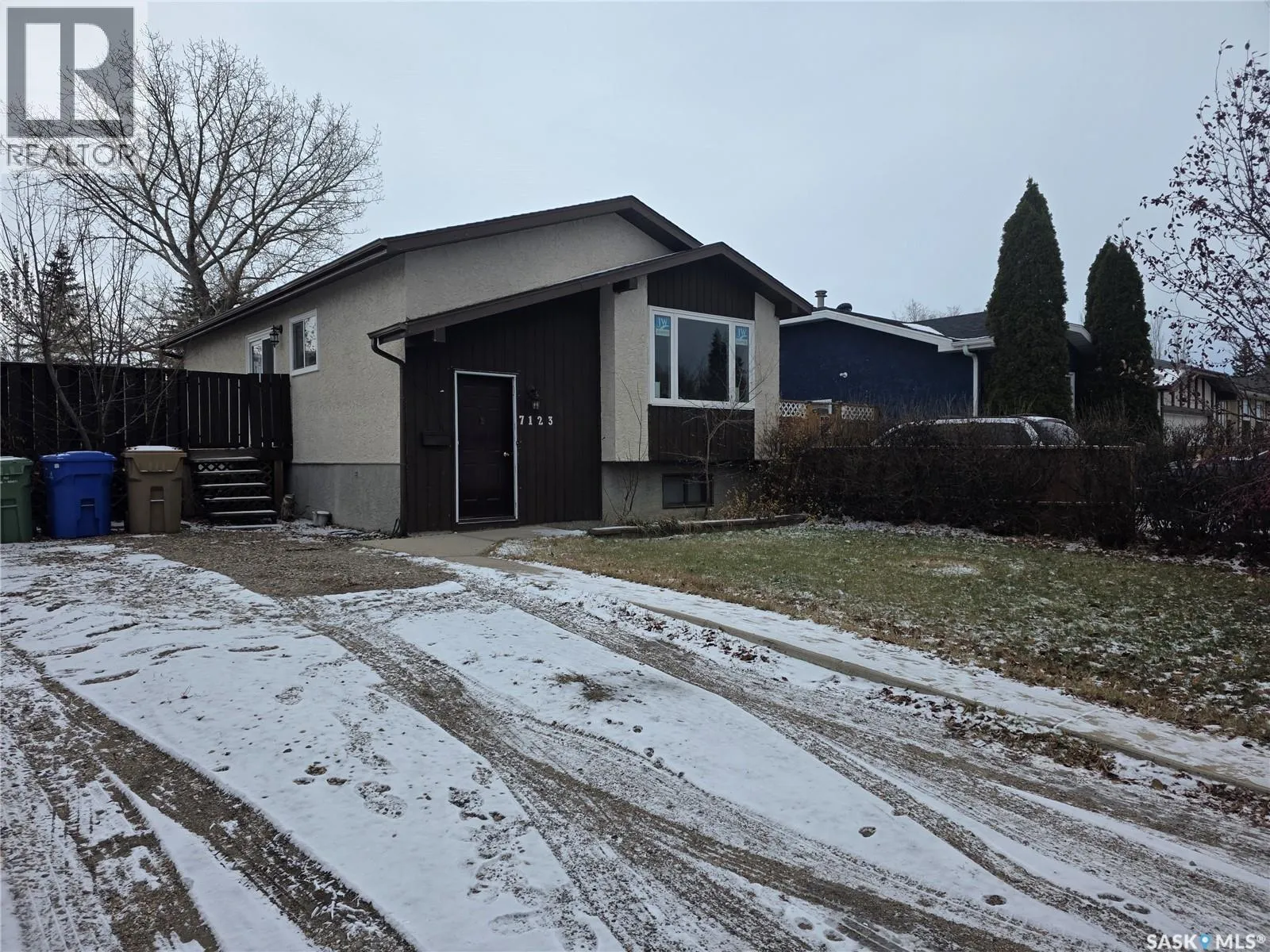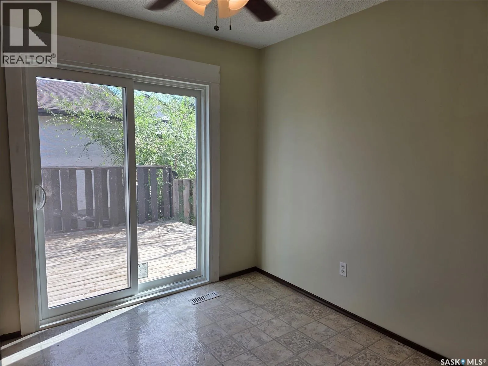 Starter home with major glow-up potentialâyour Pinterest board called, time to bring your ideas to life! This 2 bedroom, 1 bathroom bi-level offers 899 sqft of potential and is ready for a new family to make it their own. With a little paint, new flooring, and your personal touch, this house can easily become your home. The bright front-facing living room is filled with natural light and flows into the kitchen and eat-in dining space. Patio doors lead to a double-tiered side deckâperfect for BBQ nights and watching the kids play. The kitchen comes complete with fridge, stove, and dishwasher. Two bedrooms and a full bath finish off the main floor. The basement is already framed for a future rec room, den, bathroom, and utility/laundry area, giving you a head start on creating extra living space. Practical updates include newer shingles, updated windows on the main level, and central A/C for summer comfort. Step outside to a fully fenced backyard where kids and pets can play safely, plus enjoy cherry and plum trees right in your own yard! A front gravel driveway provides plenty of off-street parking for you and your guests. All of this is located in the family-friendly neighborhood of Rochdale Park in NW Regina, walking distance to the NW Leisure Centre, Doug Wickenheiser Arena, parks, and tons of nearby amenities. (id:27476)
