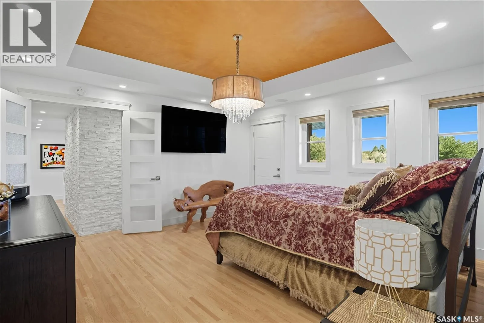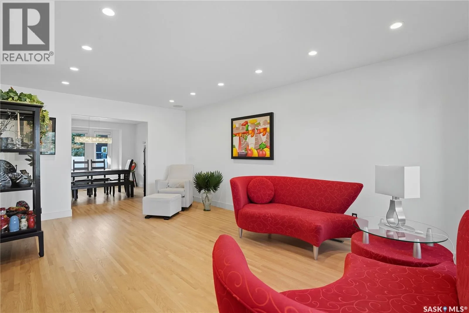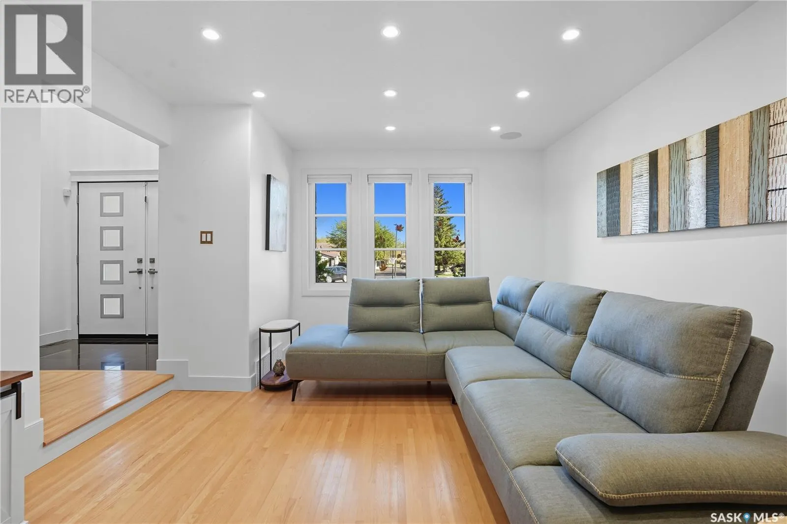 Welcome to 34 Leslie Place, a quiet bay in Reginaâs desirable Albert Park. This extensively renovated home blends elegance, comfort, and functionalityâready for immediate enjoyment. The grand entryway opens to a sunken living room with a 2-way gas fireplace and white quartz surround, a central wood-tile staircase, family room, and formal dining area overlooking the backyard. Custom hardwood floors flow throughout. The kitchen features warm wood cabinetry, granite countertops, tile flooring, double stainless sinks, a fireplace, and a cozy breakfast nook. A 2-piece bath and office/den with private entranceâcurrently a salonâcomplete the main floor. Upstairs, a bonus room overlooks a crystal chandelier and highlights custom woodwork, a gas fireplace, coffered ceiling, pot lights, and built-in sound. The luxurious 5-piece bath offers double sinks, glass block accents, and a seating area. The spacious primary suite includes two private balconies, dual closets (including built-in shoe storage), and a spa-like ensuite with soaker tub, walk-in shower, and water closet. Three additional bedrooms complete the upper level. The finished basement features a soundproof entertainment room, bedroom, 3-piece bath, and laundry with sink and cabinetry. Outside, enjoy a fully landscaped corner lot with stone/stucco exterior, wood accents, custom lighting, and double drive. The attached heated double garage features epoxy flooring, a custom aluminum and glass overhead door, and ample storage space. The PVC-fenced backyard includes a private, covered deck with lighting, and a stone patio. Value-added features: built on piles, exterior EIFS envelope, tile roofing system, natural gas BBQ hookup, central A/C, Control4 system, alarm, 200-amp panel, sewer backflow valve, HRV, hi-eff furnaces with humidifiers, and more. All drawings and improvement details available. A rare find in a prime locationâcall your agent today. (id:27476)