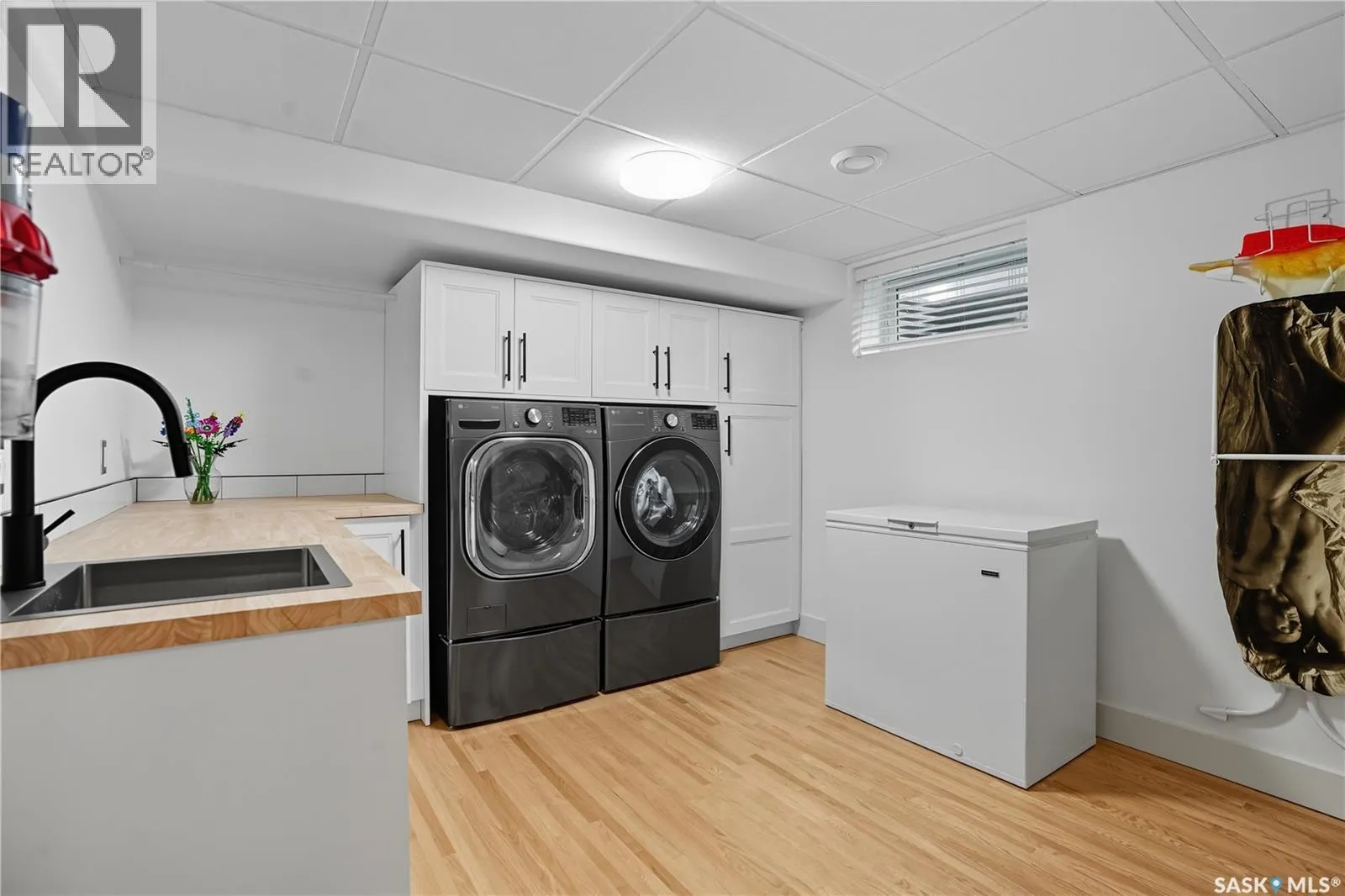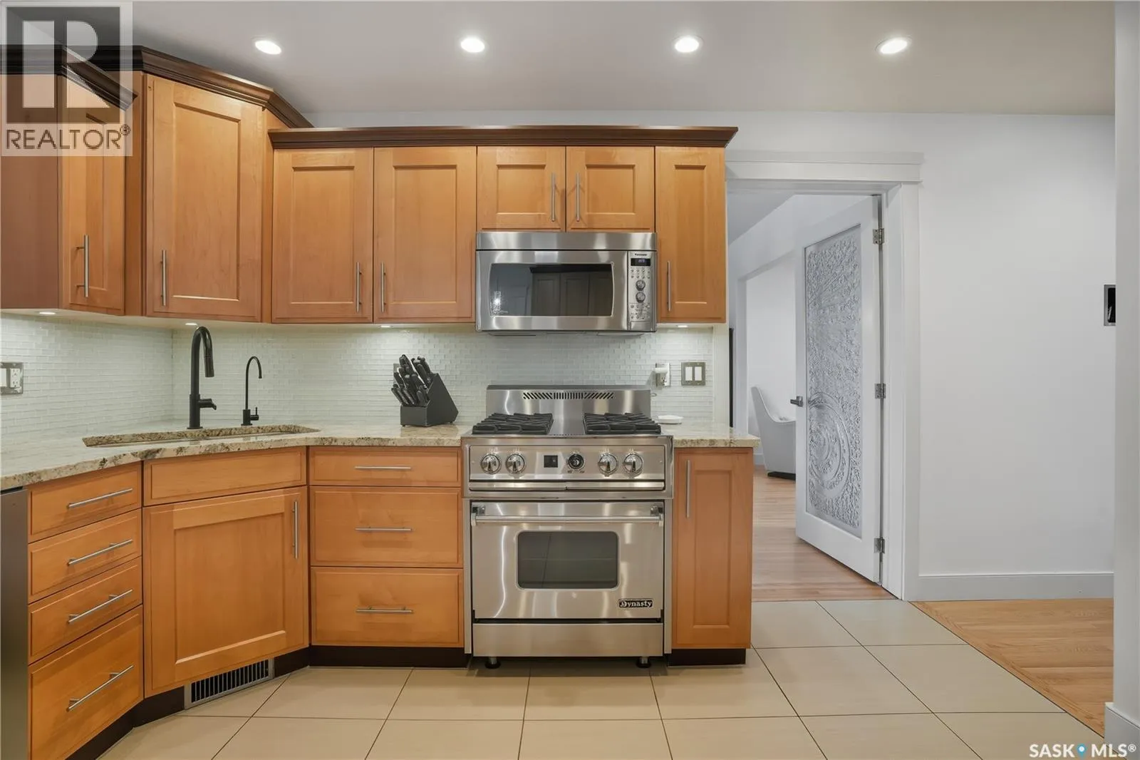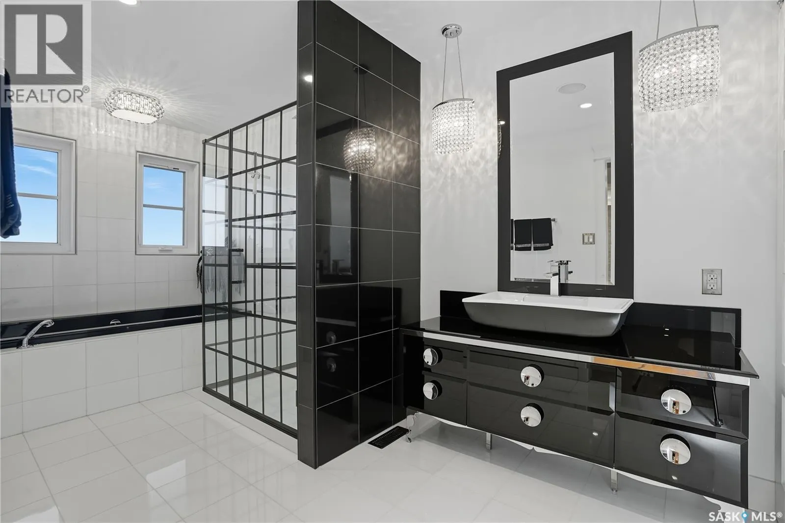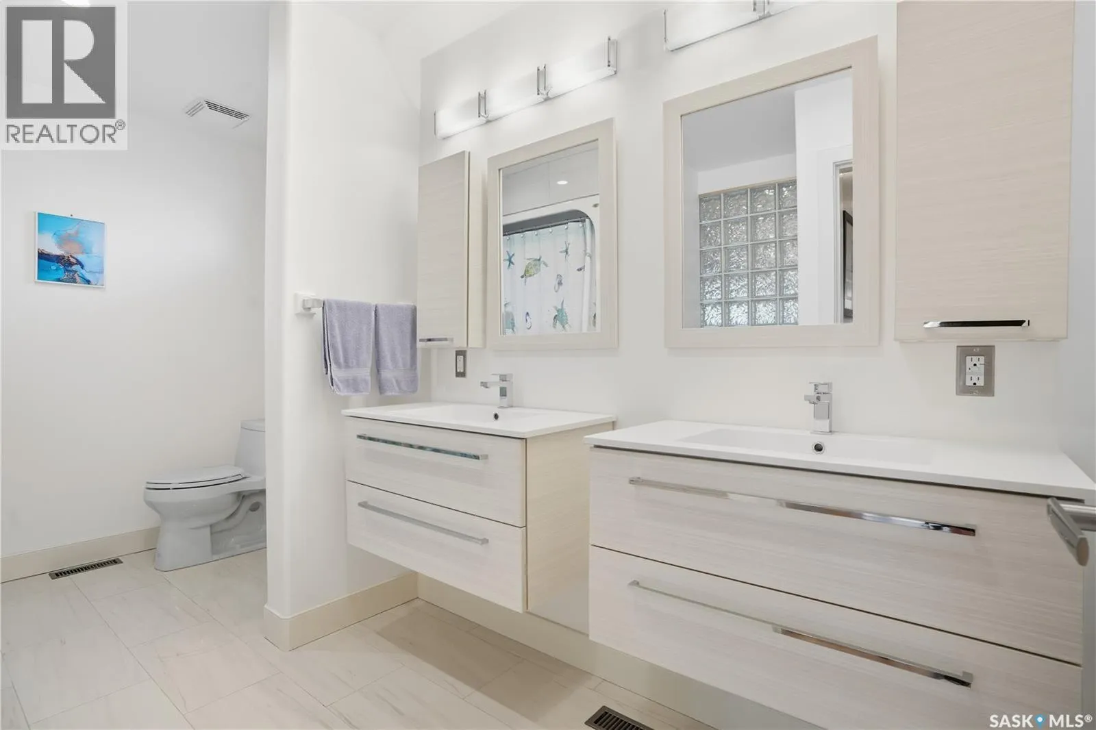 Welcome to 34 Leslie Place, a quiet bay in Reginaâs desirable Albert Park. This extensively renovated home blends elegance, comfort, and functionalityâready for immediate enjoyment. The grand entryway opens to a sunken living room with a 2-way gas fireplace and white quartz surround, a central wood-tile staircase, family room, and formal dining area overlooking the backyard. Custom hardwood floors flow throughout. The kitchen features warm wood cabinetry, granite countertops, tile flooring, double stainless sinks, a fireplace, and a cozy breakfast nook. A 2-piece bath and office/den with private entranceâcurrently a salonâcomplete the main floor. Upstairs, a bonus room overlooks a crystal chandelier and highlights custom woodwork, a gas fireplace, coffered ceiling, pot lights, and built-in sound. The luxurious 5-piece bath offers double sinks, glass block accents, and a seating area. The spacious primary suite includes two private balconies, dual closets (including built-in shoe storage), and a spa-like ensuite with soaker tub, walk-in shower, and water closet. Three additional bedrooms complete the upper level. The finished basement features a soundproof entertainment room, bedroom, 3-piece bath, and laundry with sink and cabinetry. Outside, enjoy a fully landscaped corner lot with stone/stucco exterior, wood accents, custom lighting, and double drive. The attached heated double garage features epoxy flooring, a custom aluminum and glass overhead door, and ample storage space. The PVC-fenced backyard includes a private, covered deck with lighting, and a stone patio. Value-added features: built on piles, exterior EIFS envelope, tile roofing system, natural gas BBQ hookup, central A/C, Control4 system, alarm, 200-amp panel, sewer backflow valve, HRV, hi-eff furnaces with humidifiers, and more. All drawings and improvement details available. A rare find in a prime locationâcall your agent today. (id:27476)