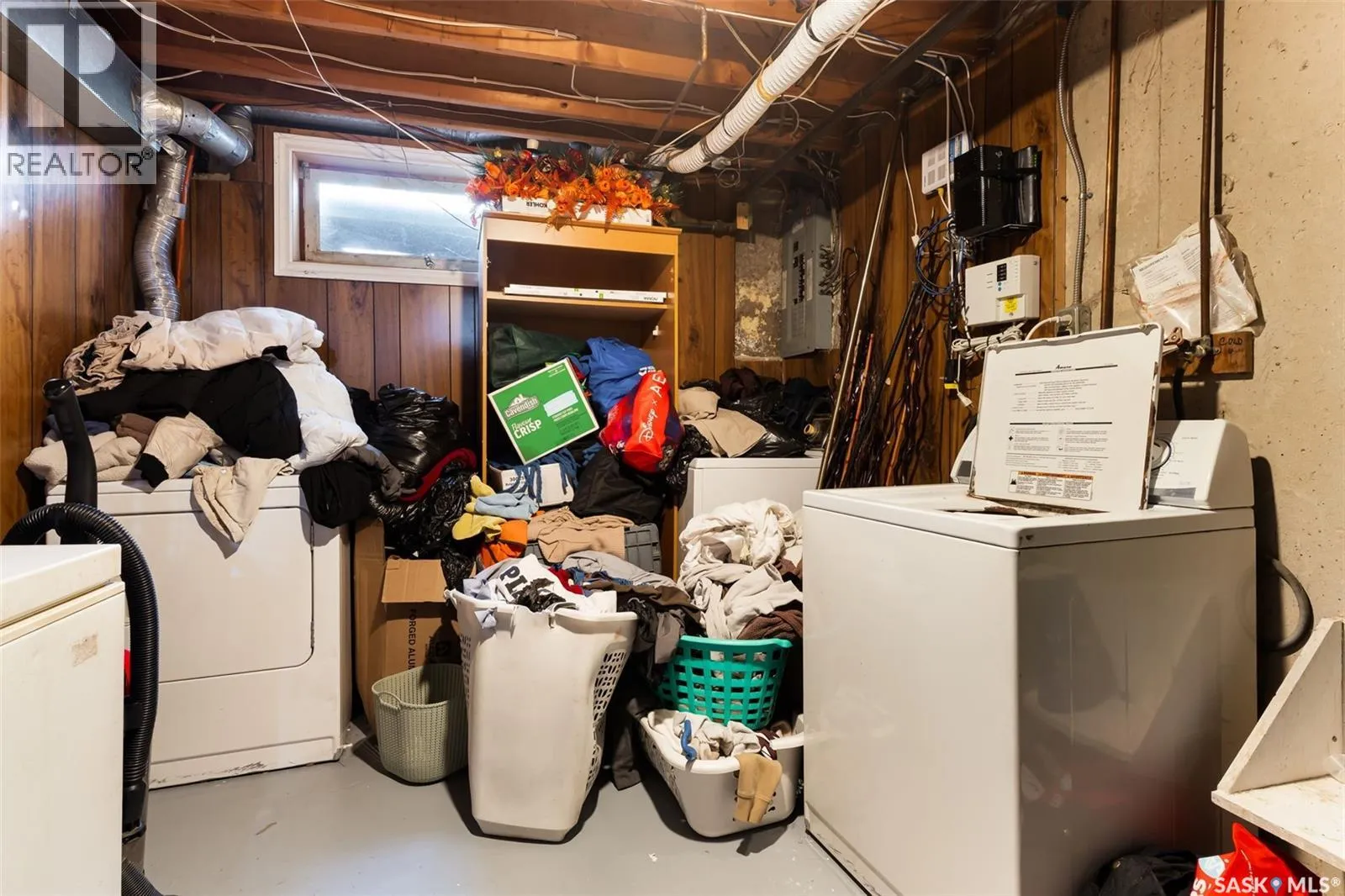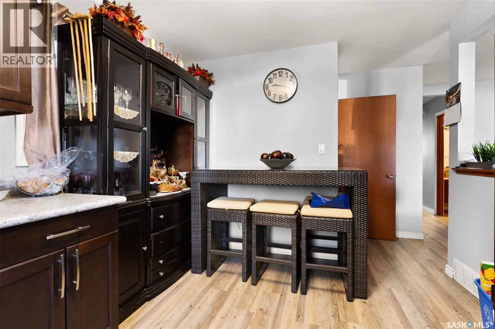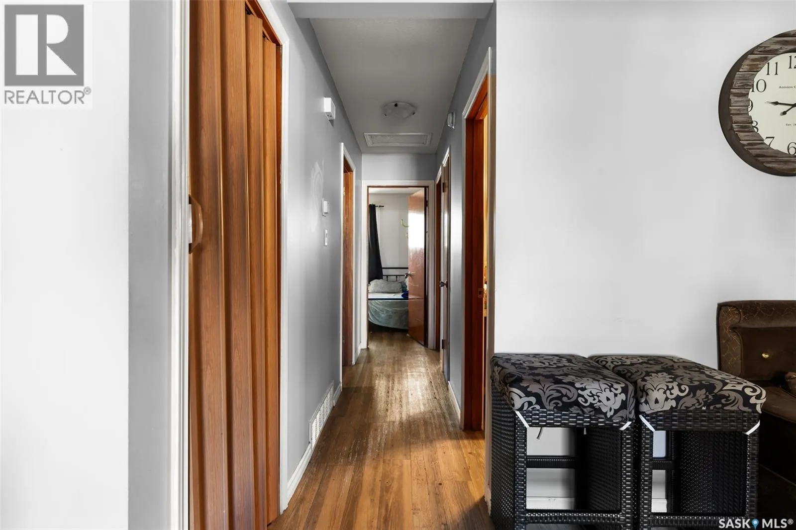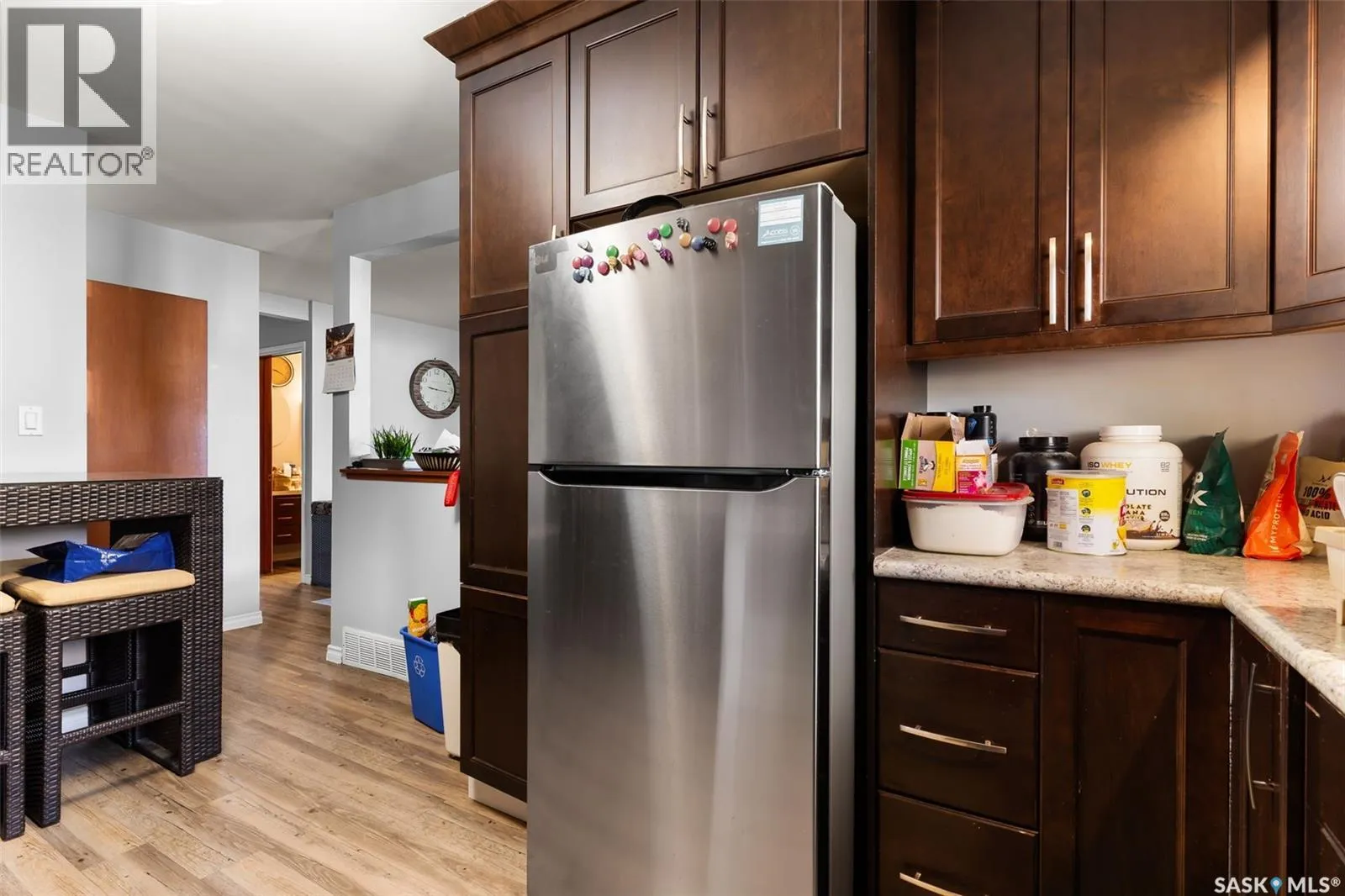 This solid duplex offers a fantastic opportunity for both homeowners and investors, featuring four bedrooms and two bathrooms. Unit is to be sold with attached property at 1437 Rupert Street (MLS #SK020175) Seller will only accepted offers for both sides. This side has been thoughtfully renovated, showcasing newer upstairs windows (excluding the living room), fresh paint throughout, updated fixtures, and high-quality laminate flooring. The kitchen and dining area have been opened up for a more modern flow, complemented by updated counters, cupboards, sink, and taps. The main four-piece bathroom includes a newer tub surround, while the basement boasts spray foam insulation, a generous family area, a large bedroom, a three-piece bath, laundry space, and an upgraded electrical panel. (Please note that basement bedroom window may not meet egress standards). The backyard is fully fenced, with a chain-link divider separating the two yards, and ample level parking adds to the convenience. Please contact your Realtor for more information on rental numbers or personal tour. (id:27476)