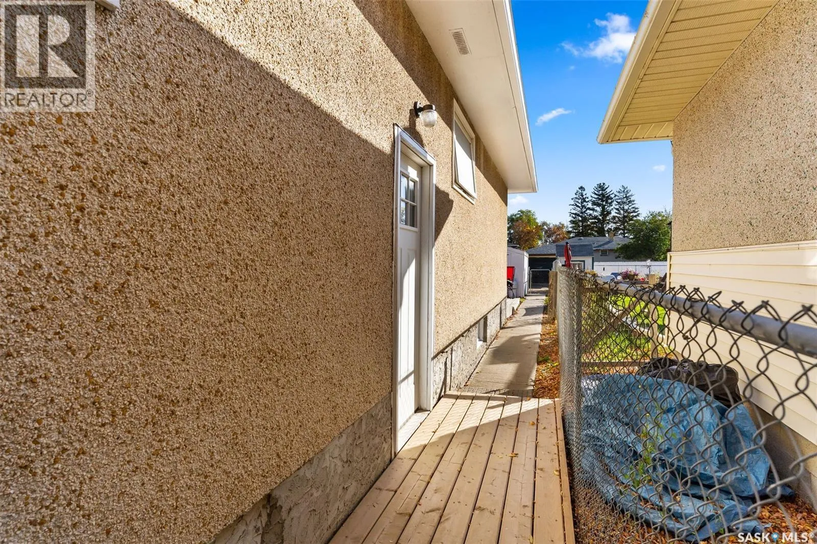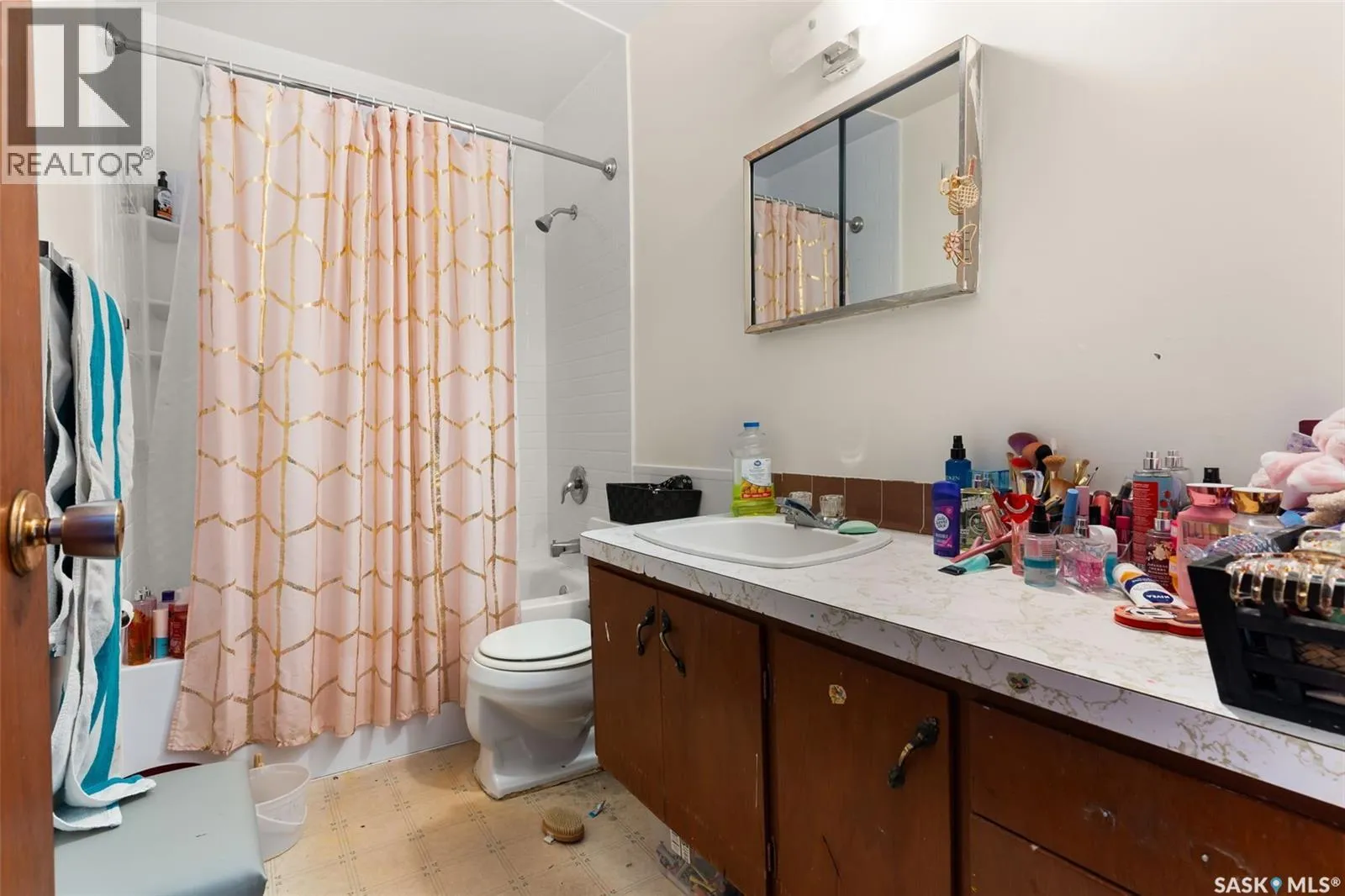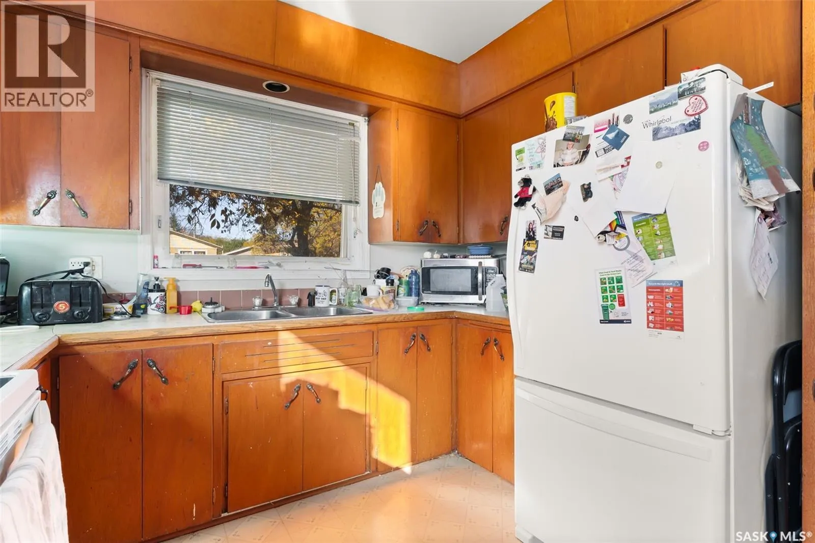 This solid duplex offers a fantastic opportunity for both homeowners and investors, featuring four bedrooms and two bathrooms. Unit is to be sold with attached property at 1435 Rupert Street (MLS #SK020171) Seller will only accepted offers for both sides. This side presents a blank canvas for customization, allowing you to choose your own flooring and paint to suit your style. The cabinetry is solid, and most of the upstairs windows have been replaced (excluding the living room). The main bathroom also features a new tub surround, and three well-sized bedrooms complete the upper level. The basement is partially finished, offering a large bedroom and a four-piece bathroom, along with full insulation and a newer panel. (Please note that basement bedroom windows may not meet egress standards). The property is well-maintained with newer shingles and excellent utility. The backyard is fully fenced, with a chain-link divider separating the two yards, and ample level parking adds to the convenience. Please contact your Realtor for more information on rental numbers or personal tour. (id:27476)