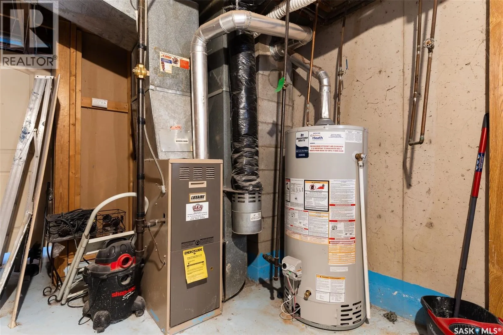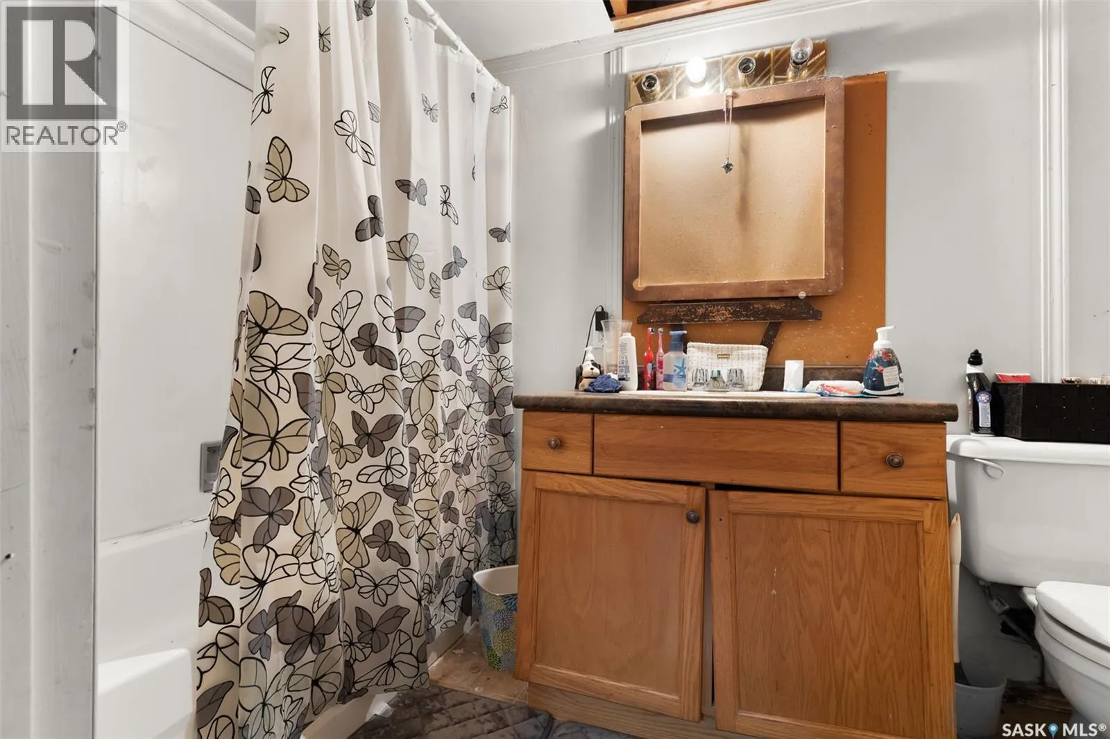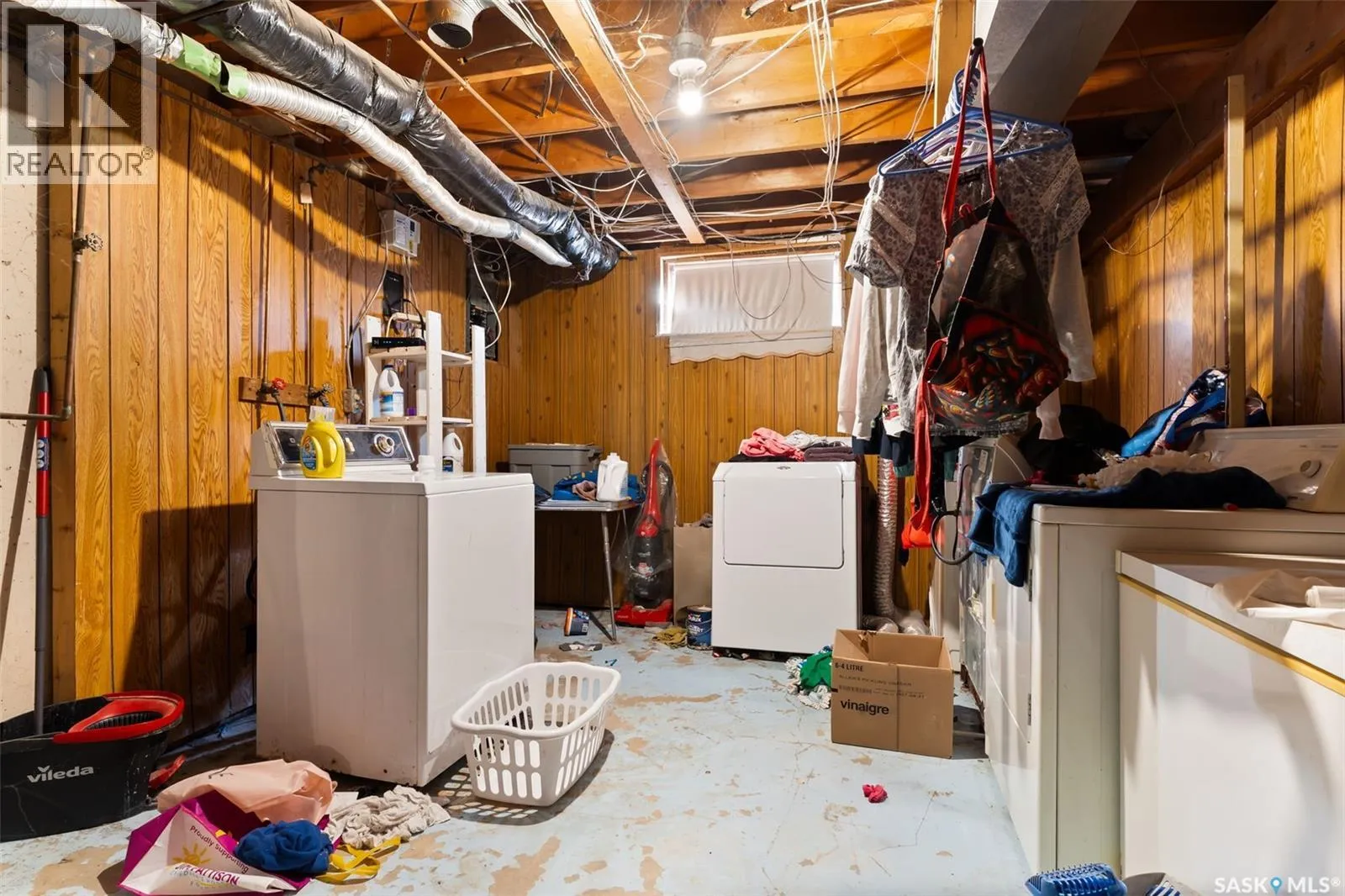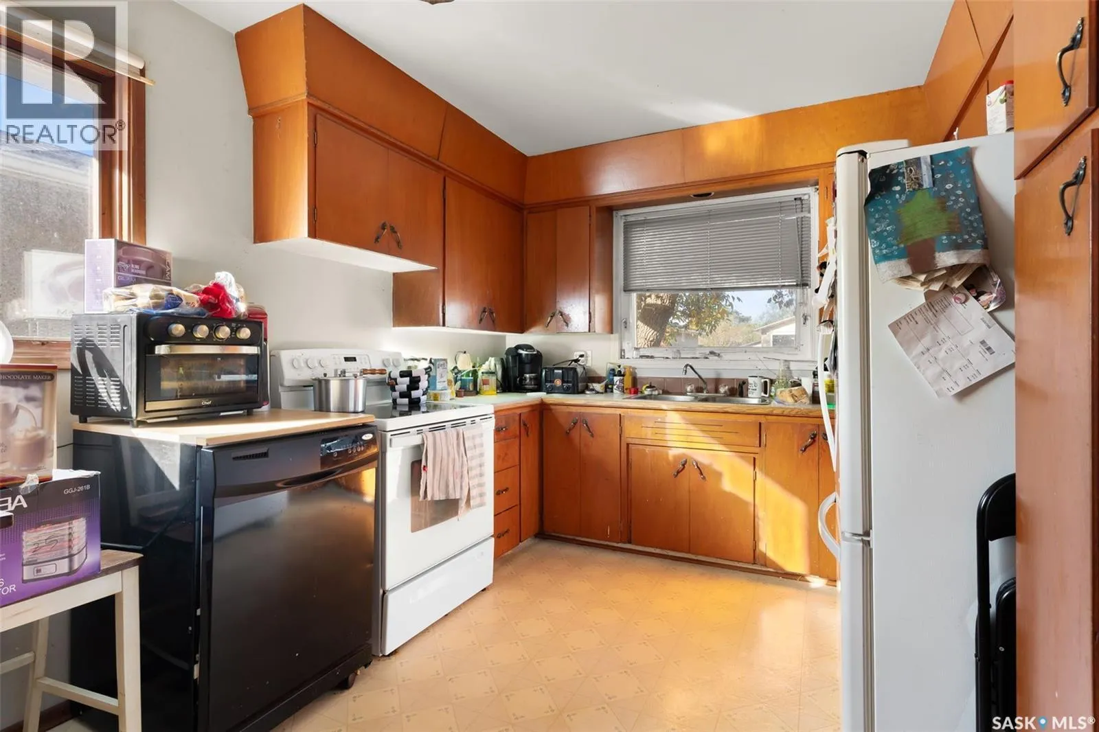 This solid duplex offers a fantastic opportunity for both homeowners and investors, featuring four bedrooms and two bathrooms. Unit is to be sold with attached property at 1435 Rupert Street (MLS #SK020171) Seller will only accepted offers for both sides. This side presents a blank canvas for customization, allowing you to choose your own flooring and paint to suit your style. The cabinetry is solid, and most of the upstairs windows have been replaced (excluding the living room). The main bathroom also features a new tub surround, and three well-sized bedrooms complete the upper level. The basement is partially finished, offering a large bedroom and a four-piece bathroom, along with full insulation and a newer panel. (Please note that basement bedroom windows may not meet egress standards). The property is well-maintained with newer shingles and excellent utility. The backyard is fully fenced, with a chain-link divider separating the two yards, and ample level parking adds to the convenience. Please contact your Realtor for more information on rental numbers or personal tour. (id:27476)