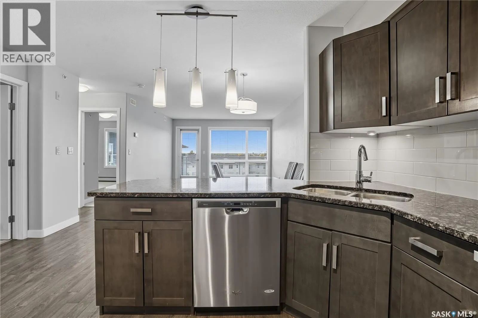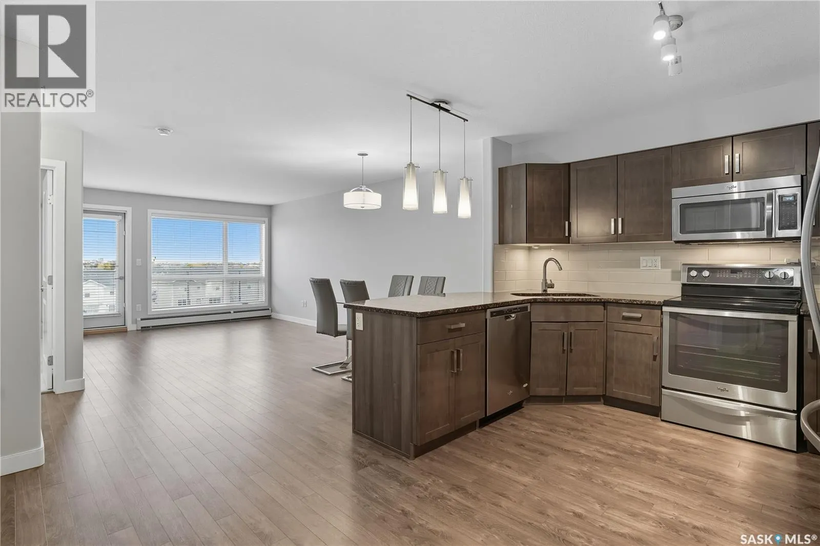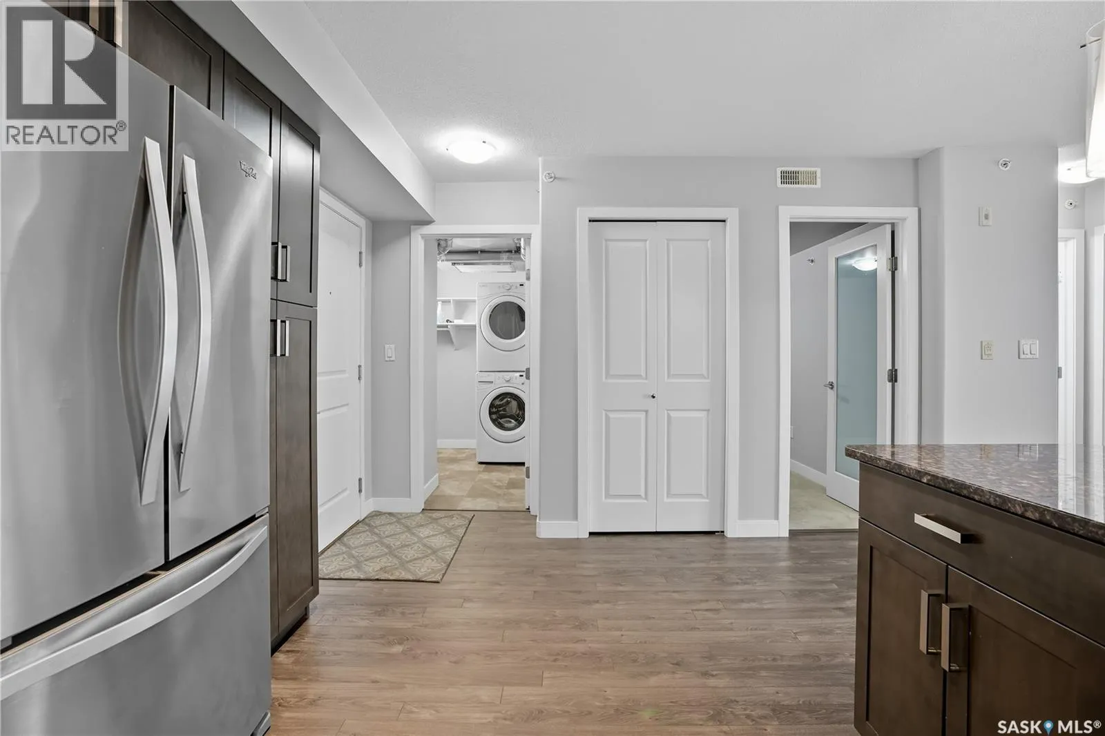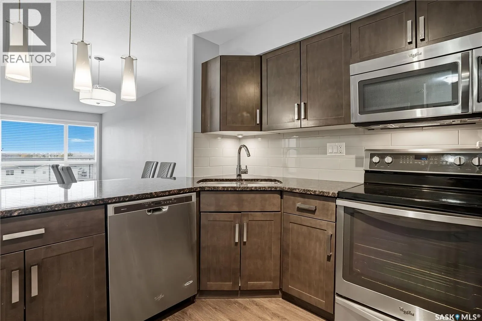 Welcome to this prime located top floor east end condo. High end finishes throughout , dream kitchen with stainless steel appliances included. This beautiful kitchen features dark cabinets with a rich looking granite countertop top and large island. Nice open layout with great views from the moment you walk in the condo. Condo has a large bedroom and another den for a perfect office or smaller bedroom . Convenient located washer dryer in the unit and an updated full bathroom. If that wasnât enough you also get an ideal underground parking spot on the end and a large storage unit for all your needs. Wonât last long make your appointment with your realtor today. (id:27476)
