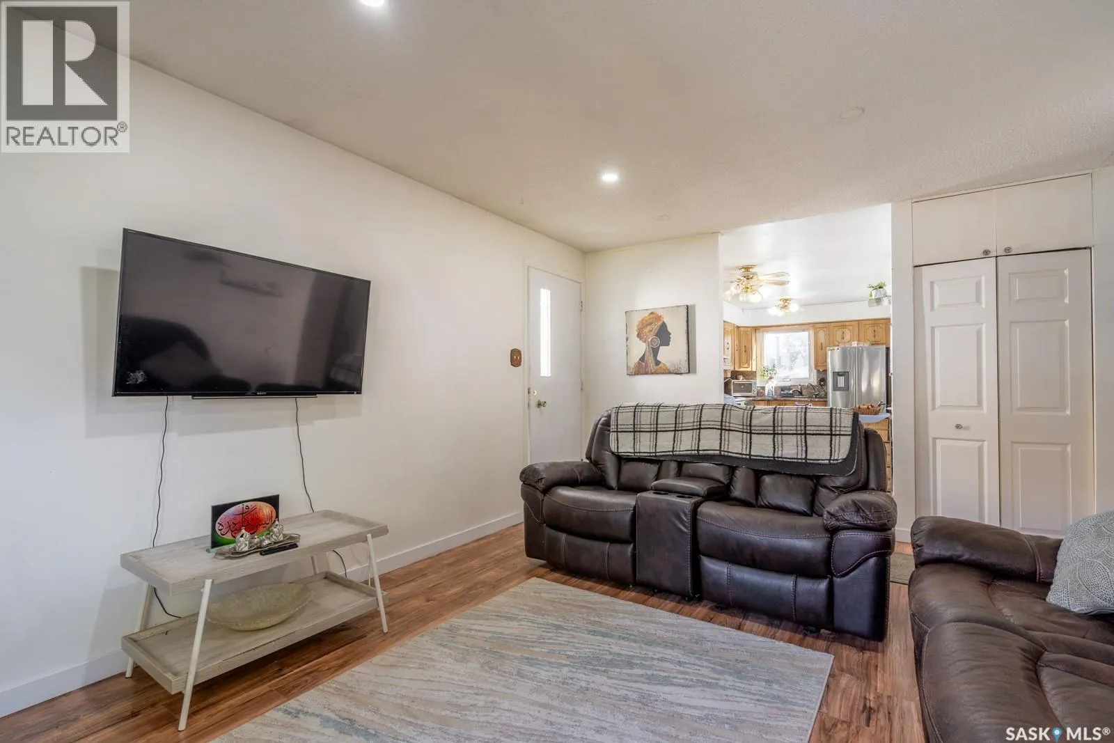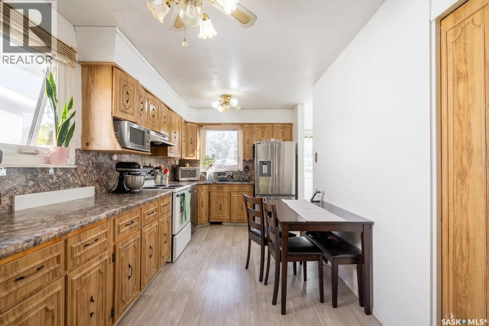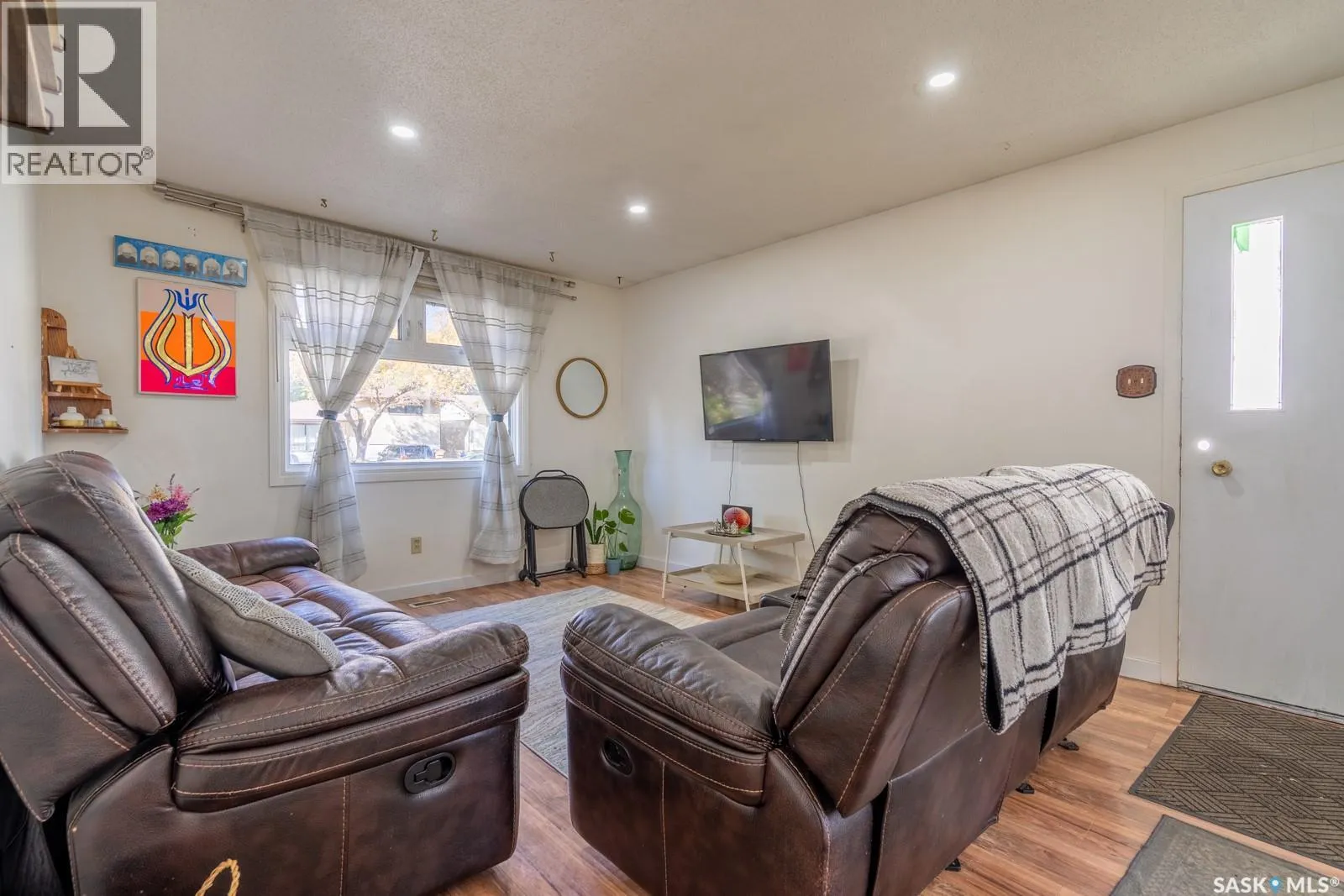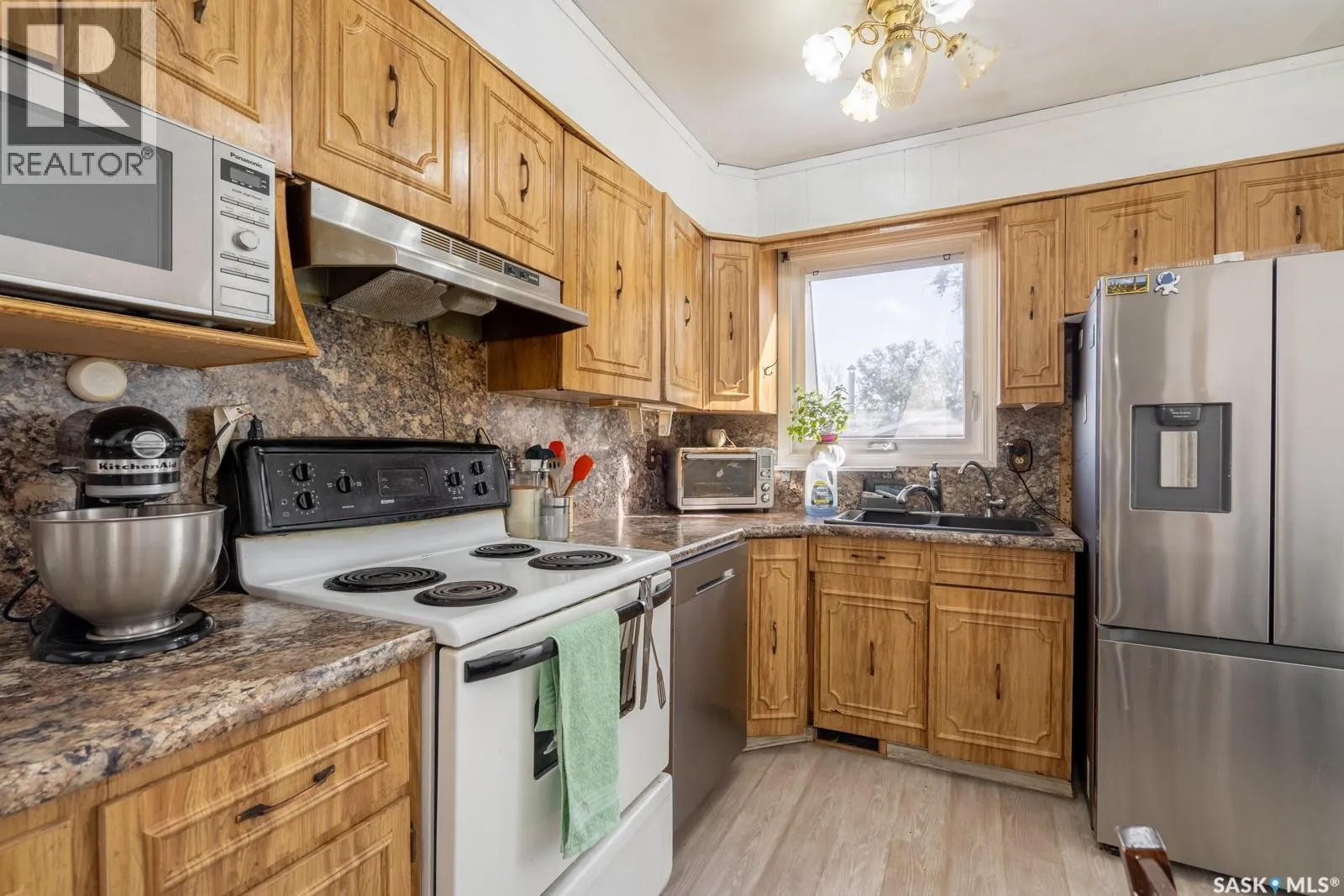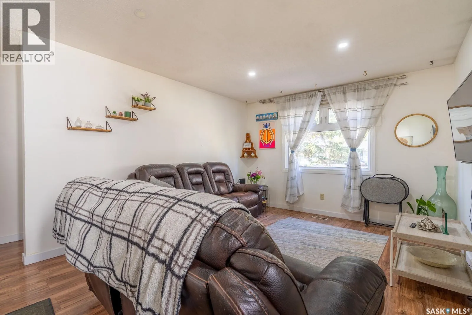 Welcome to this well-maintained 4-bedroom, 2-bathroom bungalow located on a quiet street in Reginaâs desirable east end â Glencairn. This home offers a great blend of comfort, updates, and functionality. Step inside to a bright, west-facing living room that fills with natural light. The spacious kitchen offers ample cabinetry, perfect for family meals and entertaining. Three well-sized bedrooms and a refreshed 4-piece bathroom complete the main floor, which also features updated laminate flooring throughout most of the level. The solid and inviting basement includes a large rec room, a fourth bedroom, a 3-piece bathroom, and a dedicated furnace/storage area. New carpet adds comfort and warmth to the lower level. Recent updates include: Laminate flooring on most of the main floor Renovated main floor bathroom New carpet in the basement Updated windows throughout A new back deck The fully fenced yard is perfect for kids, pets, or summer gatherings, and includes a double detached garage with convenient access from the rear alley. Situated just minutes from East End amenities and with quick access to Ring Road, this home is ideal for families or anyone seeking a move-in-ready property in a well-established neighbourhood. (id:27476)