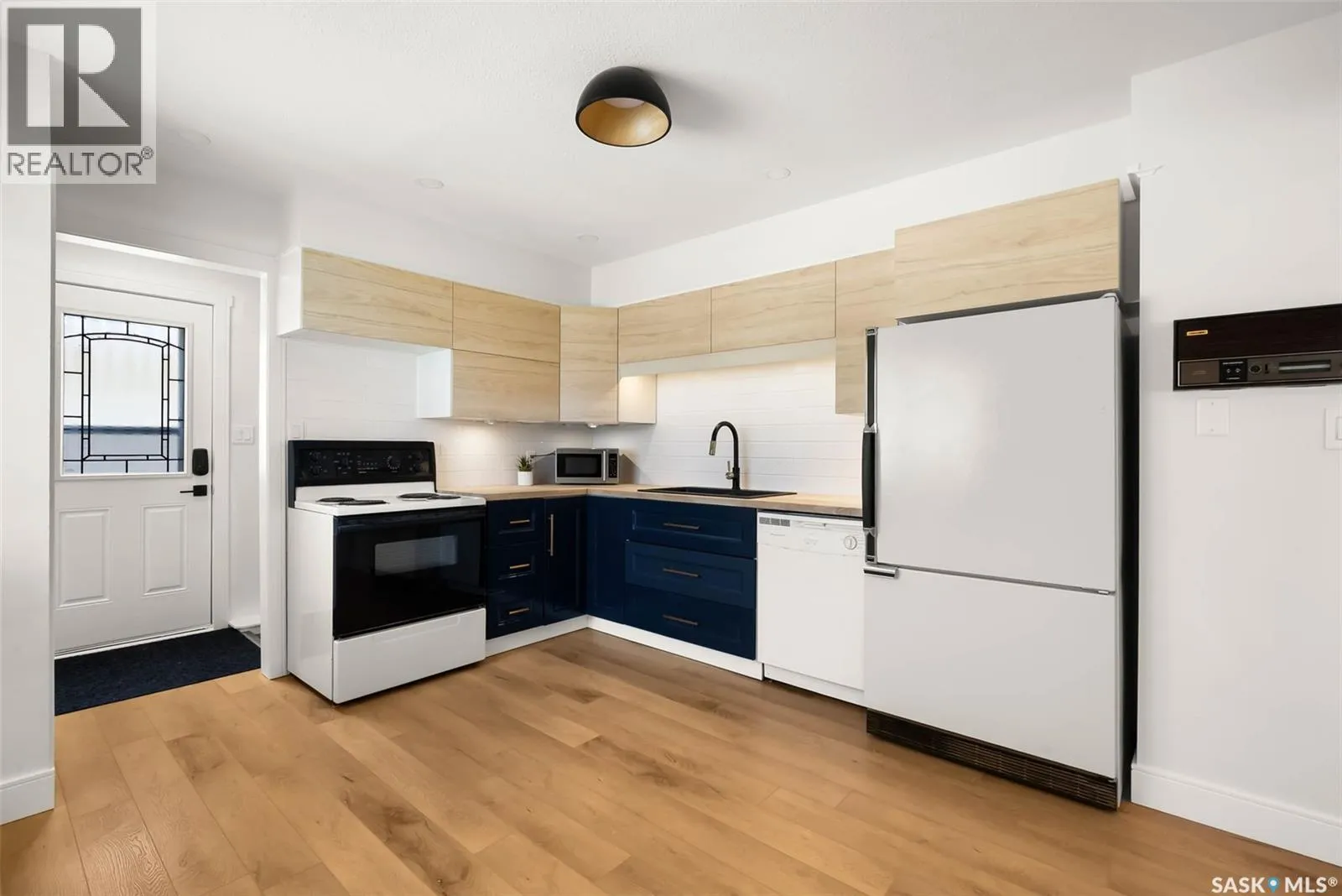 Recently updated 1168 Sq Ft bungalow in Normanview West. Livingroom with large window, wood burning fireplace and modern accent wall. Kitchen has been updated with brand new cupboards, counter tops and sink. Primary bedroom with two piece ensuite is uniquely setup as part of the addition with direct access the backyard through the patio doors. Four piece bath has been updated with counter vanity, counter top, four piece tub/shower with tile floors. The main level has been updated with LED lights, Vinyl plank flooring, paint and trim. Basement includes "L" shaped rec room, dry bar, one room with window (does not meet egress), plus additional storage. (id:27476)