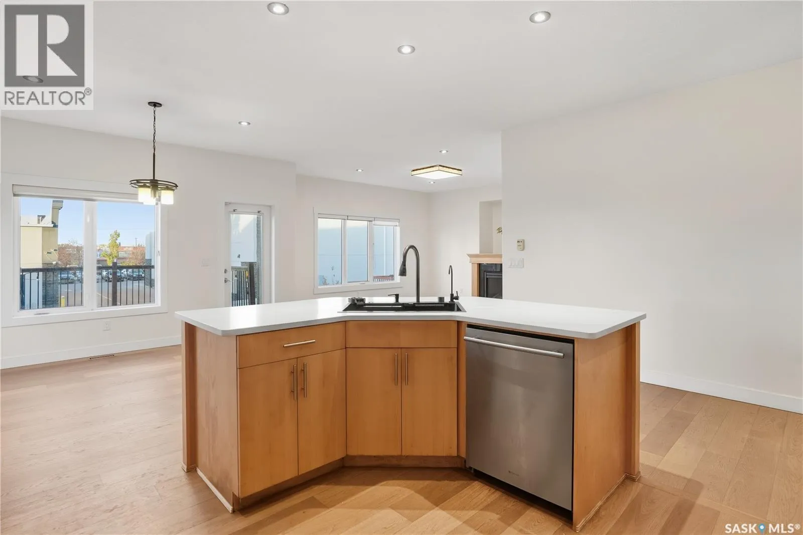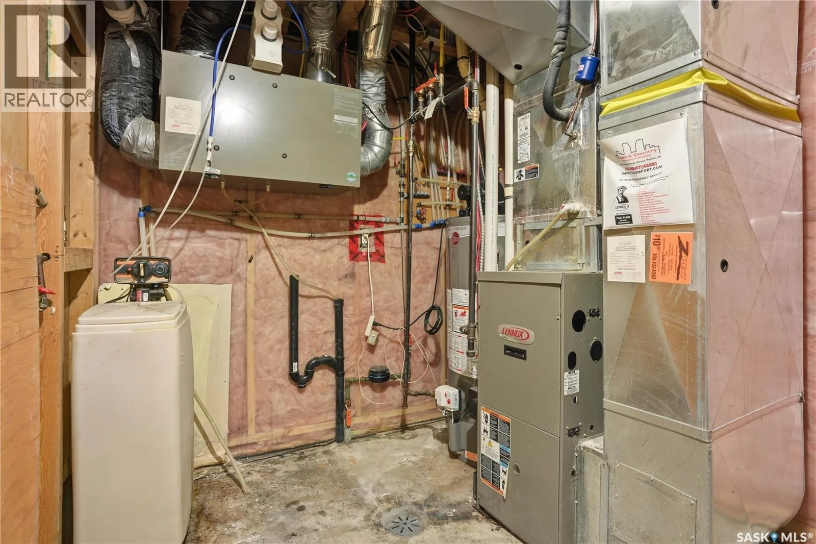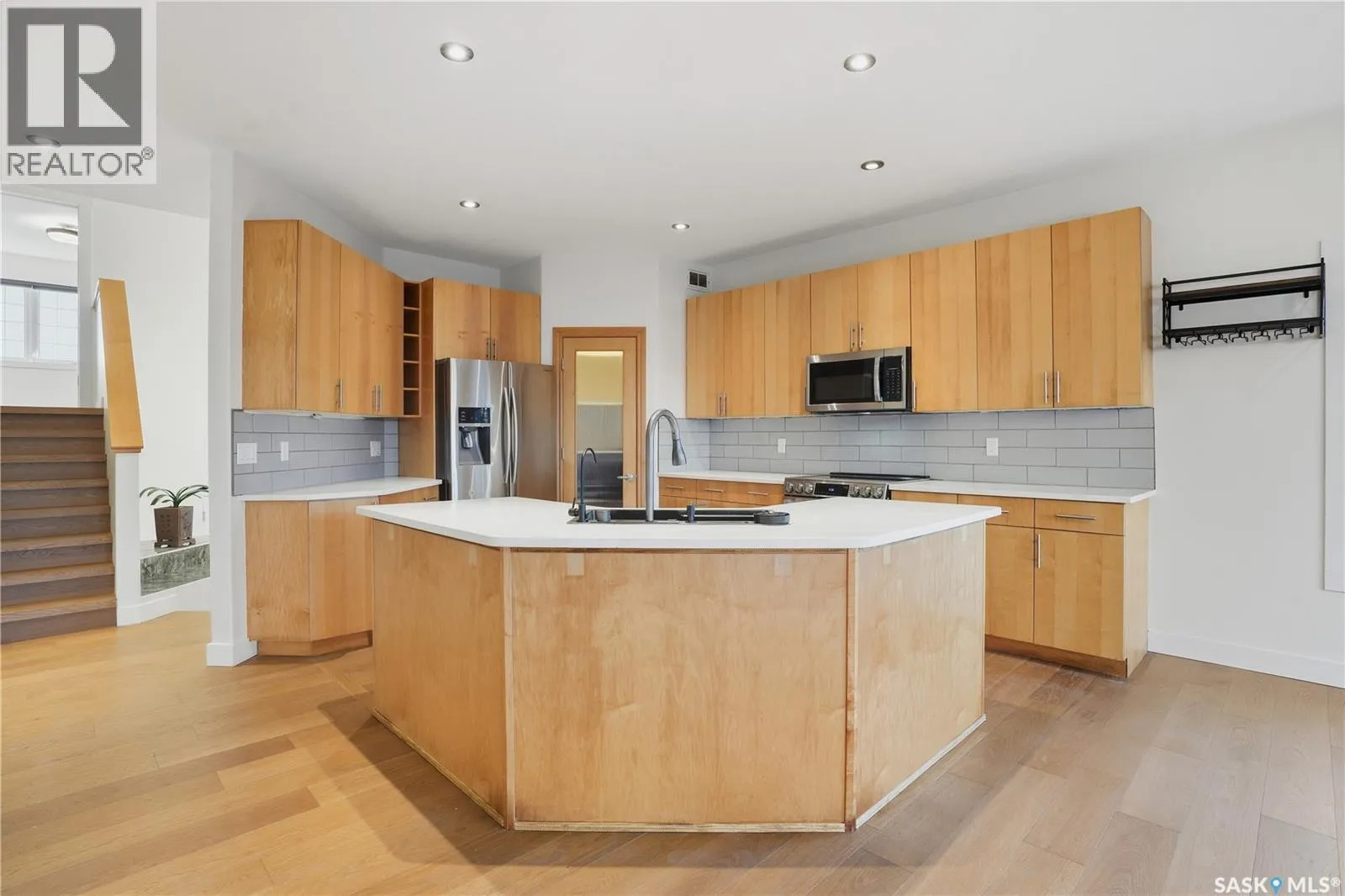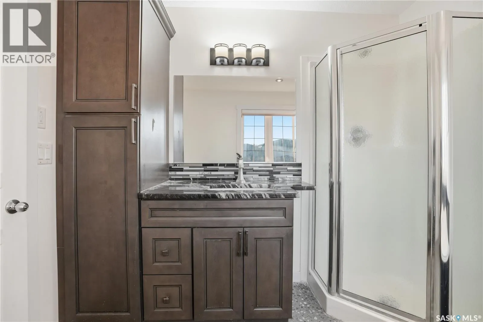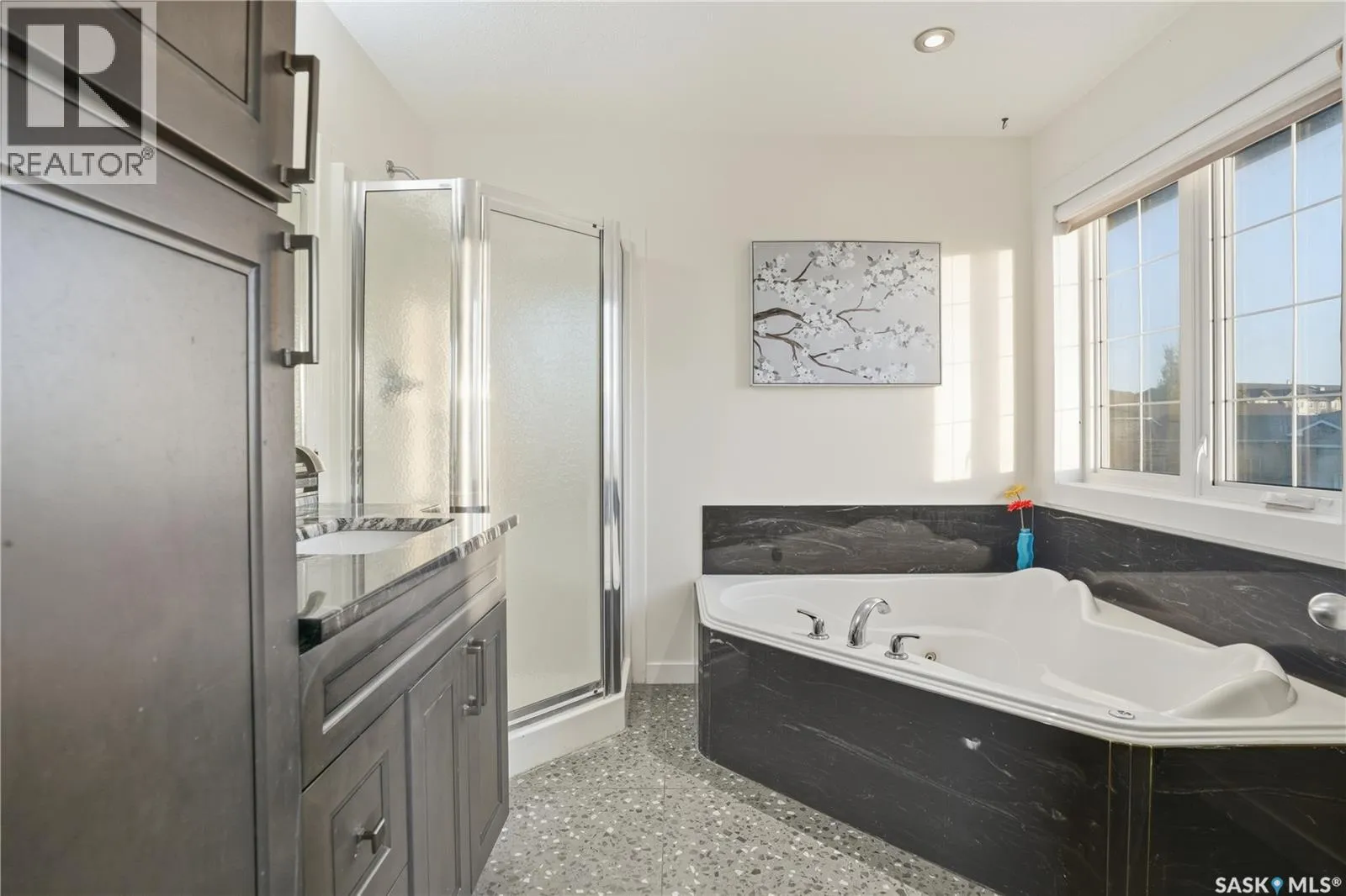 Welcome to this beautiful family home in Gardiner Park. Close to shopping, elementary school and all the east end amenities. As you enter into the large high ceiling foyer, you will immediately see the new engineering hardwoods, which are located throughout the main floor and second floor of the house. This house has an open concept layout and is filled with tons of natural light which pours through the abundance of windows. The kitchen comes complete with an eat-in nook and has extended maple cabinets with new quartz counter tops, stainless steel appliances. The kitchen opens up to the living room with a wall niche above the gas fireplace. A nice sized bedroom, a 4 piece bathroom and a big laundry room finished the main floor. The second level features a spacious master bedroom, with a large walk-in closet and ensuite that features a corner jetted tub surrounding in marble. The lower level is totally finished and includes a huge rec room , the 3rd bedroom, a big den which can be used us the 4th bedroom if needed, and a convenient 3 pc bathroom. The 4 feet windows give the lower level that nice open feeling. The utility room has tons of room for storage or a hobby room. Double 24' x 22' attached garage is insulated & boarded. Nice sized deck overlooks the backyard with lawn and garden area, low maintenance front yard. Upgrade recent years includes but not limited to: new shingles in 2025, new engineering hardwood flooring on main floor, second floor and stairs to the basement in 2025, new quartz kitchen counter tops in 2025, new vinyl plank flooring in the basement in 2025, new microwave hood fan and kitchen sink in 2025, etc. As per the Sellerâs direction, all offers will be presented on 10/16/2025 5:00PM. (id:27476)