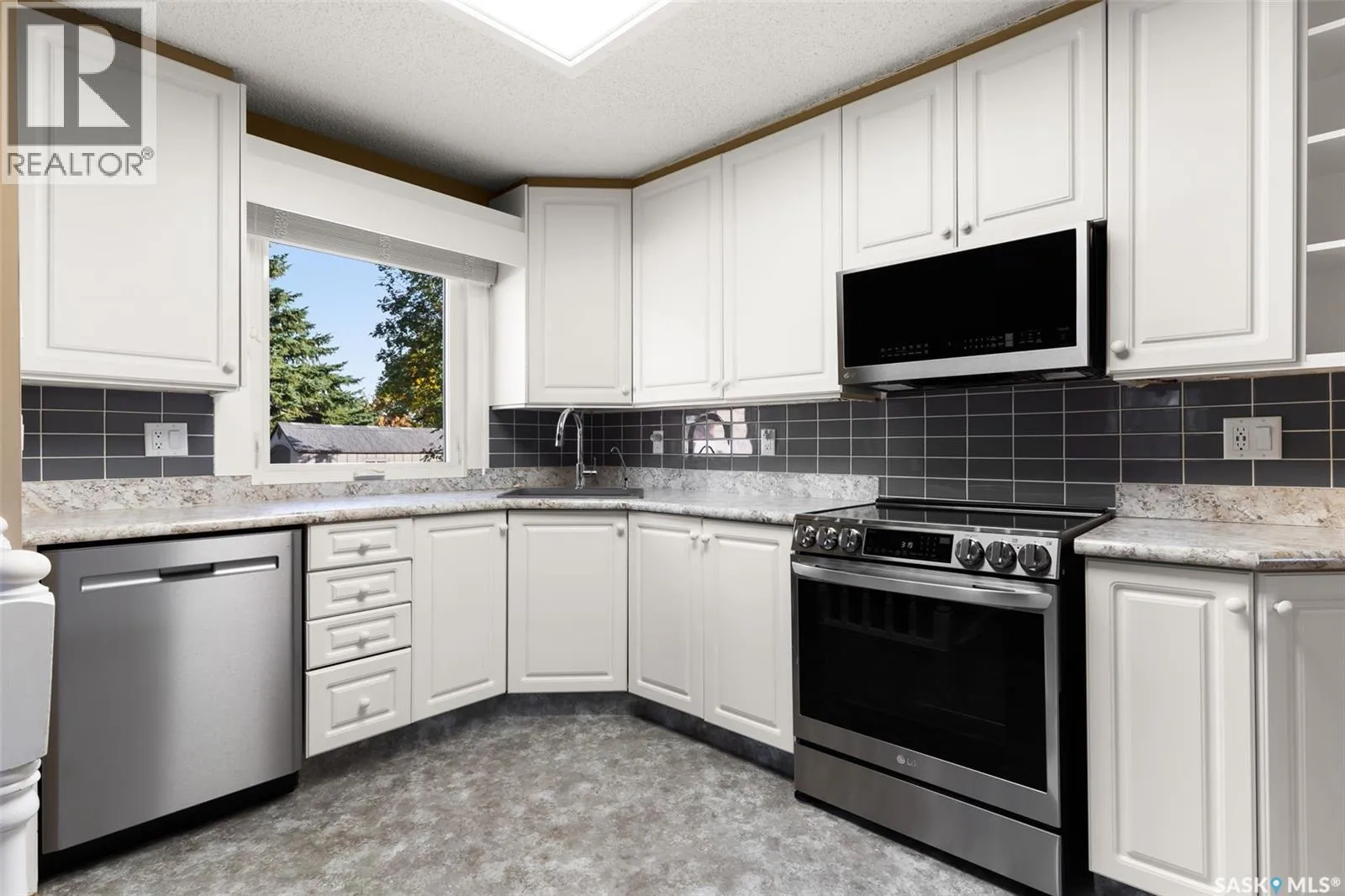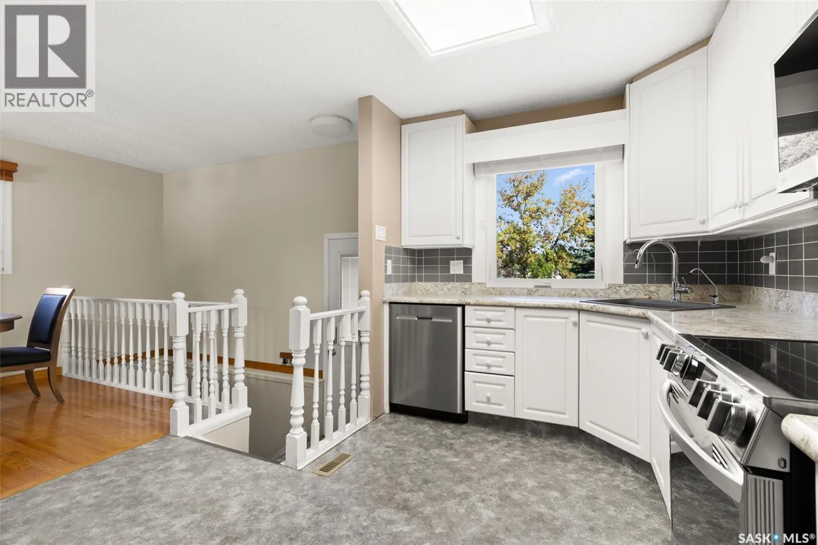 Nestled on a quiet bay in a great area, this very well maintained 3 bedroom, 2 bathroom home offers comfortable living with plenty of updates throughout. The spacious living room features a cozy natural gas fireplace and beautiful hardwood floors that flow into the dining room. The recently renovated kitchen includes new appliances, and updated cabinets and counters. Both the main floor and ensuite bathrooms have also been updated. The finished basement adds extra living space and includes an HE furnace, AC, and a reverse osmosis system for added convenience. Other improvements include newer shingles, exterior doors and windows. Enjoy summer days in the massive PVC-fenced yard with patio and garden shed. Schedule your private showing now, this one isnât going to last. (id:27476)