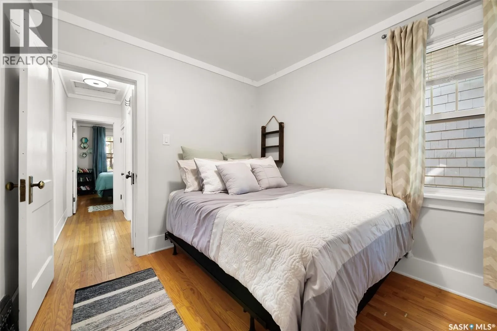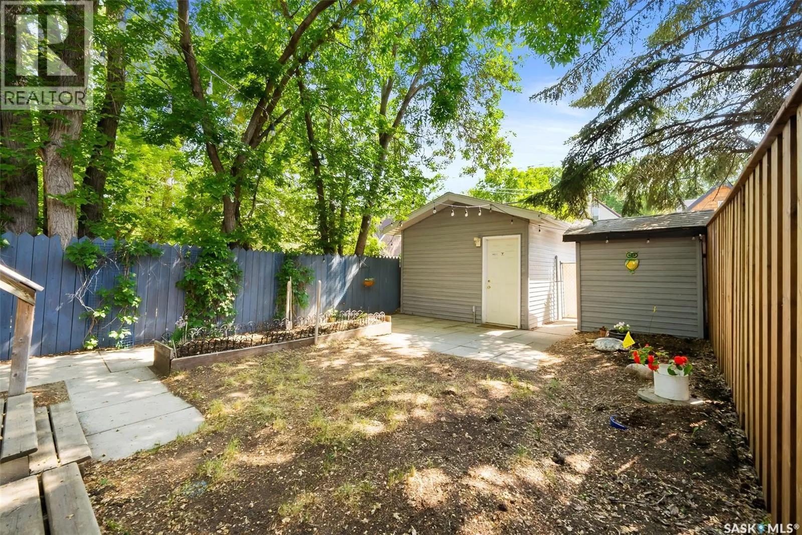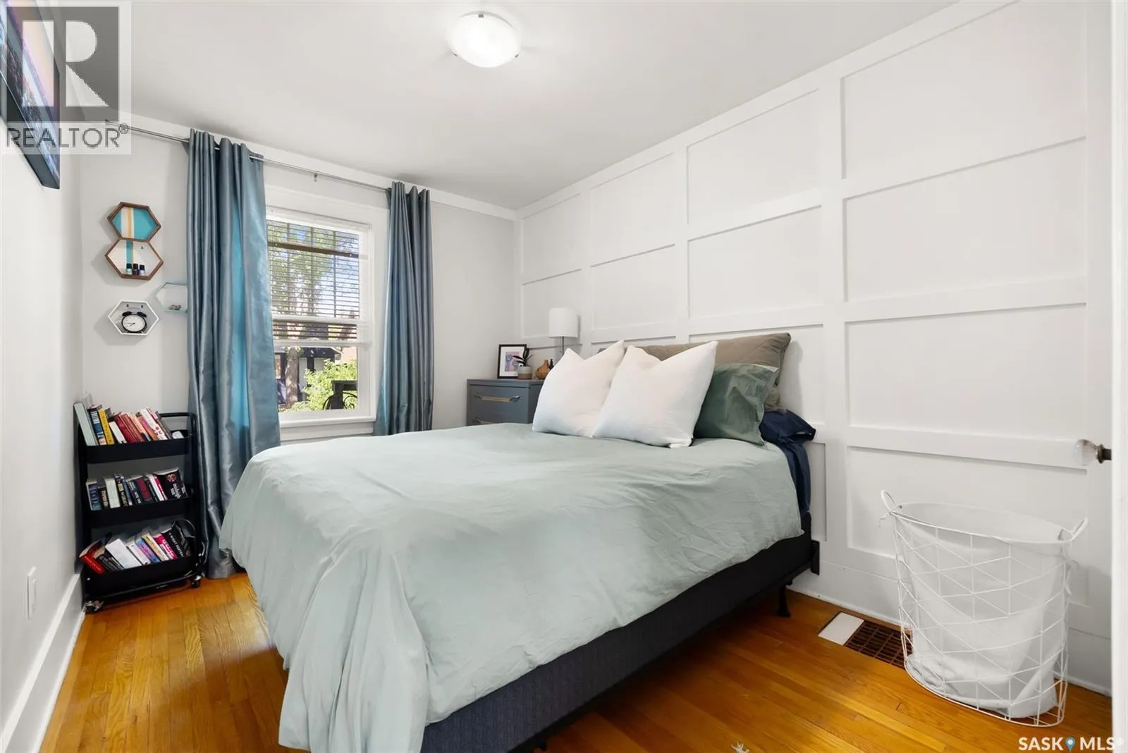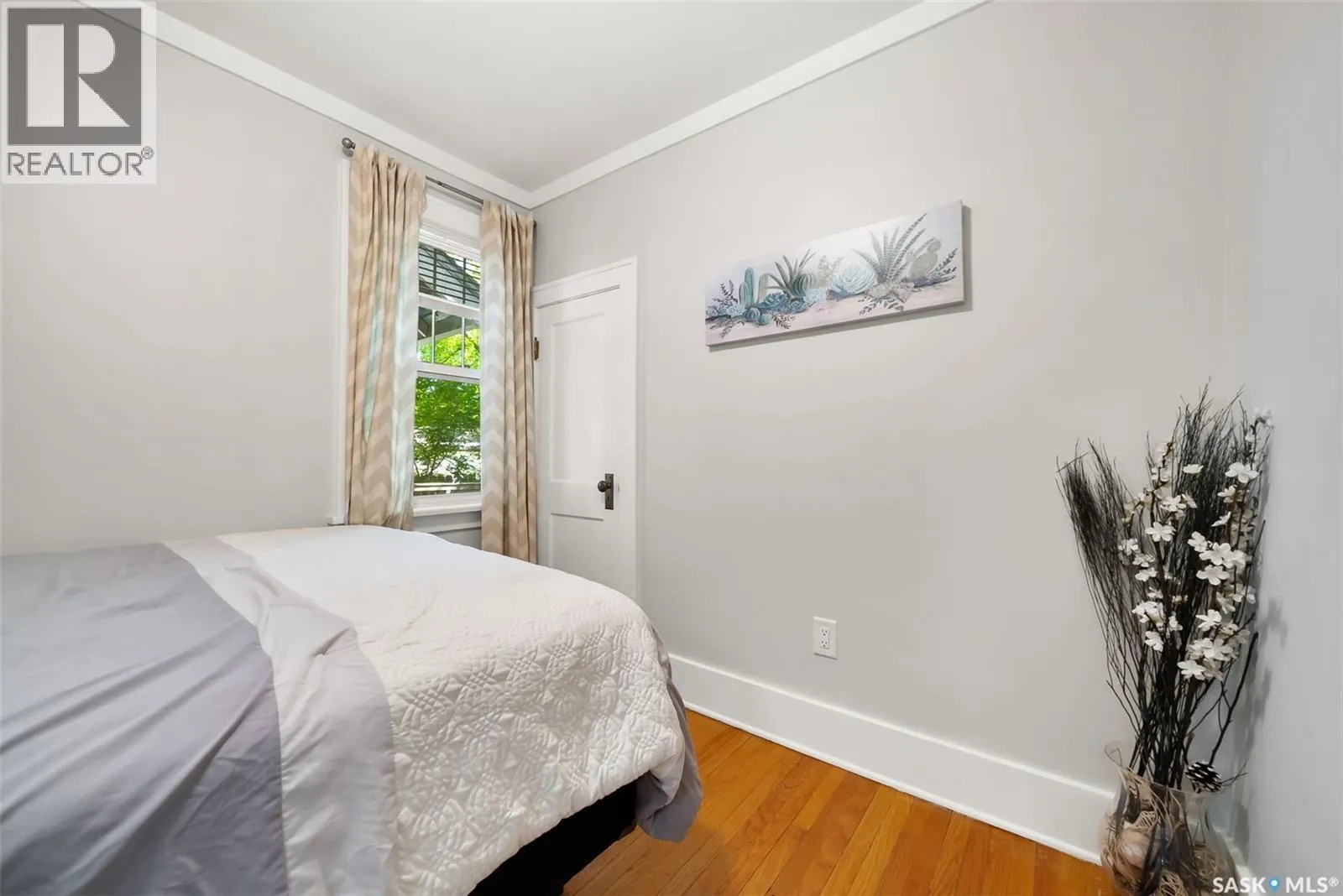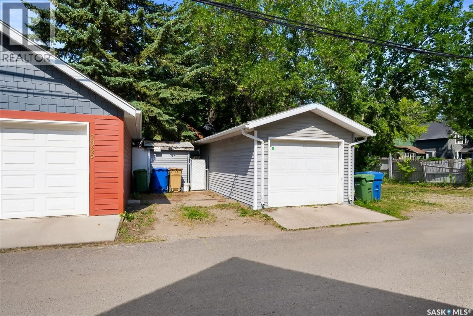 Welcome to 2061 Elphinstone Streetâperfectly situated in the heart of Reginaâs sought-after Cathedral neighborhood. Just steps from 13th Avenueâs trendy coffee shops, restaurants, and boutiques, and within walking distance to Mosaic Stadium, Brandt Centre, and Evraz Place, this home offers unbeatable access to local events and amenities. Inside, this inviting bungalow features a bright, sunlit sitting room, spacious living and dining areas, and original hardwood flooring that adds timeless character. Classic details like tall baseboards, crown molding, and plaster accents enhance the cozy atmosphere. The white kitchen offers a full appliance package and a unique foldaway pantry hatchâblending charm with functionality. The main floor includes two generously sized bedrooms and a beautifully updated 4-piece bathroom complete with vinyl plank flooring, a clawfoot tub, and modern vanity. Additional features include central A/C, a security system, and basement laundry. Enjoy the fully fenced and landscaped backyard with garden beds, patio space, single detached garage, and extra parking via the rear alley. Seller states upgrades include a full electrical replacement and new panel (2021), and half the windows replaced in 2023. Live the Cathedral lifestyleâwalk to the farmers market, catch a concert, or relax with a book from a local Little Free Library. Donât miss your chance to own this charming home in one of Reginaâs most vibrant communities. Book your showing today! (id:27476)