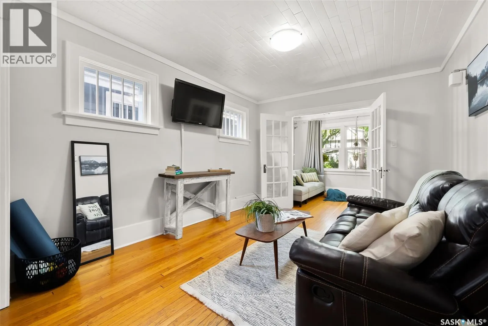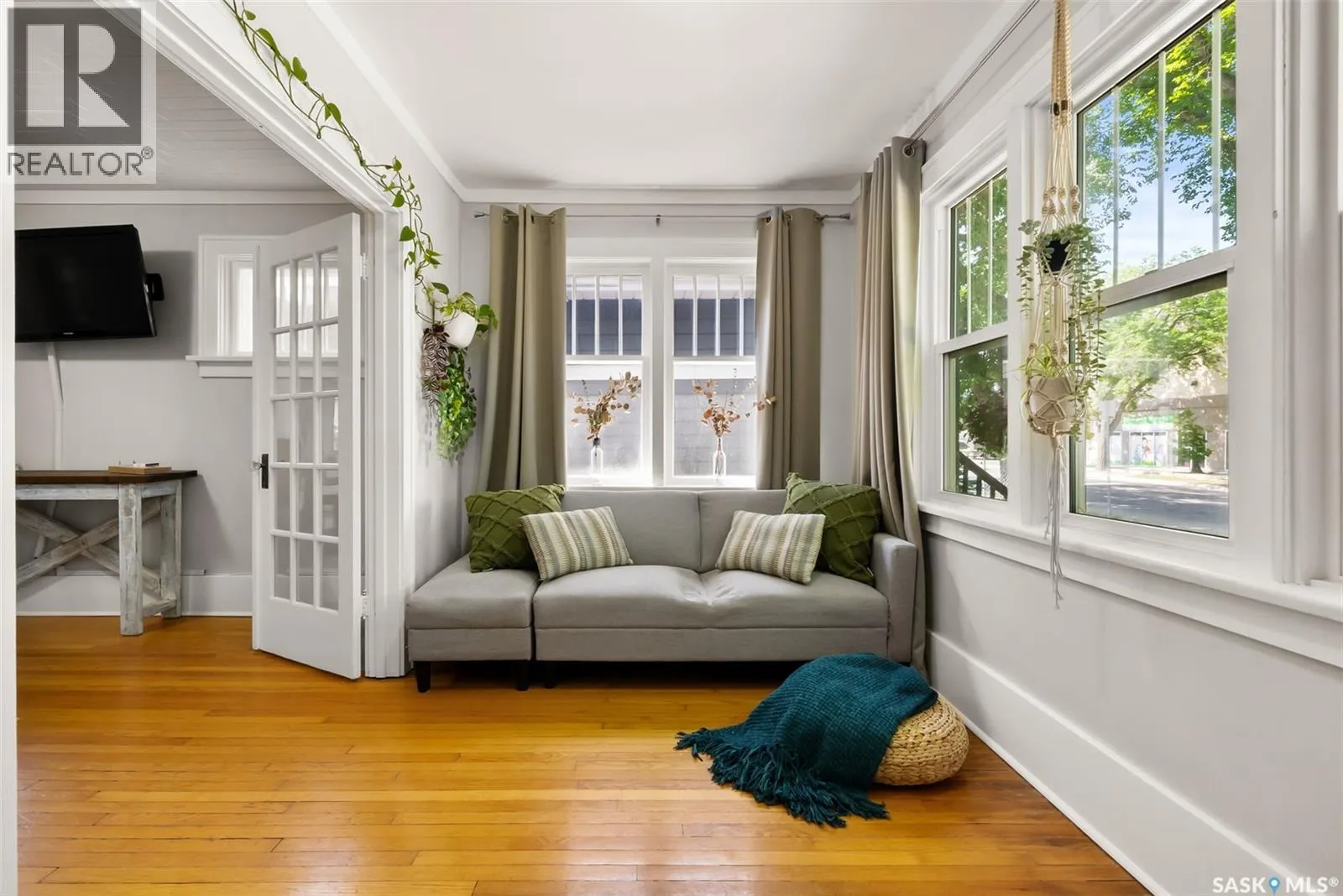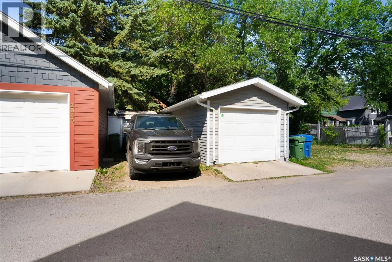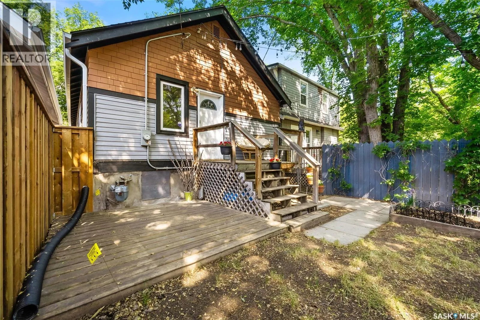 Welcome to 2061 Elphinstone Streetâperfectly situated in the heart of Reginaâs sought-after Cathedral neighborhood. Just steps from 13th Avenueâs trendy coffee shops, restaurants, and boutiques, and within walking distance to Mosaic Stadium, Brandt Centre, and Evraz Place, this home offers unbeatable access to local events and amenities. Inside, this inviting bungalow features a bright, sunlit sitting room, spacious living and dining areas, and original hardwood flooring that adds timeless character. Classic details like tall baseboards, crown molding, and plaster accents enhance the cozy atmosphere. The white kitchen offers a full appliance package and a unique foldaway pantry hatchâblending charm with functionality. The main floor includes two generously sized bedrooms and a beautifully updated 4-piece bathroom complete with vinyl plank flooring, a clawfoot tub, and modern vanity. Additional features include central A/C, a security system, and basement laundry. Enjoy the fully fenced and landscaped backyard with garden beds, patio space, single detached garage, and extra parking via the rear alley. Seller states upgrades include a full electrical replacement and new panel (2021), and half the windows replaced in 2023. Live the Cathedral lifestyleâwalk to the farmers market, catch a concert, or relax with a book from a local Little Free Library. Donât miss your chance to own this charming home in one of Reginaâs most vibrant communities. Book your showing today! (id:27476)