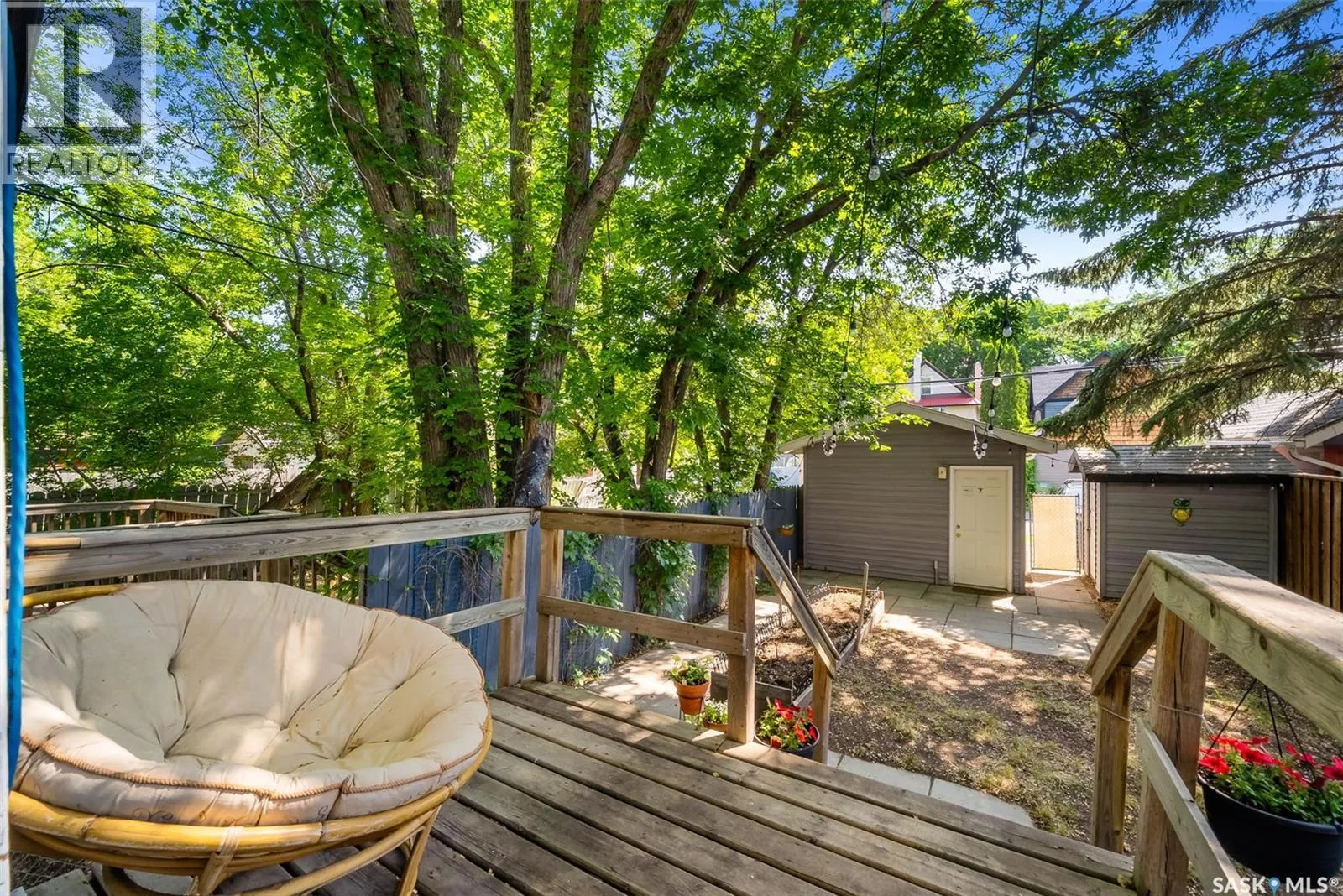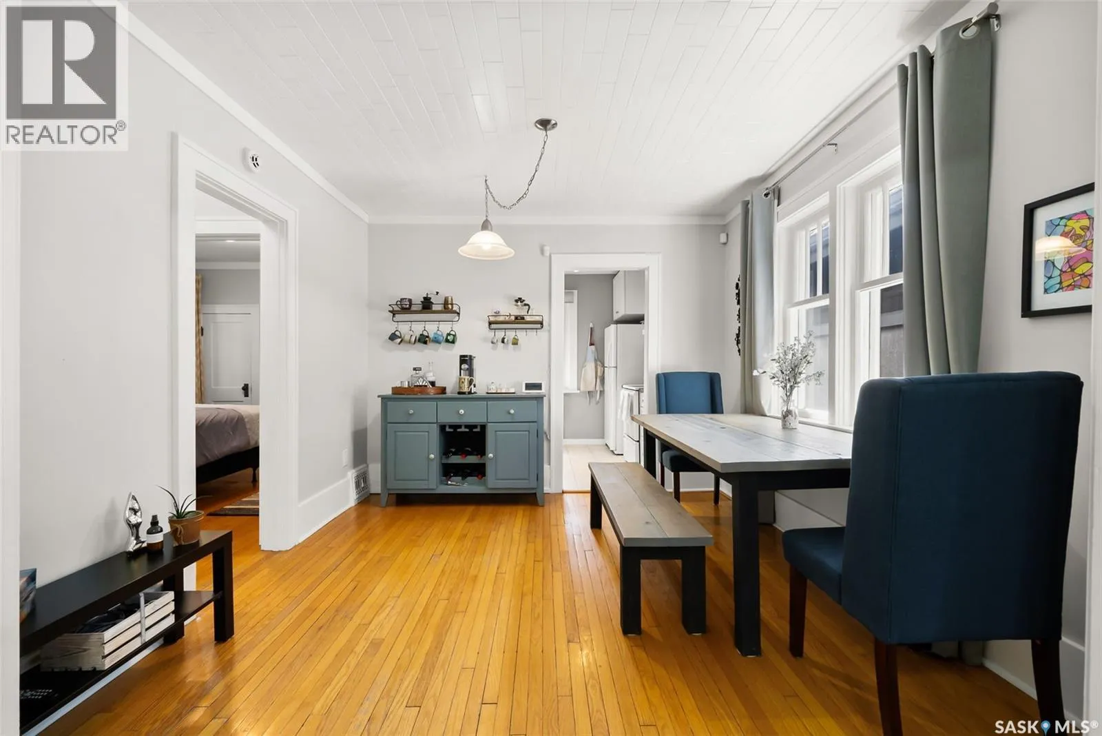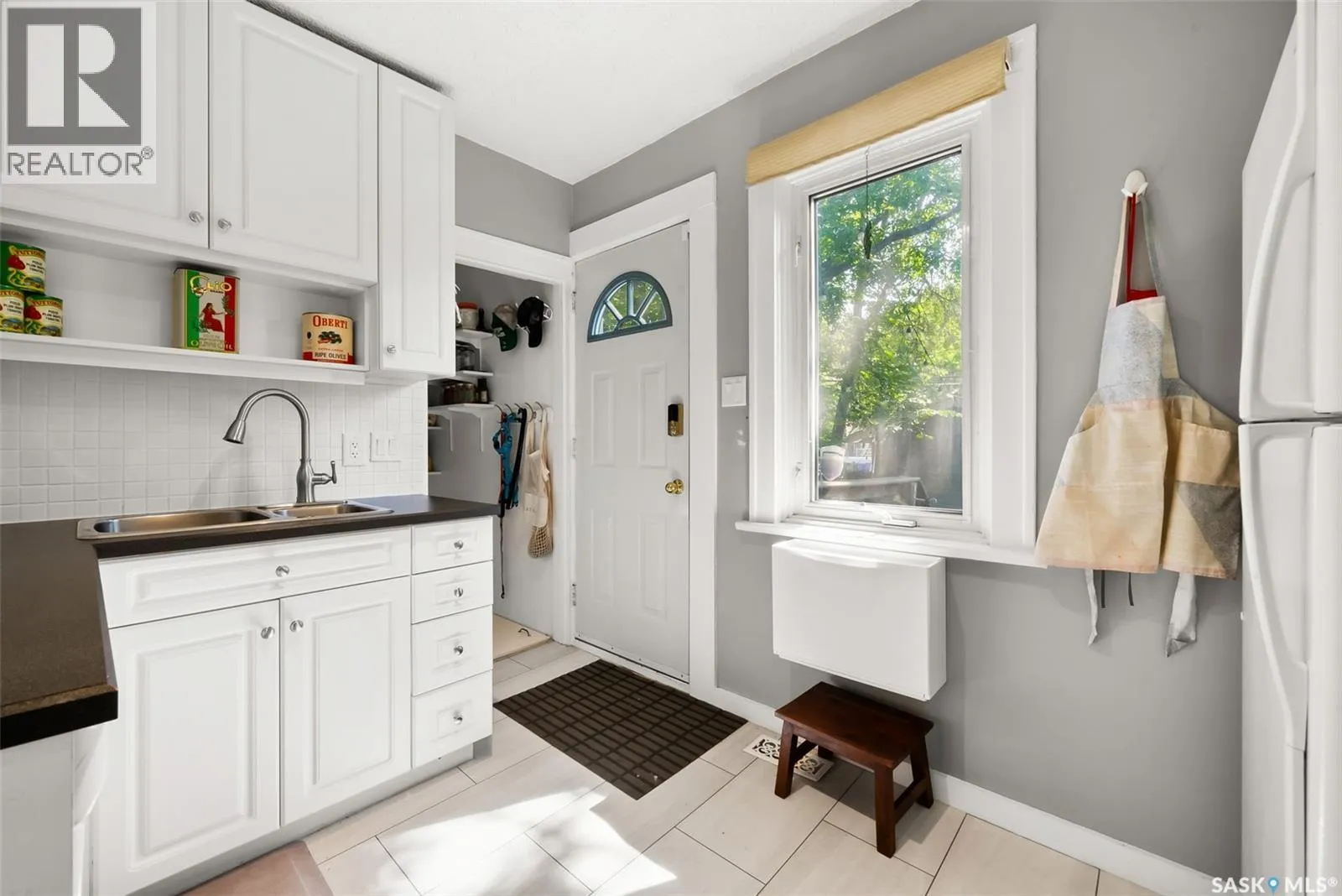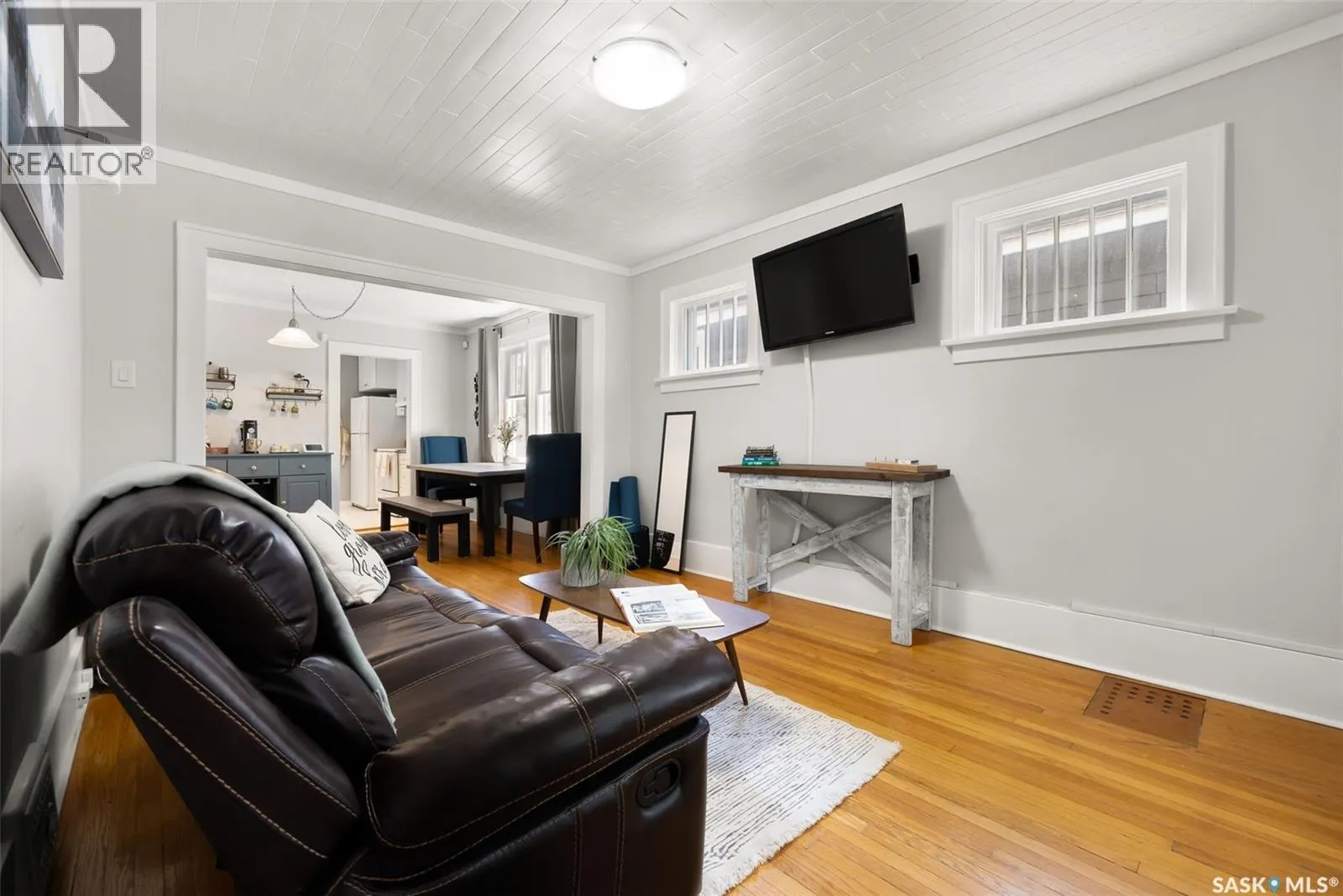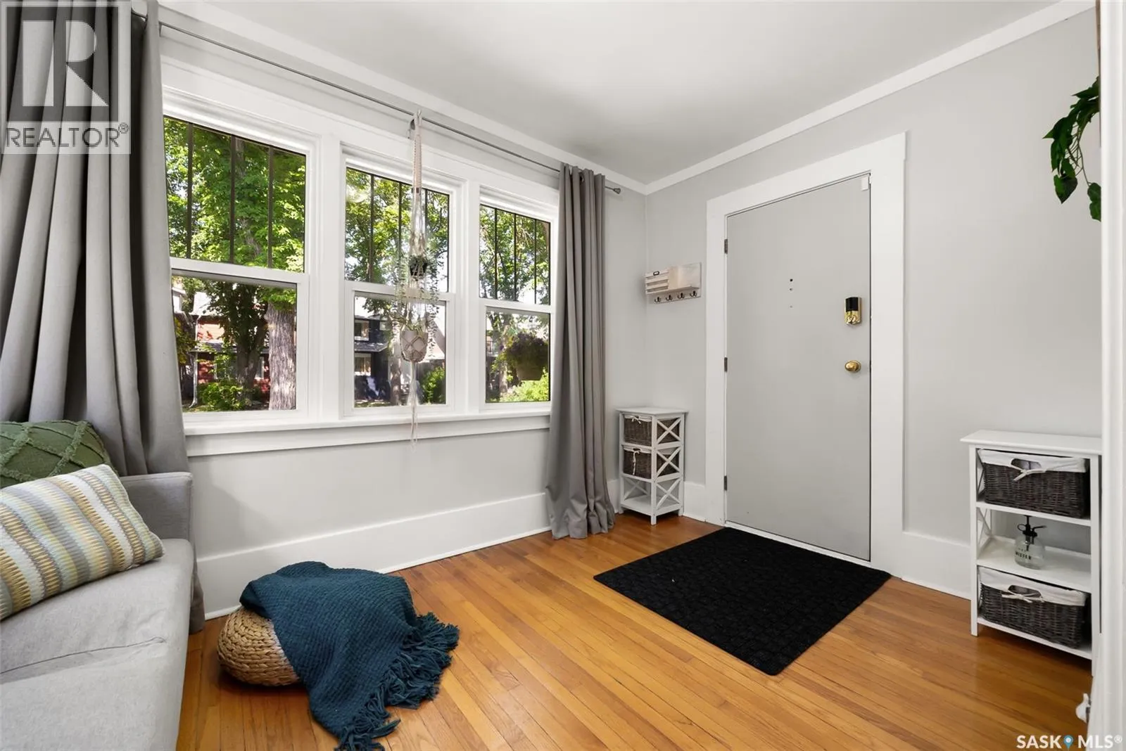 Welcome to 2061 Elphinstone Streetâperfectly situated in the heart of Reginaâs sought-after Cathedral neighborhood. Just steps from 13th Avenueâs trendy coffee shops, restaurants, and boutiques, and within walking distance to Mosaic Stadium, Brandt Centre, and Evraz Place, this home offers unbeatable access to local events and amenities. Inside, this inviting bungalow features a bright, sunlit sitting room, spacious living and dining areas, and original hardwood flooring that adds timeless character. Classic details like tall baseboards, crown molding, and plaster accents enhance the cozy atmosphere. The white kitchen offers a full appliance package and a unique foldaway pantry hatchâblending charm with functionality. The main floor includes two generously sized bedrooms and a beautifully updated 4-piece bathroom complete with vinyl plank flooring, a clawfoot tub, and modern vanity. Additional features include central A/C, a security system, and basement laundry. Enjoy the fully fenced and landscaped backyard with garden beds, patio space, single detached garage, and extra parking via the rear alley. Seller states upgrades include a full electrical replacement and new panel (2021), and half the windows replaced in 2023. Live the Cathedral lifestyleâwalk to the farmers market, catch a concert, or relax with a book from a local Little Free Library. Donât miss your chance to own this charming home in one of Reginaâs most vibrant communities. Book your showing today! (id:27476)