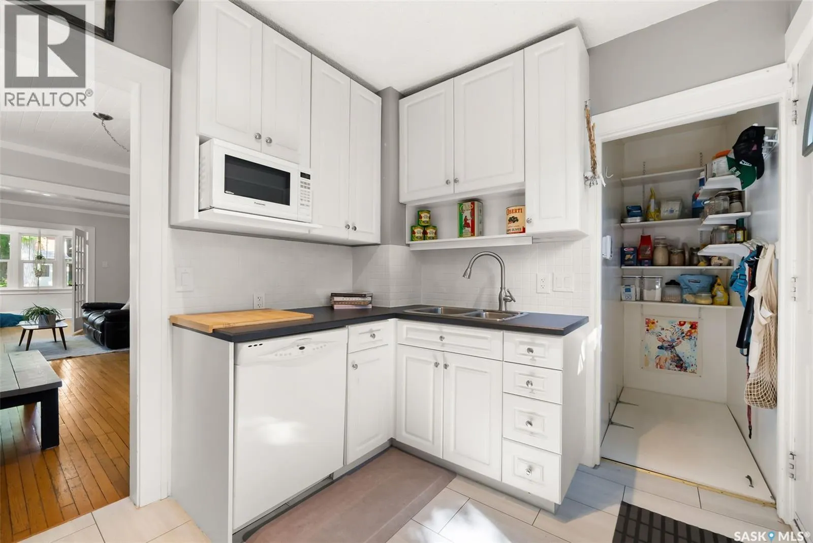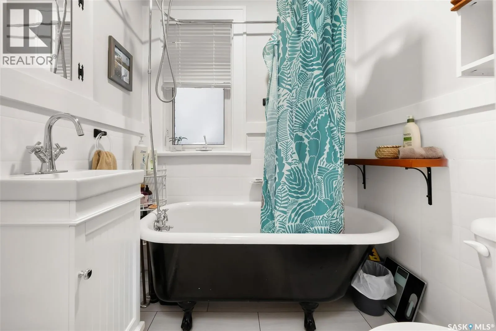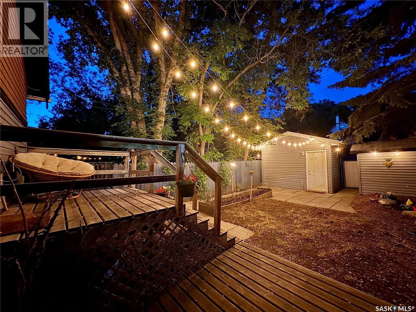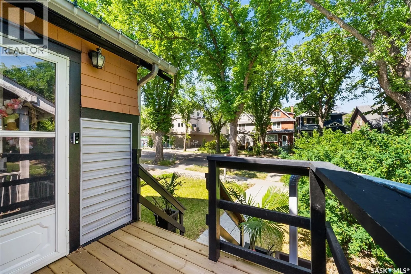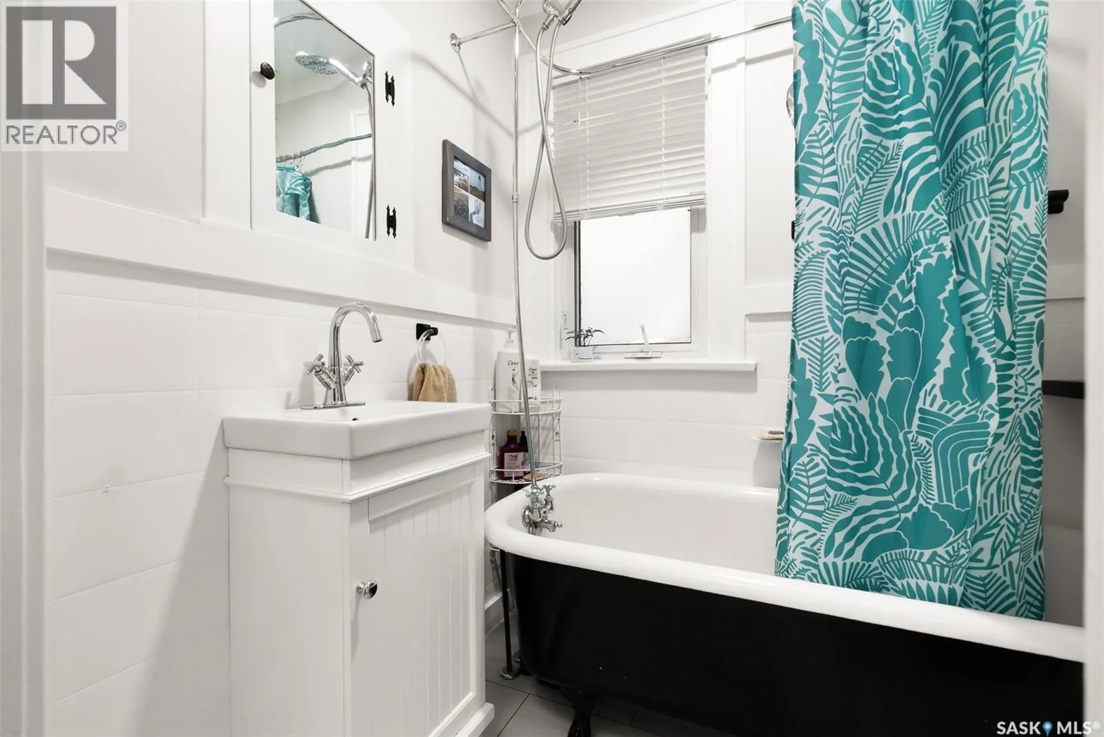 Welcome to 2061 Elphinstone Streetâperfectly situated in the heart of Reginaâs sought-after Cathedral neighborhood. Just steps from 13th Avenueâs trendy coffee shops, restaurants, and boutiques, and within walking distance to Mosaic Stadium, Brandt Centre, and Evraz Place, this home offers unbeatable access to local events and amenities. Inside, this inviting bungalow features a bright, sunlit sitting room, spacious living and dining areas, and original hardwood flooring that adds timeless character. Classic details like tall baseboards, crown molding, and plaster accents enhance the cozy atmosphere. The white kitchen offers a full appliance package and a unique foldaway pantry hatchâblending charm with functionality. The main floor includes two generously sized bedrooms and a beautifully updated 4-piece bathroom complete with vinyl plank flooring, a clawfoot tub, and modern vanity. Additional features include central A/C, a security system, and basement laundry. Enjoy the fully fenced and landscaped backyard with garden beds, patio space, single detached garage, and extra parking via the rear alley. Seller states upgrades include a full electrical replacement and new panel (2021), and half the windows replaced in 2023. Live the Cathedral lifestyleâwalk to the farmers market, catch a concert, or relax with a book from a local Little Free Library. Donât miss your chance to own this charming home in one of Reginaâs most vibrant communities. Book your showing today! (id:27476)