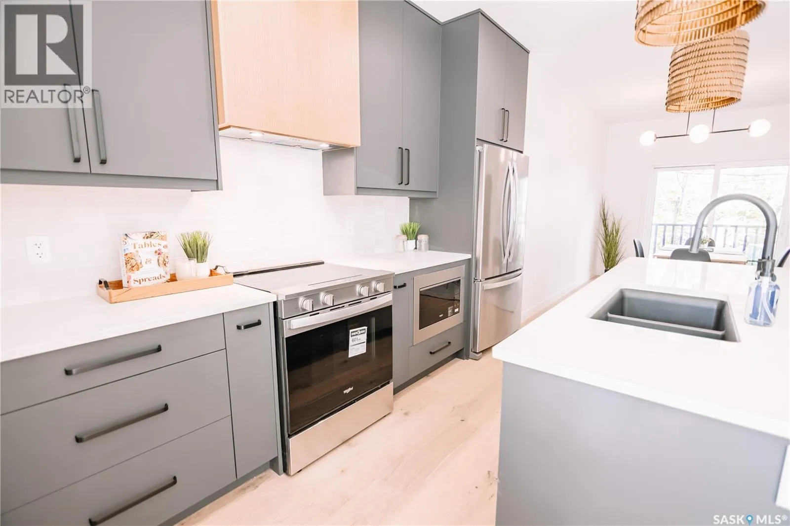 Welcome to 2804 14th Avenue, a brand-new, architecturally striking development by West Oak in the heart of Reginaâs Cathedral neighbourhood. This captivating townhouse condo brings modern sophistication to one of the cityâs most sought-after and walkable communities â just steps from Les Sherman Park, Safeway, 13th Avenue boutiques and cafés, top-rated schools, and downtown Regina. This 2½-story townhouse-style condo showcases over 2,200 sq. ft. of contemporary living space, thoughtfully designed to maximize light, comfort, and functionality. The main level welcomes you with an inviting open-concept layout featuring floor-to-ceiling windows, 9-foot ceilings, and sleek hardwood flooring that create a bright, airy atmosphere. The modern kitchen serves as the centerpiece of the home, complete with quartz countertops, high-end cabinetry, and premium finishes that perfectly complement the propertyâs refined aesthetic. Upstairs, the second level offers spacious bedrooms and beautifully appointed bathrooms, including a tiled ensuite shower that provides a spa-like retreat. Continuing upward, youâll find the stunning rooftop patio â a private outdoor oasis perfect for morning coffee, evening cocktails, or entertaining guests under the Cathedral skyline. Every unit includes a single detached garage and benefits from being part of a comprehensive redevelopment initiative designed for longevity, energy efficiency, and timeless style. These homes represent the perfect fusion of modern living and vibrant community, delivering a new level of luxury and design to Reginaâs historic Cathedral area. Contact your REALTOR® today to experience the future of Cathedral living with West Oak Developments. (id:27476)