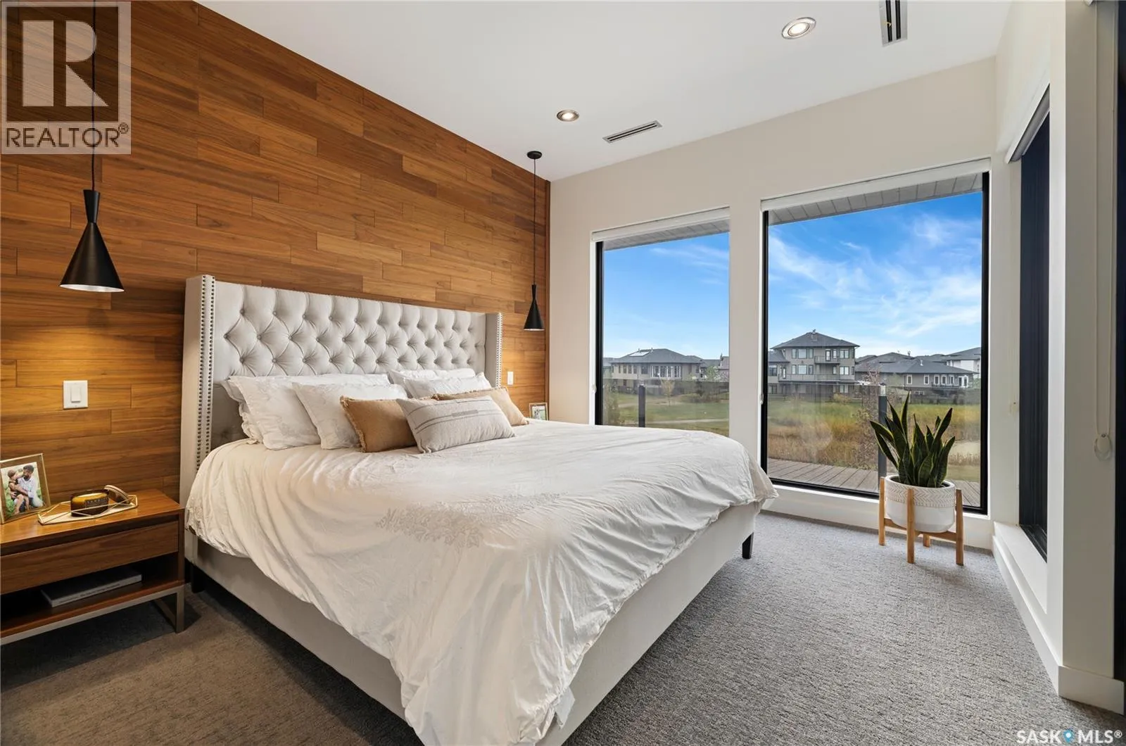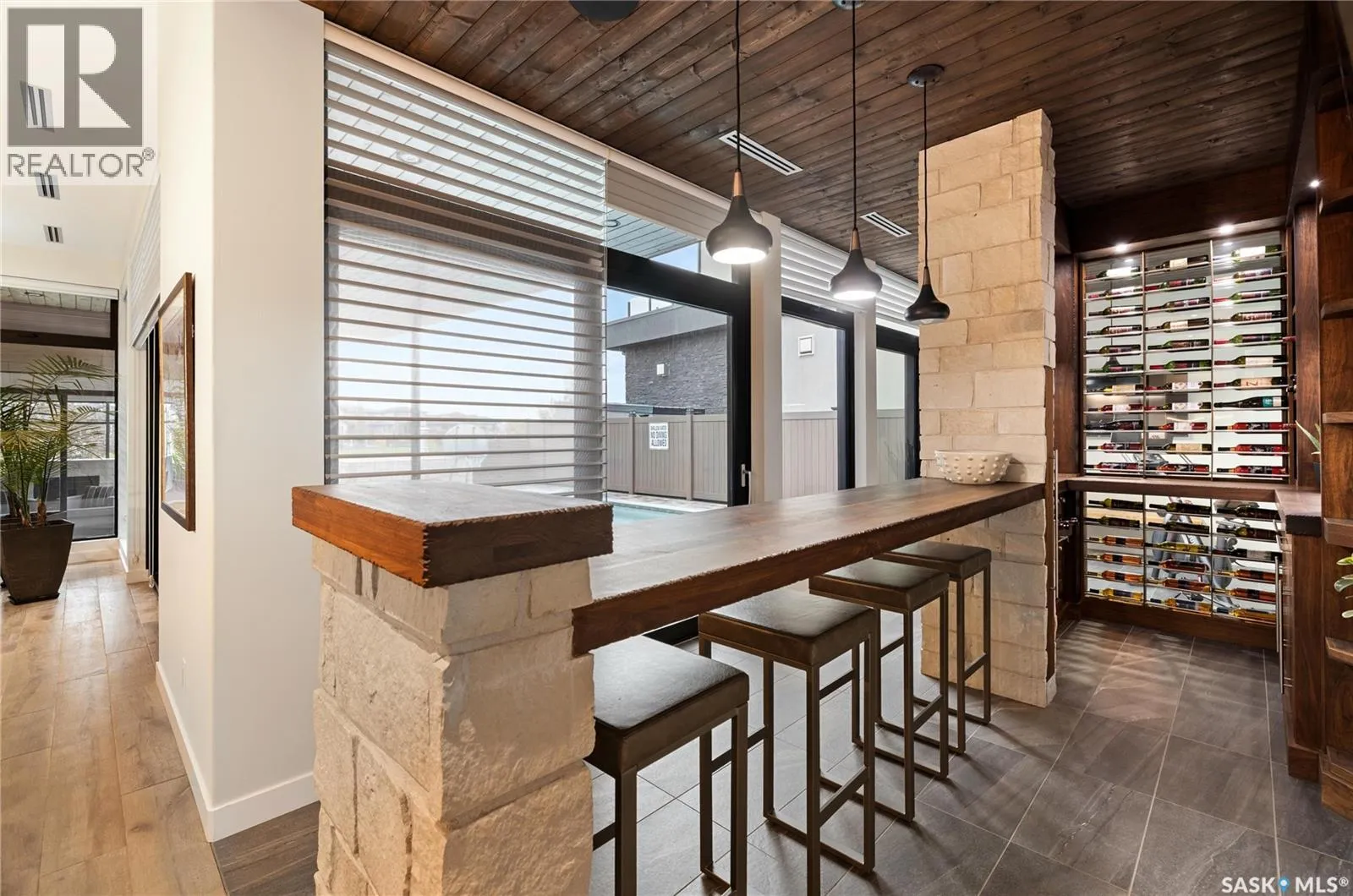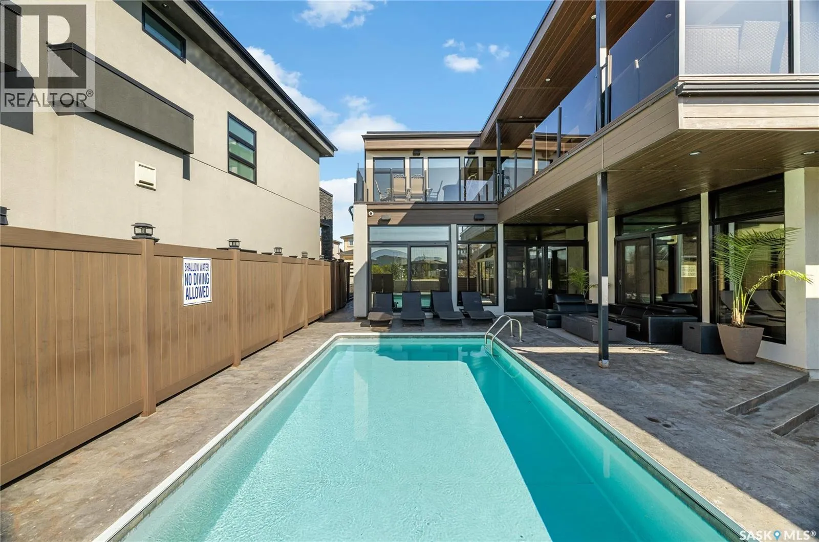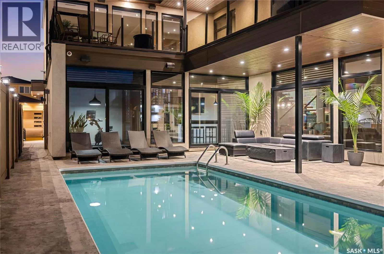 This is more than a homeâitâs an experience. Where modern design meets timeless elegance, every detail invites you to slow down & take it in. Floor-to-ceiling windows flood the main level with natural light, framing views of the park & your private pool. The open living area centers around a striking fireplace, while the walnut & white two-tone kitchen delivers both warmth & sophistication. The dining area is complemented by a glass wine cellar & a versatile reading nook or gym that opens directly to the pool terrace. A front office with custom walnut built-ins provides a refined workspace. Upstairs, the primary suite is a true retreatâcomplete with a private terrace for sunset views, a spa-inspired ensuite with a deep soaker tub, & elegant finishes throughout. The upper-level family lounge features a coffee bar, study nook, & access to the covered terrace, perfect for morning light or evening calm. Down the hall, two bedrooms with built-ins share a stylish 4-piece bath, while a private guest bedroom enjoys its own balcony overlooking the street. A flexible den or dance room offers space for yoga, hobbies, or quiet escape. Step outside to your private backyard oasis featuring a three-season pool house & a serene park backdrop. Built using Bone Structure® steel framing, this home stands apart for its precision engineering & efficiencyâSIP panel construction, in-floor heating, forced-air on-demand heat/cooling, & spray foam insulation for comfort & sound control. Recognized with the 2015 RRHBA Innovation Award, it was crafted by its original builder-owner with no detail overlooked. Every surface, texture, & sightline was designed to elevate the sensesâfrom ceramic wood-look floors & rich walnut detailing to soaring ceilings & ever-changing natural light. Experience the difference. Schedule your private viewing today. (id:27476)