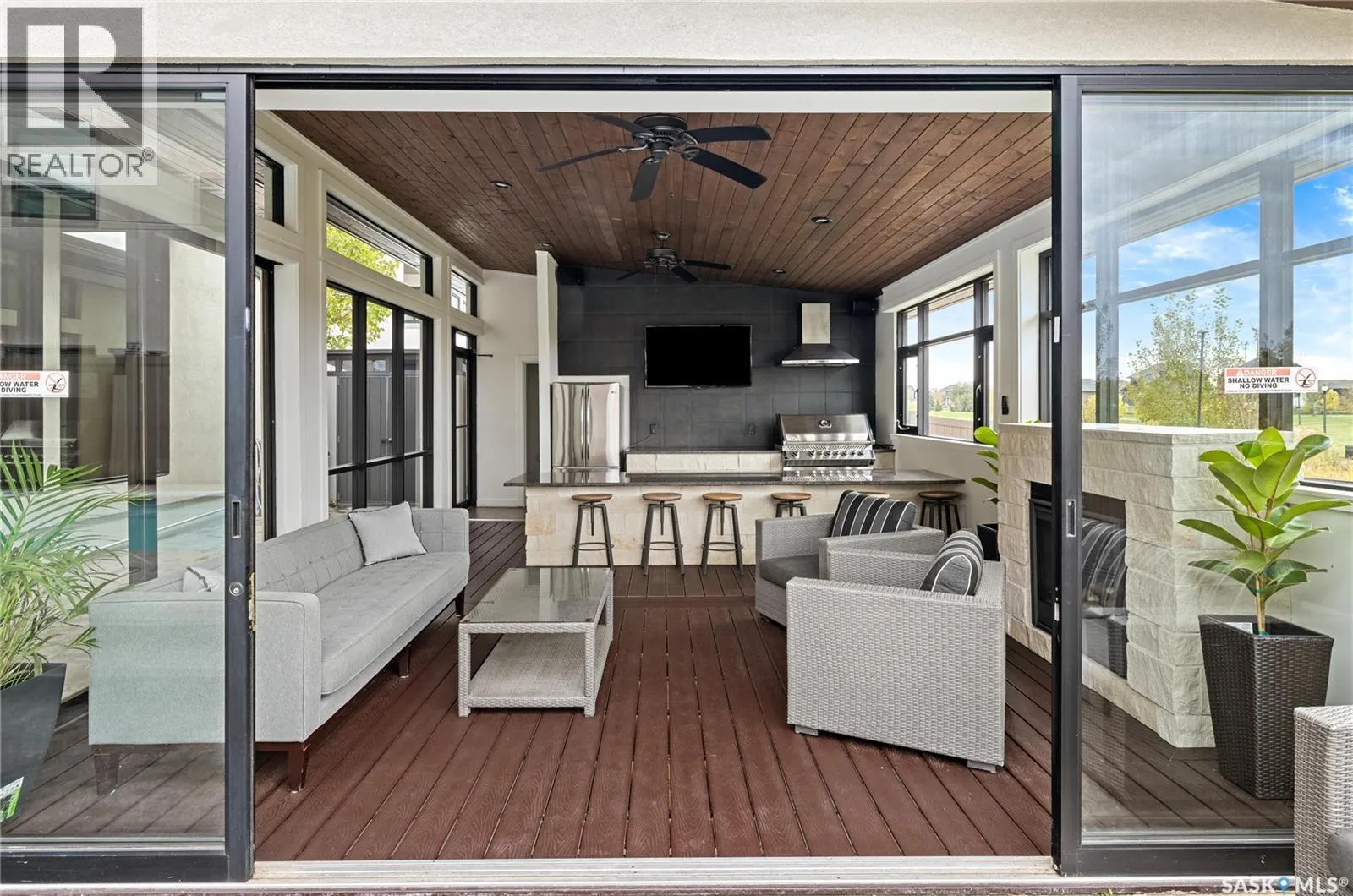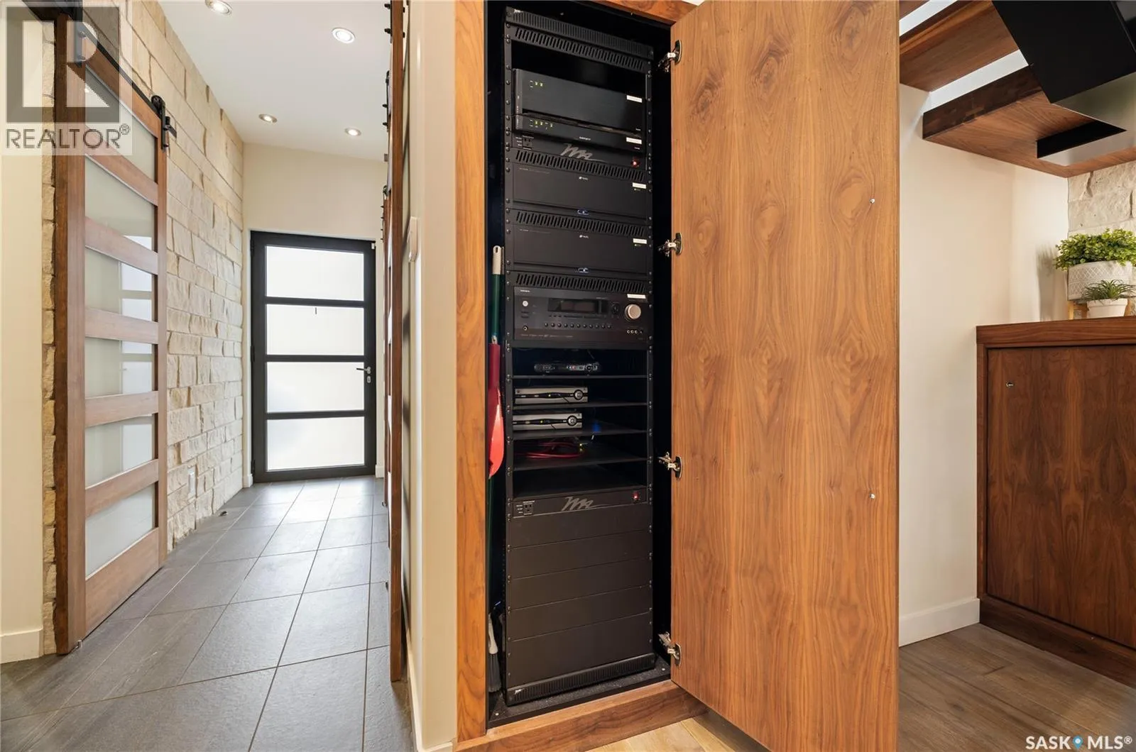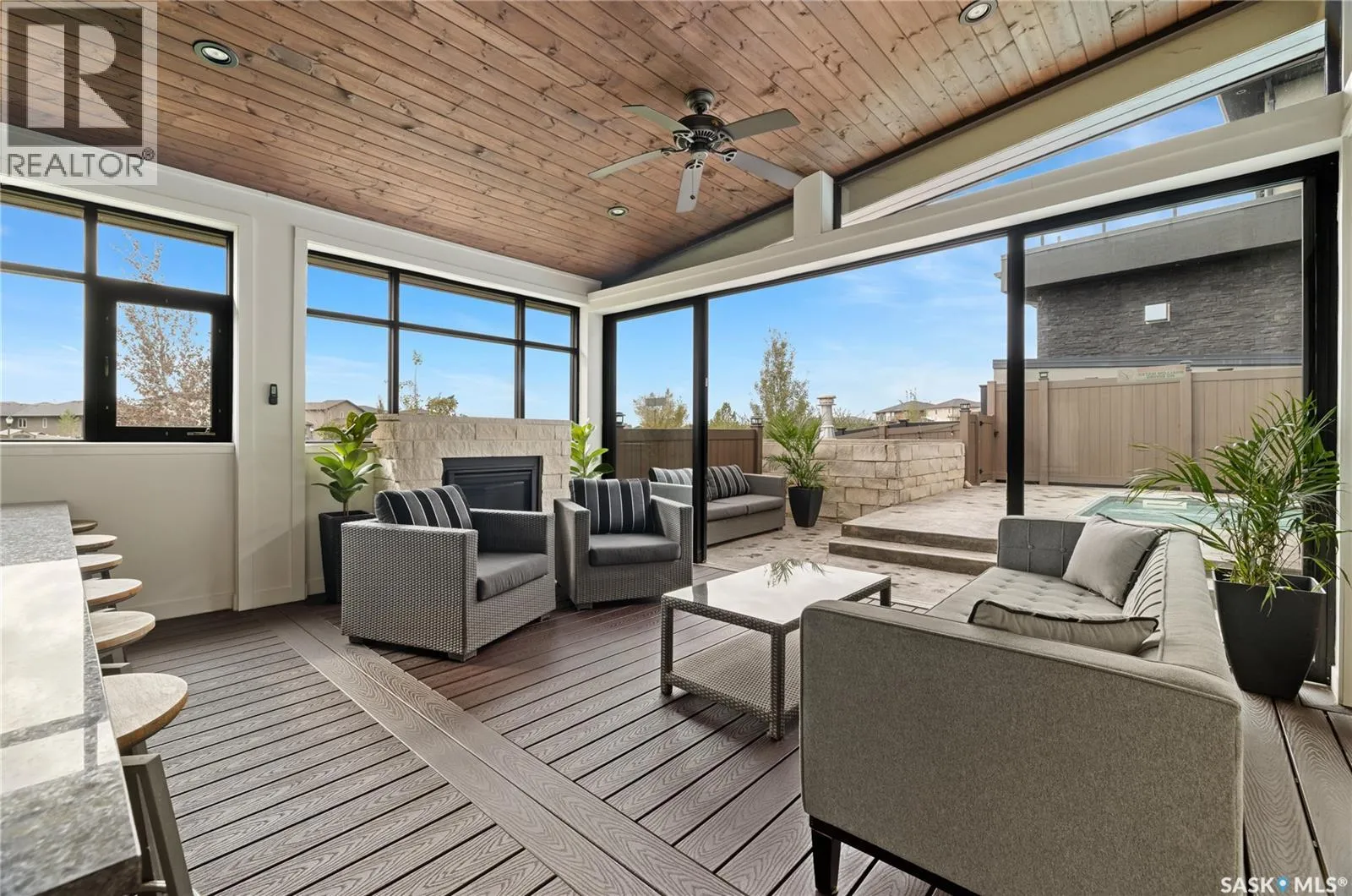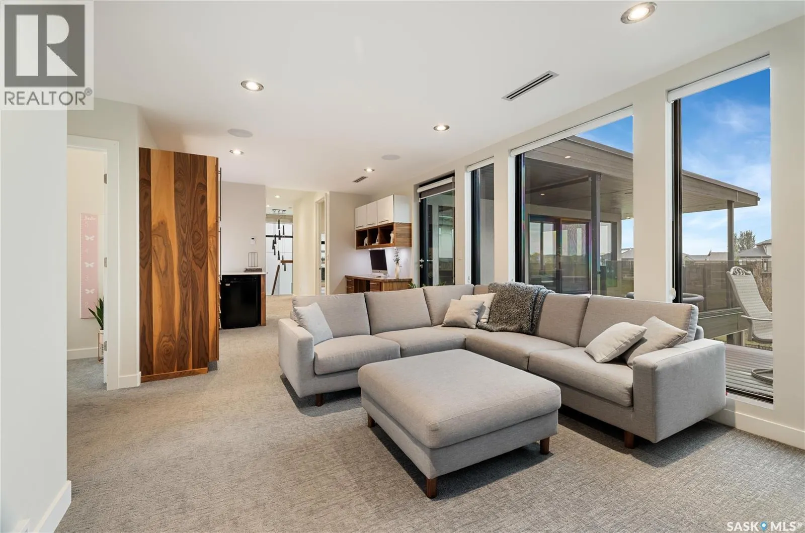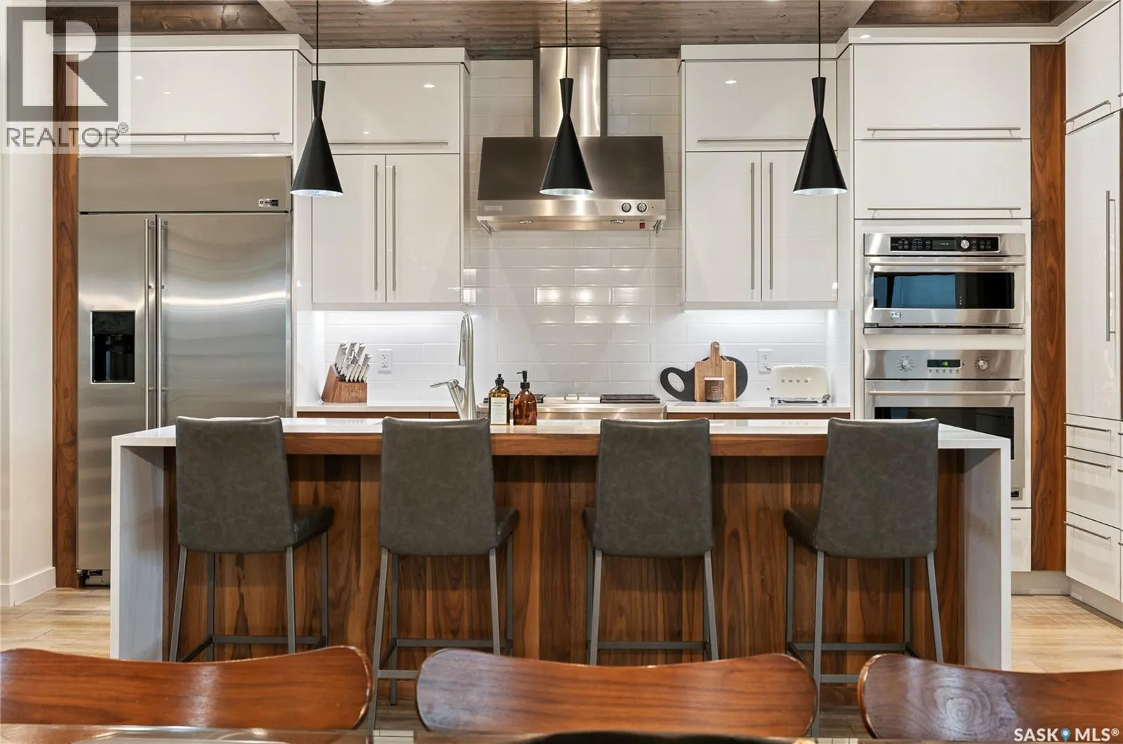 This is more than a homeâitâs an experience. Where modern design meets timeless elegance, every detail invites you to slow down & take it in. Floor-to-ceiling windows flood the main level with natural light, framing views of the park & your private pool. The open living area centers around a striking fireplace, while the walnut & white two-tone kitchen delivers both warmth & sophistication. The dining area is complemented by a glass wine cellar & a versatile reading nook or gym that opens directly to the pool terrace. A front office with custom walnut built-ins provides a refined workspace. Upstairs, the primary suite is a true retreatâcomplete with a private terrace for sunset views, a spa-inspired ensuite with a deep soaker tub, & elegant finishes throughout. The upper-level family lounge features a coffee bar, study nook, & access to the covered terrace, perfect for morning light or evening calm. Down the hall, two bedrooms with built-ins share a stylish 4-piece bath, while a private guest bedroom enjoys its own balcony overlooking the street. A flexible den or dance room offers space for yoga, hobbies, or quiet escape. Step outside to your private backyard oasis featuring a three-season pool house & a serene park backdrop. Built using Bone Structure® steel framing, this home stands apart for its precision engineering & efficiencyâSIP panel construction, in-floor heating, forced-air on-demand heat/cooling, & spray foam insulation for comfort & sound control. Recognized with the 2015 RRHBA Innovation Award, it was crafted by its original builder-owner with no detail overlooked. Every surface, texture, & sightline was designed to elevate the sensesâfrom ceramic wood-look floors & rich walnut detailing to soaring ceilings & ever-changing natural light. Experience the difference. Schedule your private viewing today. (id:27476)