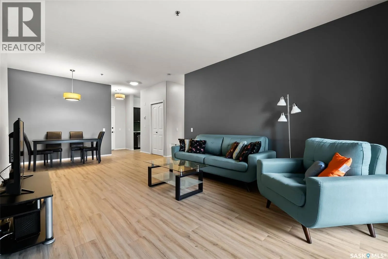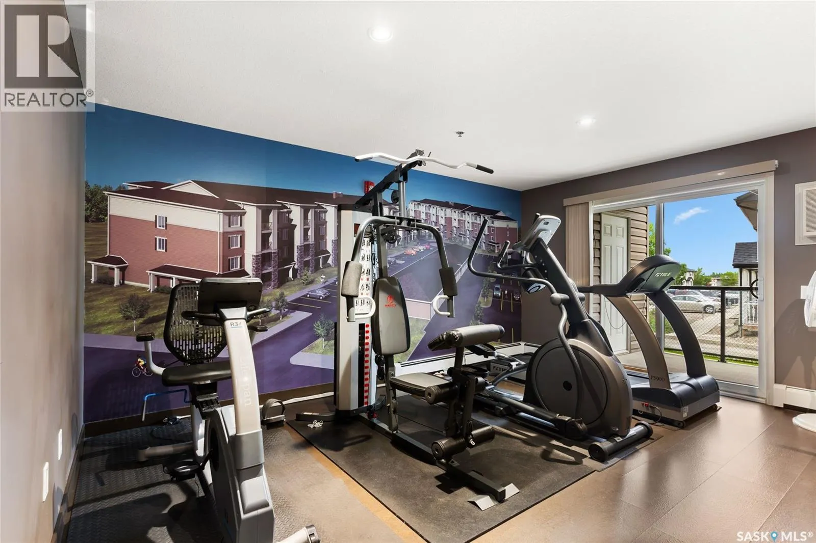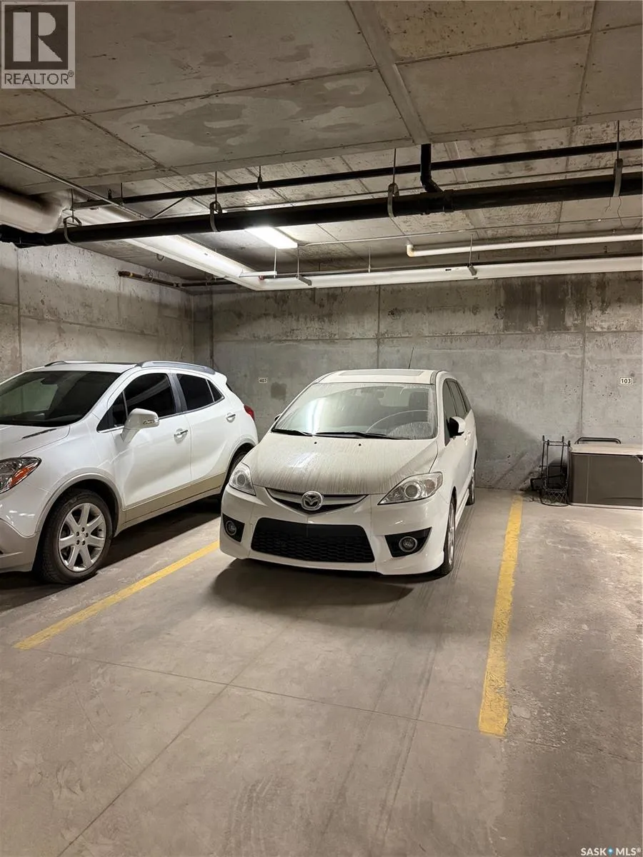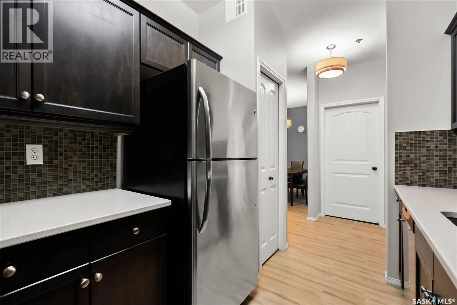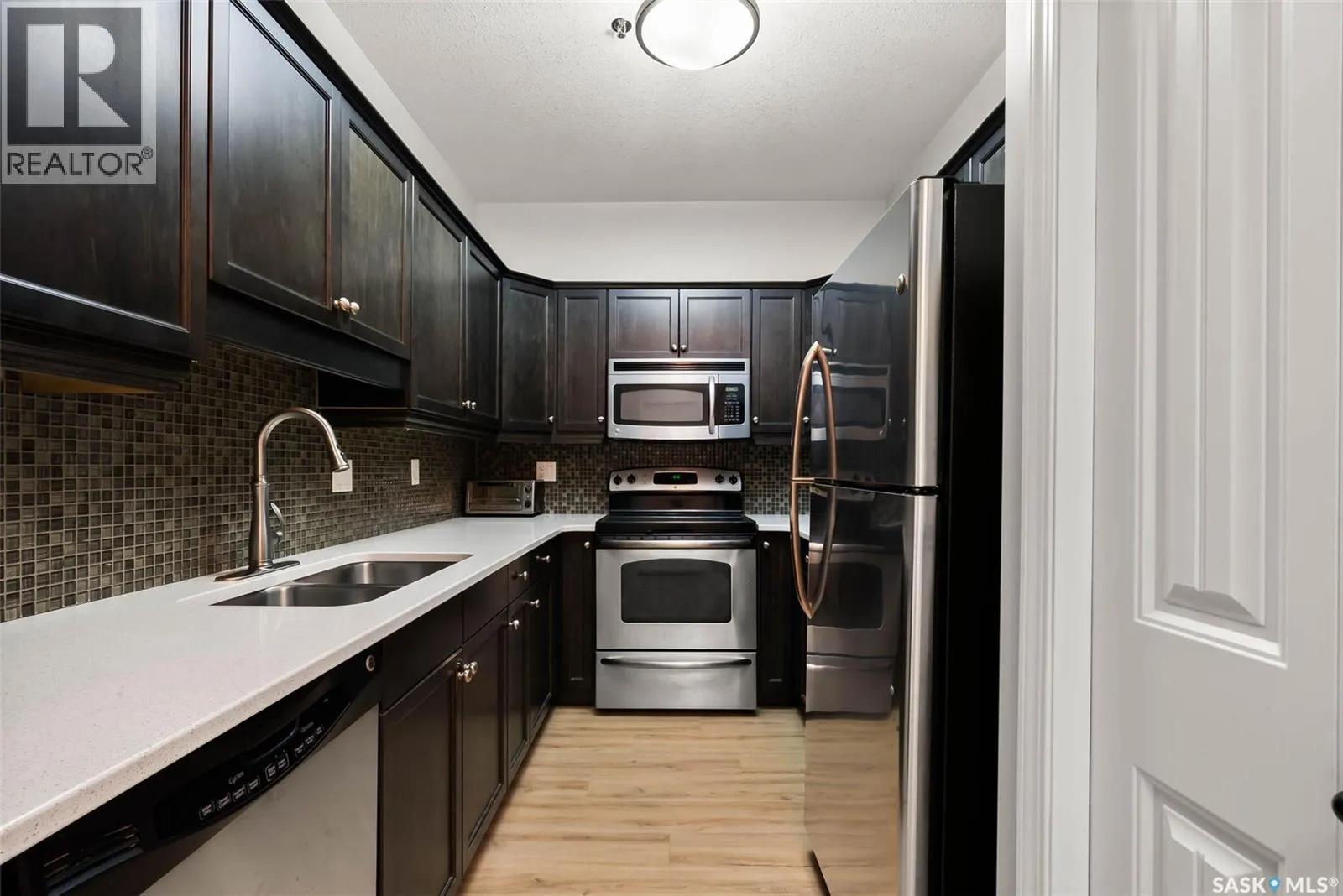 Welcome to this beautiful main floor condo in the desirable Lakeridge area! This 1,030 sq ft, two bedroom apartment style unit offers a bright and open layout, ideally located close to shopping, restaurants, grocery stores, and coffee shops. Positioned on the west side of the building, it overlooks peaceful park space. The kitchen features maple cabinetry, quartz countertops, and stainless steel appliances, opening to the dining area and spacious living room. From the living room, step out to your covered patio with a convenient storage/utility room. The primary bedroom includes a 3 piece ensuite and walk-in closet, while a second bedroom, 4 piece main bath, and in-suite laundry/storage room complete the home. Enjoy one underground parking stall, access to the main floor lounge, and the fitness room in the East building. Condo fees cover heat, water, sewer, exterior and common area maintenance, lawn care, snow removal, building insurance, and the reserve fund. (id:27476)