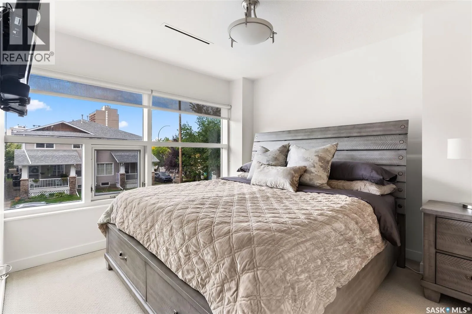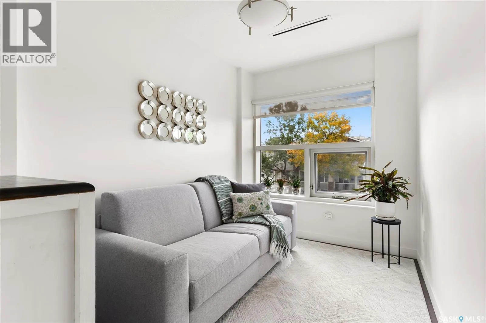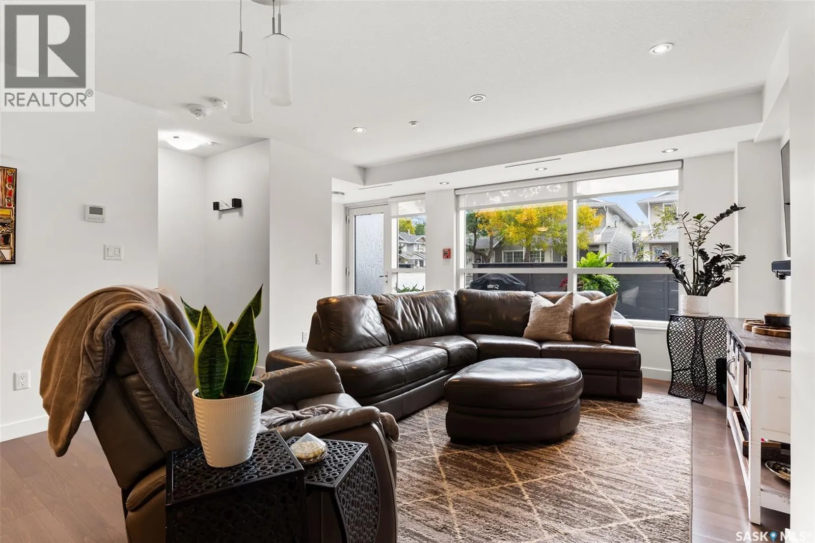 Welcome to this unique and stylish condo ideally located in Reginaâs Transition area. Bright and open the main floor offers expansive windows, a street-level entrance and private outdoor patio area. Step inside and you will be welcomed to a modern kitchen with plenty of prep space, matching appliances and living and dining areas ideal for entertaining. A thoughtful pantry, designated mudroom and direct access to the underground parking complete this floor. Upstairs, enjoy a spacious primary suite with walk-in closet and luxurious 4-piece ensuite. Here you will also find a versatile den, 2nd full bathroom and laundry/storage room. Additional perks include generous underground parking with storage unit, access to the roof top patio, walking track and fitness centre and condo fees that include heat and water utilities. With its unbeatable location, smart layout and elevated finish this condo is the perfect blend of comfort, style and convenience. (id:27476)