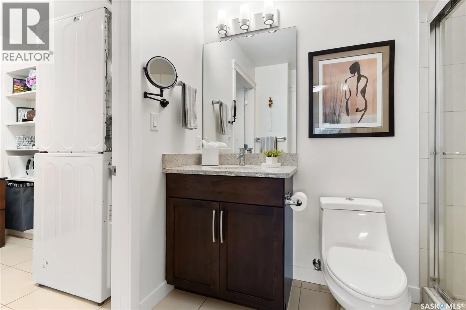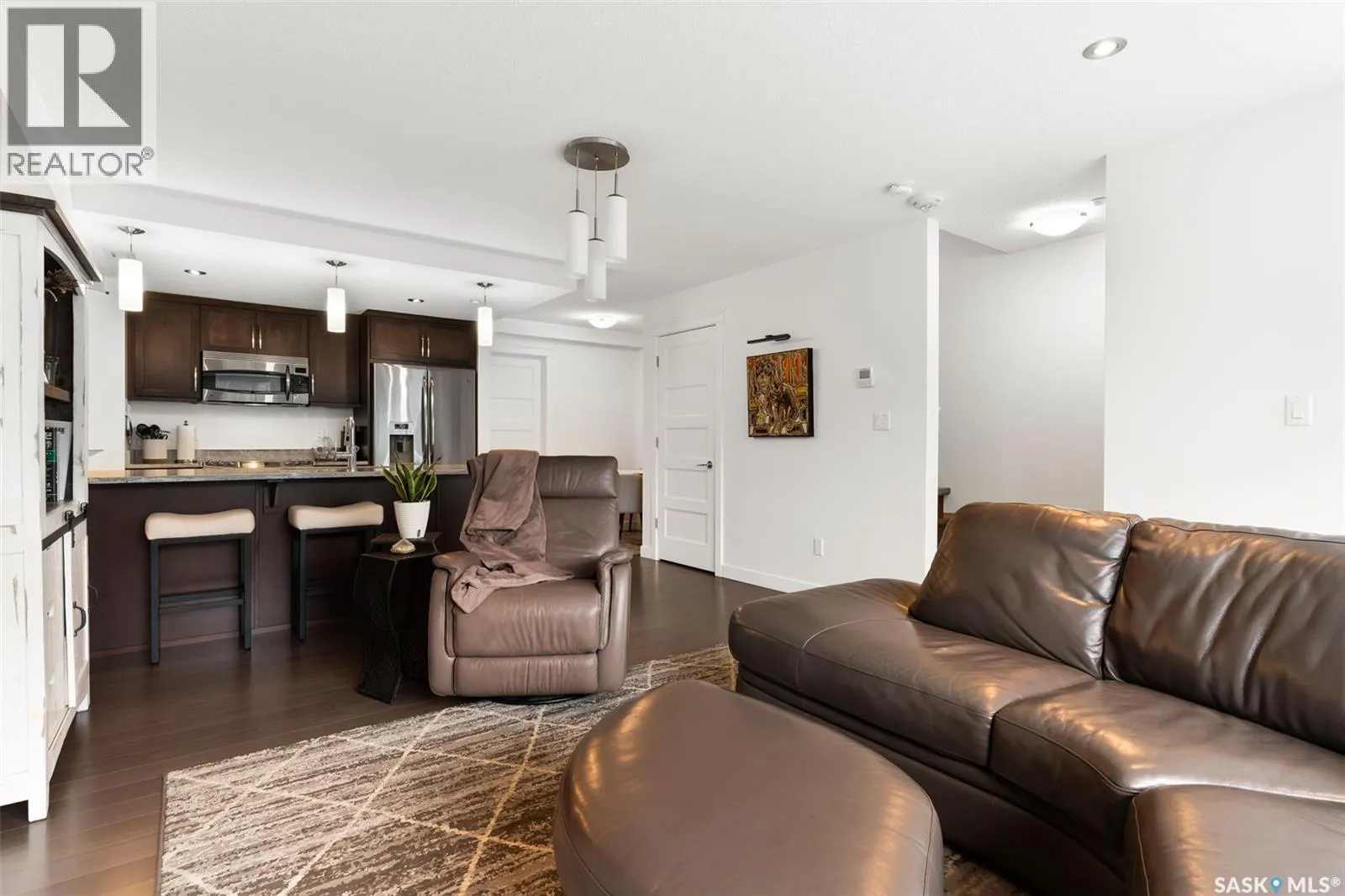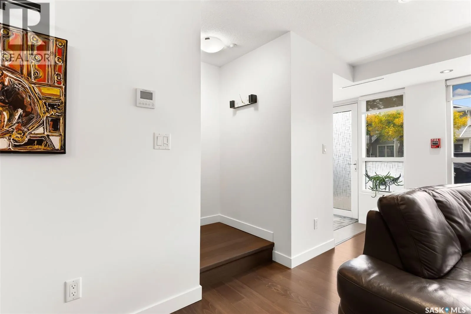 Welcome to this unique and stylish condo ideally located in Reginaâs Transition area. Bright and open the main floor offers expansive windows, a street-level entrance and private outdoor patio area. Step inside and you will be welcomed to a modern kitchen with plenty of prep space, matching appliances and living and dining areas ideal for entertaining. A thoughtful pantry, designated mudroom and direct access to the underground parking complete this floor. Upstairs, enjoy a spacious primary suite with walk-in closet and luxurious 4-piece ensuite. Here you will also find a versatile den, 2nd full bathroom and laundry/storage room. Additional perks include generous underground parking with storage unit, access to the roof top patio, walking track and fitness centre and condo fees that include heat and water utilities. With its unbeatable location, smart layout and elevated finish this condo is the perfect blend of comfort, style and convenience. (id:27476)