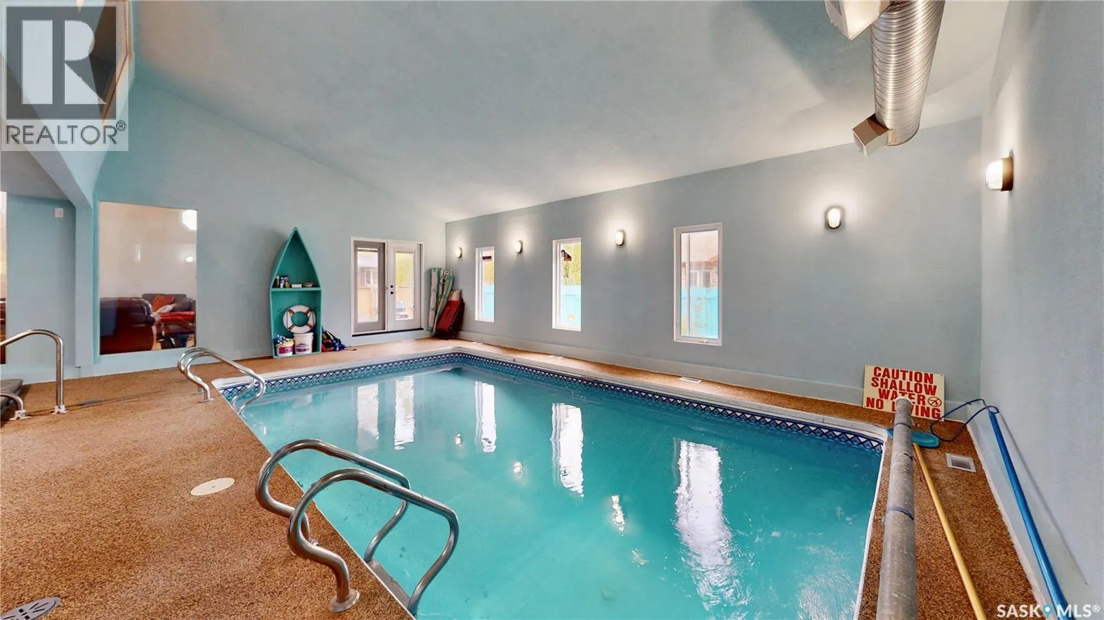 Tucked in one of Reginaâs most sought-after east-end neighborhoods, this 3365 sq/ft home sits proudly on a spacious 6200 sq/ft corner lot just steps away from W.S. Hawrylak School and the University of Regina. Perfect for large or growing families. With extensive renovations completed in 2025, this property combines impressive updates with everyday comfort. The highlight of the home is the indoor pool, offering year-round enjoyment. The pool area received a full overhaul that includes a new HVAC system, high-efficiency furnace, on-demand water heater, new shower, upgraded electrical and plumbing, fresh stucco, windows and doors, and waterproofing throughout. Even the pipe from the skimmer to the pump has been lined to prevent leaks, and a new pool cover is on order. Every detail was carefully considered to create a clean, functional, and efficient space. Inside, the kitchen features custom-built cabinetry topped with black granite counters and ceramic tile flooring. Under the bay window, spray foam insulation was added for efficiency. The upper level has seen a complete refresh with new vinyl flooring, updated electrical and lighting in the media room, new interior doors, and all new windows. The upstairs bathrooms have new fans and exterior vent piping, and modern lighting brightens the stairway. The cozy wood-burning fireplace, finished with ledgestone grey tile, was redone in 2017. The home is supported by two steel main beams, and the living room sits on piles for lasting stability. Other notable features include main floor laundry, central vacuum, a double attached garage, underground sprinklers in the front and back, and professional interior painting throughout. The attic insulation was fully replaced and blown in new, while the exterior shines with new shingles, eaves, fascia, soffits, and windows, all completed in 2025. This is a rare opportunity to own a truly unique property that offers both size and substance in a prime Regina location. (id:27476)