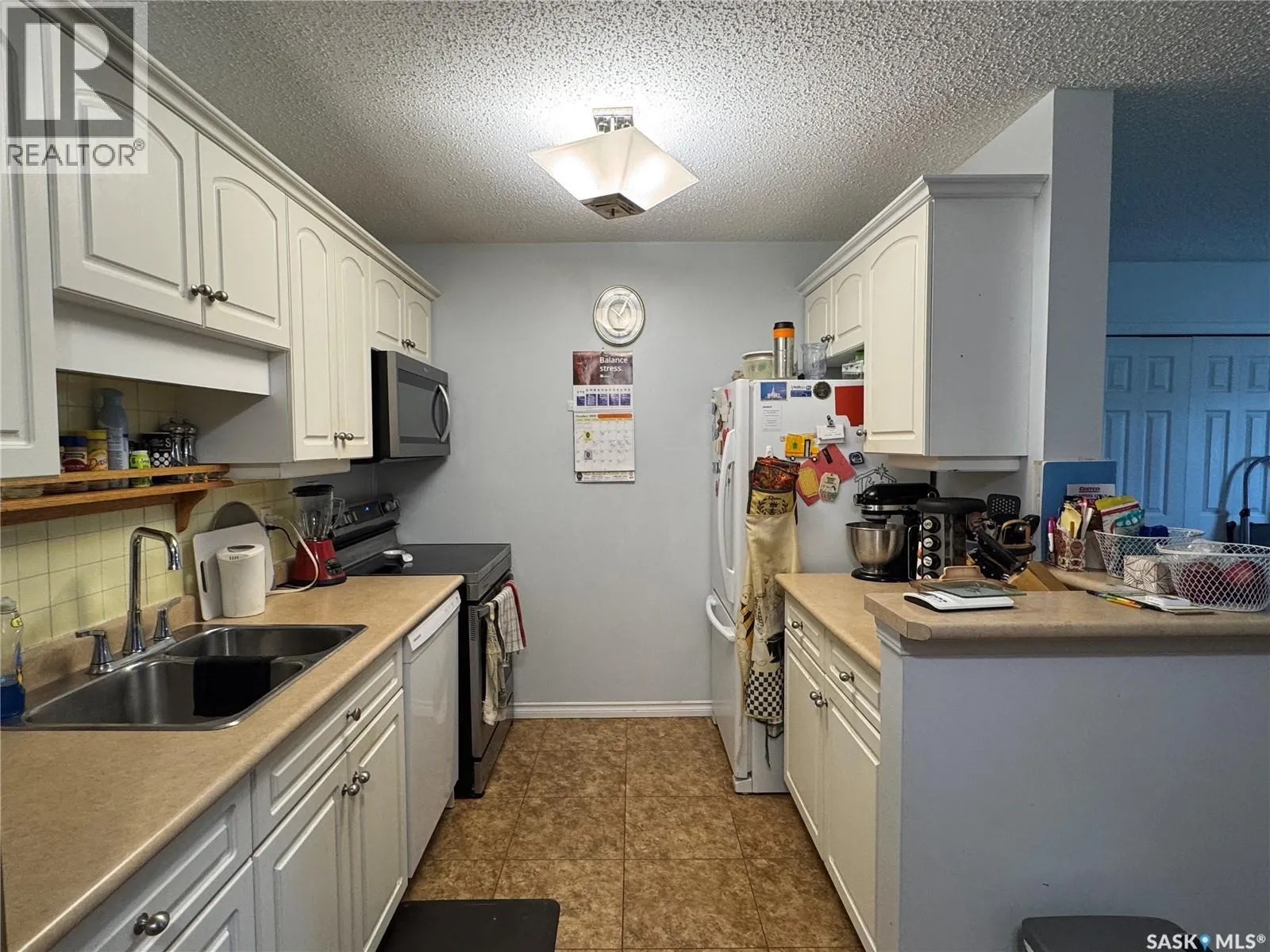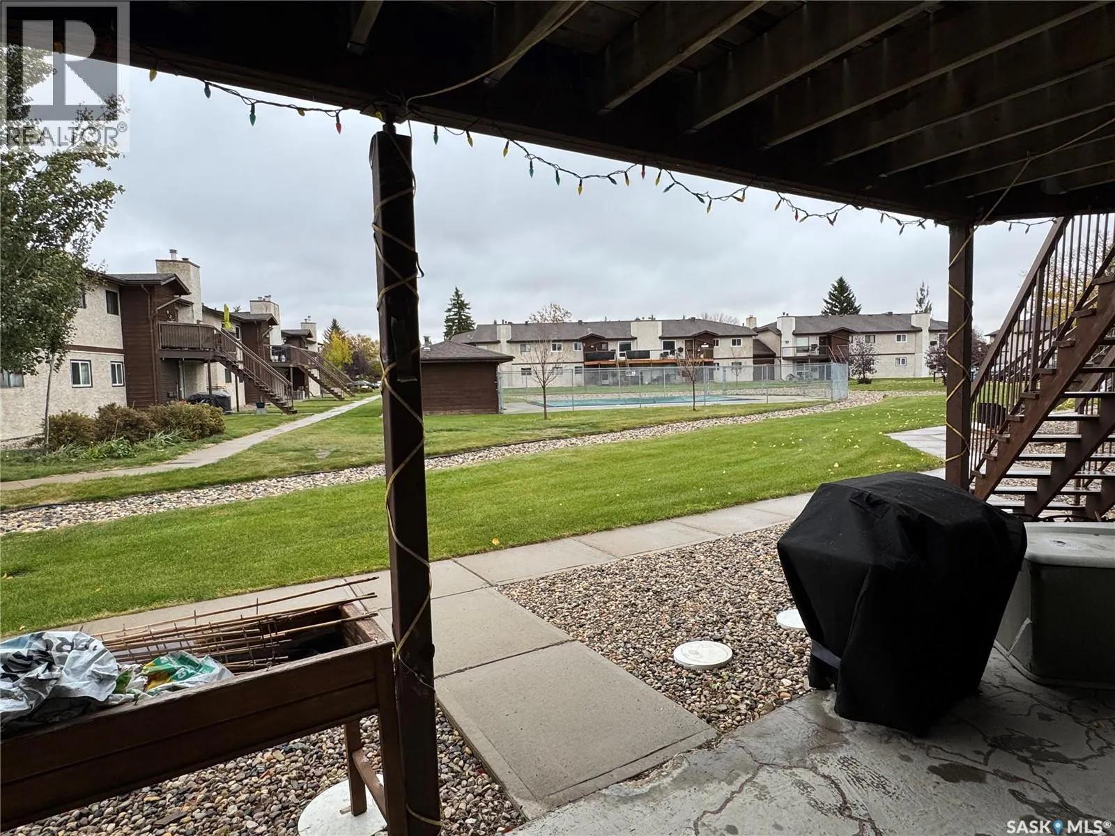 Well cared for main floor condo with unobstructed views of the courtyard and swimming pool. This is a very desirable unit with two bedrooms and two bathrooms. The primary bedroom and ensuite are located on one end of the condo and the second bedroom and bathroom on the opposite end of the unit with the kitchen, dining room, and living room in the middle of the condo. The kitchen cabinets have been replaced with additional cabinets and a pantry added. The kitchen is very functional with ample counter space and mostly open to the living room and dining room. There is in-suite laundry in a separate utility room that also has storage and a freezer that is included. (id:27476)