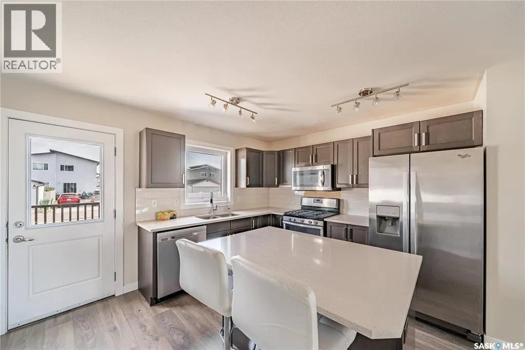 Plan: 102177503 Block: 76 Lot: 53 Welcome to 5580 McKenna Road â Built on Piles & NO Condo Fees! This attractive corner former show suite townhome offers exceptional curb appeal with upgraded acrylic stucco, faux cedar planking, stone accents, and elegant archways. Step inside to a spacious open-concept main floor, featuring a large family room and seamless flow between the living, dining, and kitchen areas. The kitchen is designed for function and style with abundant cabinetry and a generous island, perfect for both everyday cooking and entertaining. For added convenience, the main level also includes a tucked-away laundry area and a handy powder room and 2-piece bathroom. Upstairs, youâll find two well-sized secondary bedrooms, each with oversized closets, and a bright 4-piece main bathroom. The primary suite is a true retreat, complete with its own 3-piece ensuite and a dream walk-in closet. Located just steps from a large play park and the walking paths of Harbour Landing, this home combines style, comfort, and convenience with easy access to all corners of the city. Built by Pacesetter Homes â this property is a must-see! (id:27476)