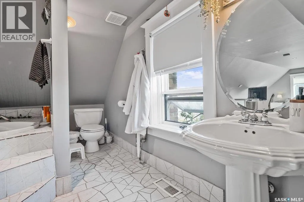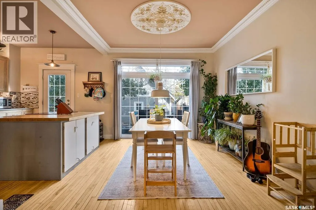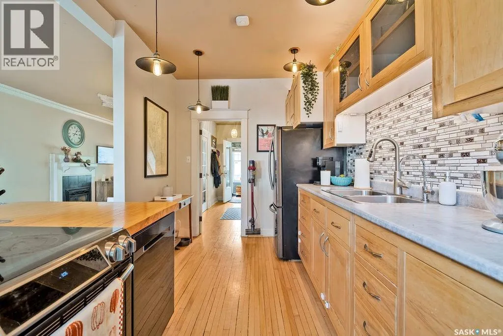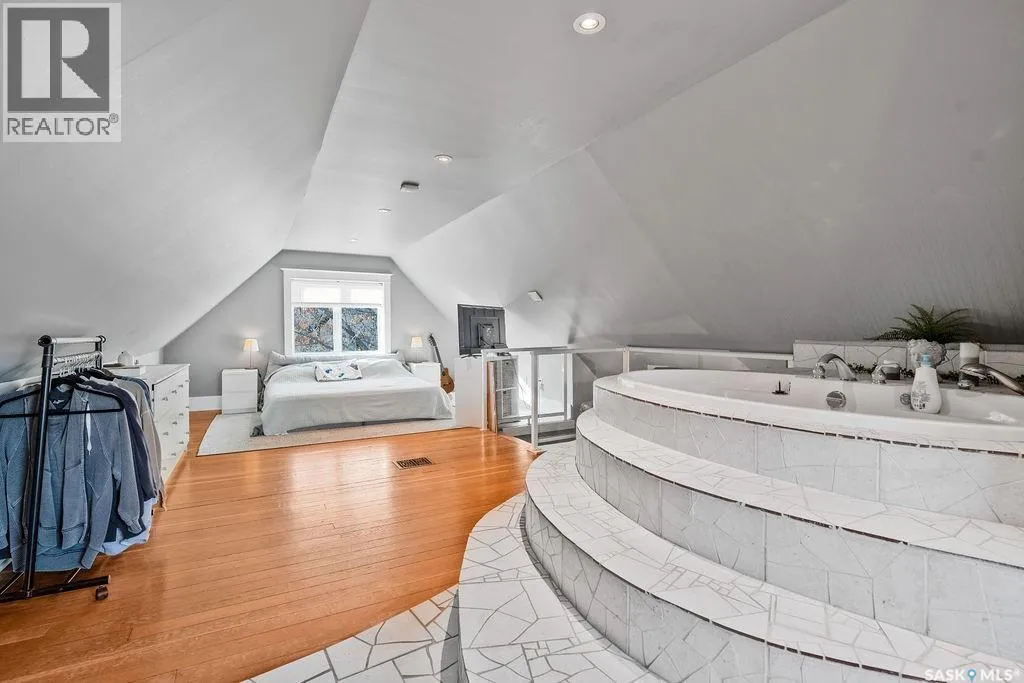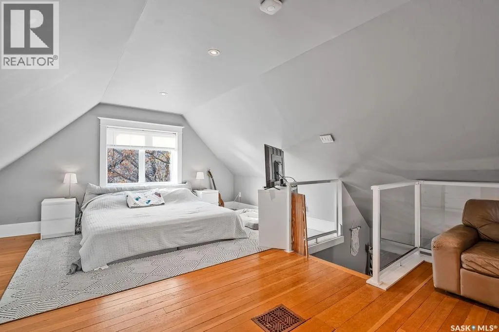 Welcome to Cathedral â a vibrant community known for its charming character, walkable lifestyle, and local shops! If youâve been dreaming of morning coffee runs and a friendly neighbourhood vibe, 2137 Cameron Street might just be the one. This 1601 sq ft 2 ½ storey home blends classic charm with modern comfort. A large and inviting front porch greets you at the door - the perfect spot to sip your morning coffee. Step inside to a spacious entryway leading into the open-concept kitchen and dining area. The kitchen offers a built-in stove, an island, and timeless maple cabinetry. Large patio doors flood the space with natural light. Just off the kitchen, enjoy a cozy living room featuring a gas fireplace that sets the tone for relaxing nights in. Head upstairs to discover three good sized bedrooms, including one with a charming balcony overlooking the tree-lined street. A 4-piece bath completes this level. Keep going up and youâll find a cool loft retreat! This versatile space includes its own 3-piece ensuite with a jacuzzi tub. Whether you need a private primary suite, creative workspace, or guest hideaway, this level delivers flexibility in all the best ways. The fully re-engineered basement is open for development and provides loads of storage space, plus laundry and an unexpected bonus - your very own sauna to unwind after a long day! Outside, the oversized deck is ready for summer BBQs and gatherings, complete with under-deck lighting to set the perfect evening vibe. The yard is maintenance-free, giving you more time to enjoy and less time spent on upkeep. The 20x24 insulated and heated garage offers even more excitement with a convenient half bath on the main level, plus a loft area above - perfect for a studio, music room, games area, or guest suite. The possibilities are endless! Convenience, comfort, character - this home really does have it all. Come experience everything Cathedral living has to offer at 2137 Cameron Street. Your next chapter starts here! (id:27476)