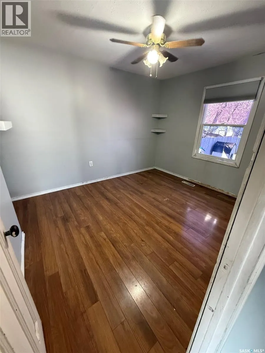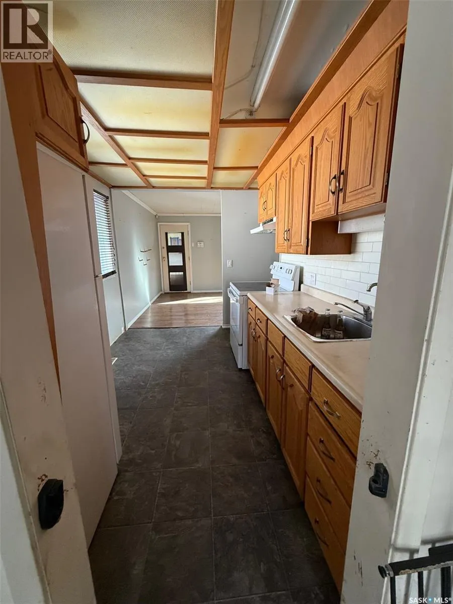 Welcome to a bright, bungalow-style starter or investment opportunity. The exterior offers a sunny lawn, and mature trees for shade. Inside, the front living room is filled with natural light and features laminate flooring. The adjacent galley kitchen provides plenty of cabinet storage, subway-tile backsplash, and white appliances, with space at the end for a small dining nook. Bedrooms are comfortably sized (see photos) with laminate flooring and a ceiling fan in one room. The lower level is unfinishedâgreat for storage, hobbies, or future development to your taste. Out back, a deep, fenced yard with large trees sets the stage for play, pets, and gardening, and thereâs a detached building/garage as pictured plus off-alley access. This home delivers strong bones, a generous lot, and solid potential at an attainable price. (id:27476)